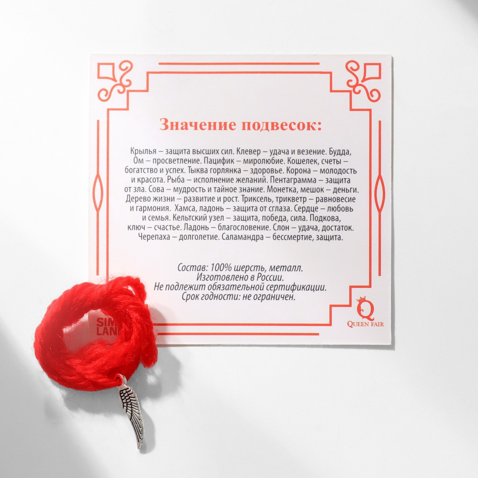 Браслет-оберег "Красная нить" покровительство и защита высших сил, крыло ангела, серебро, 40 см, 2x40x0.2 см., QF, Китай