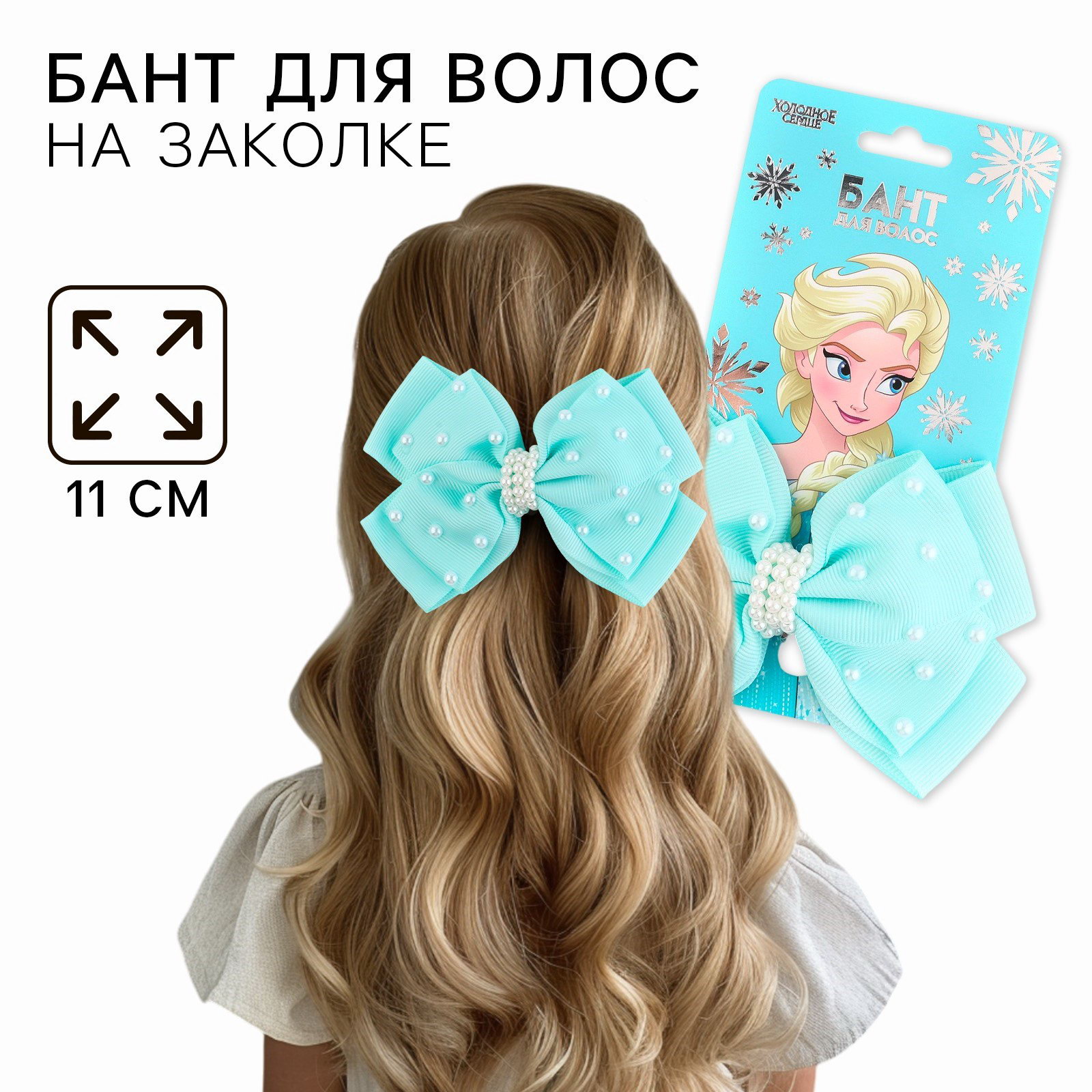 Бант для волос на заколке школьный, 11 см, Холодное сердце, Disney, Китай