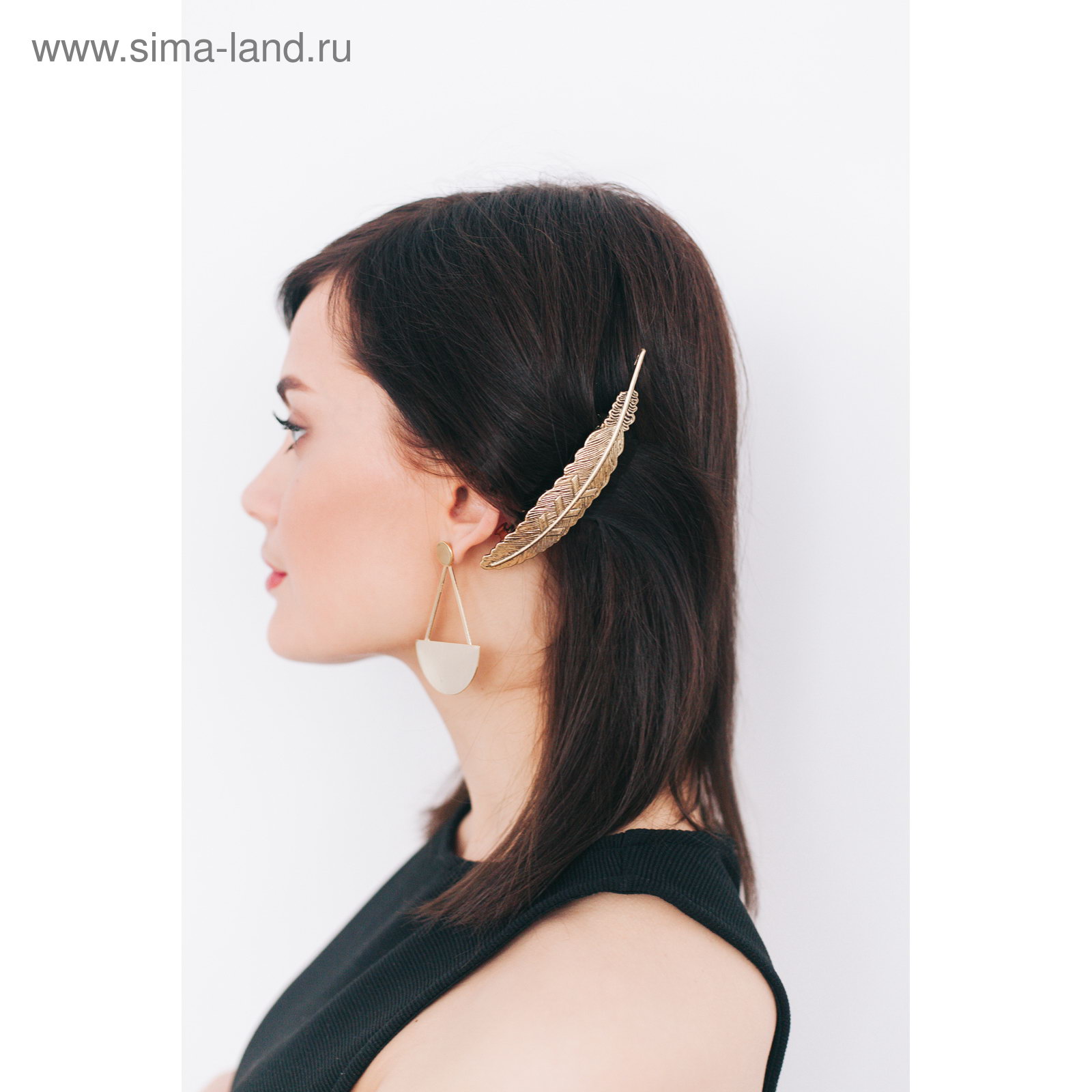Заколка - автомат для волос "Либерти", перо, 11 см, золото, 9.5 см., QF, КИТАЙ