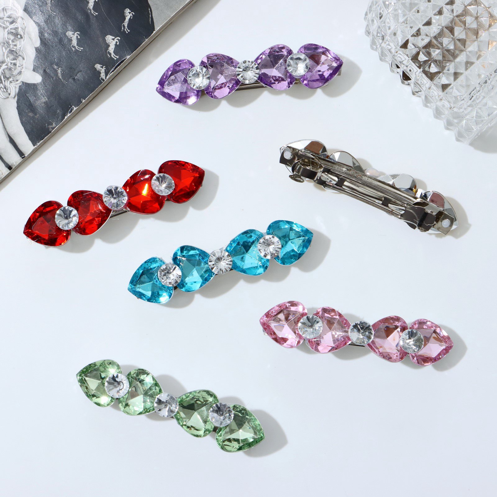 Заколка - автомат для волос "Грани", сердечки, 8 см, МИКС, 8 см., QF, Китай