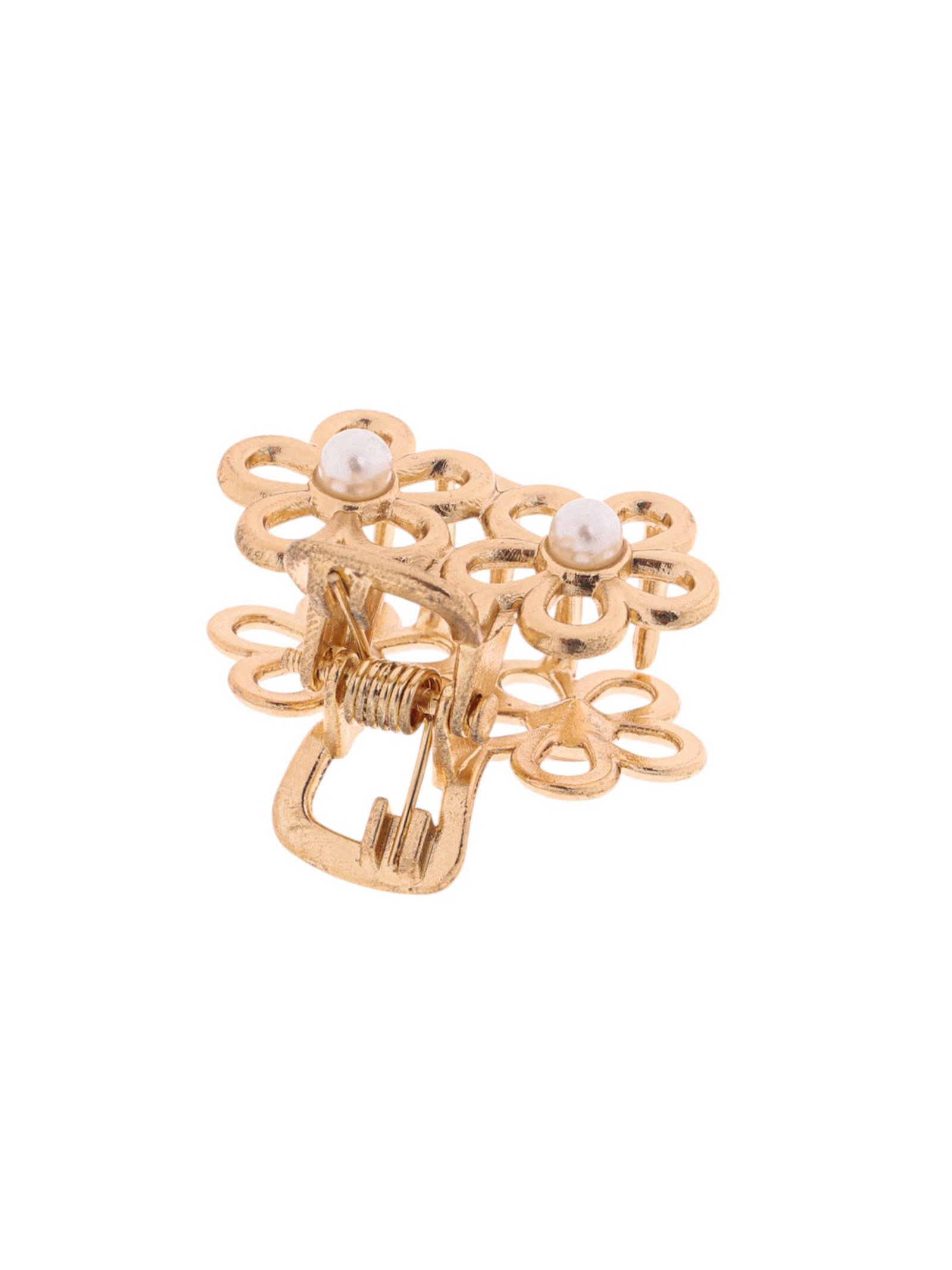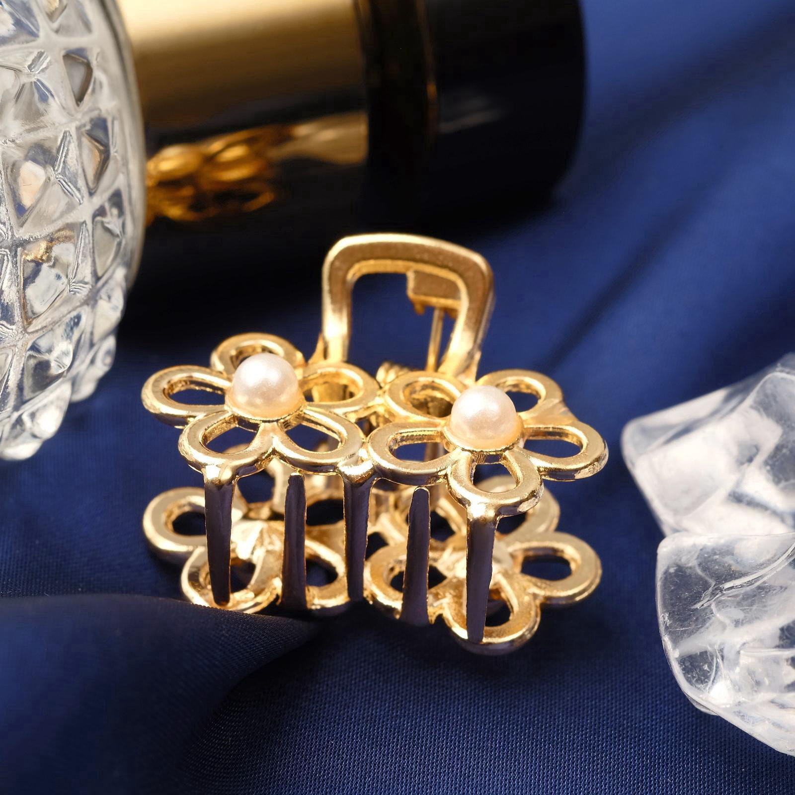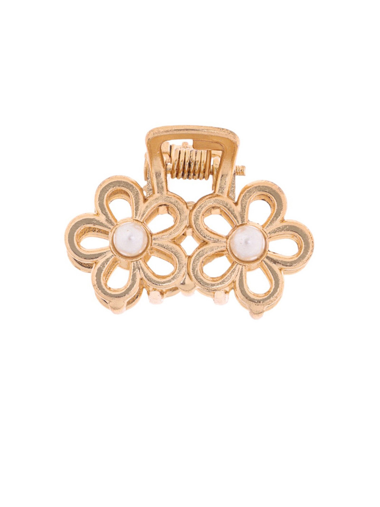Крабик для волос "Маргарита", ромашки жемчуг, 2.5 см, золото, 2.5 см., КИТАЙ
