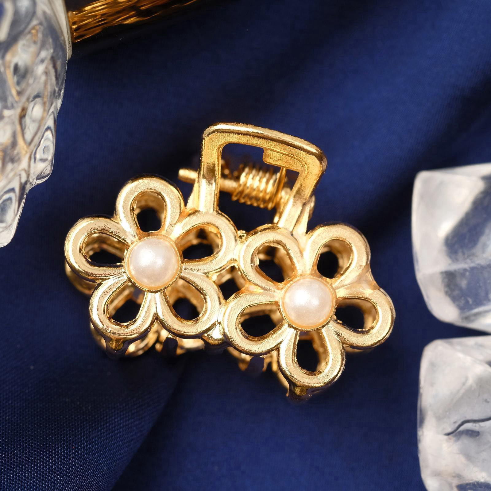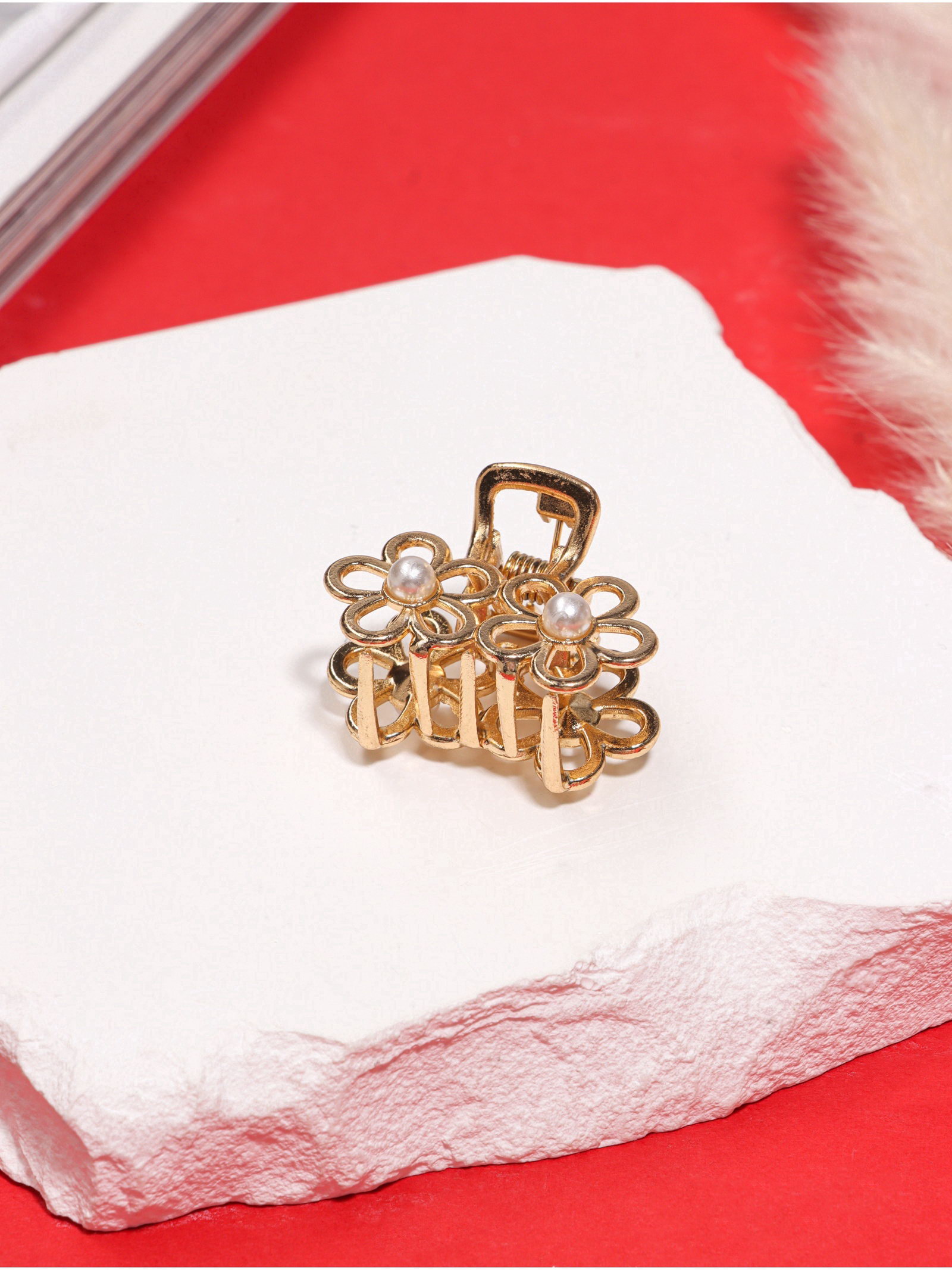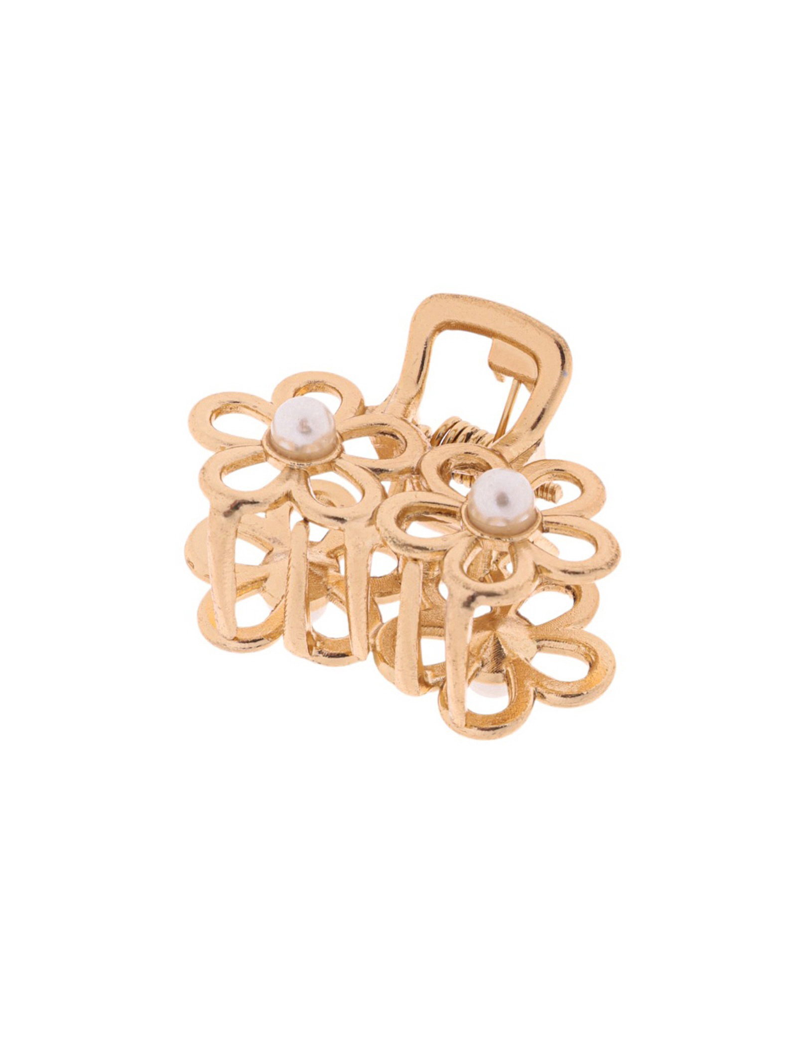 Крабик для волос "Маргарита", ромашки жемчуг, 2.5 см, золото, 2.5 см., КИТАЙ