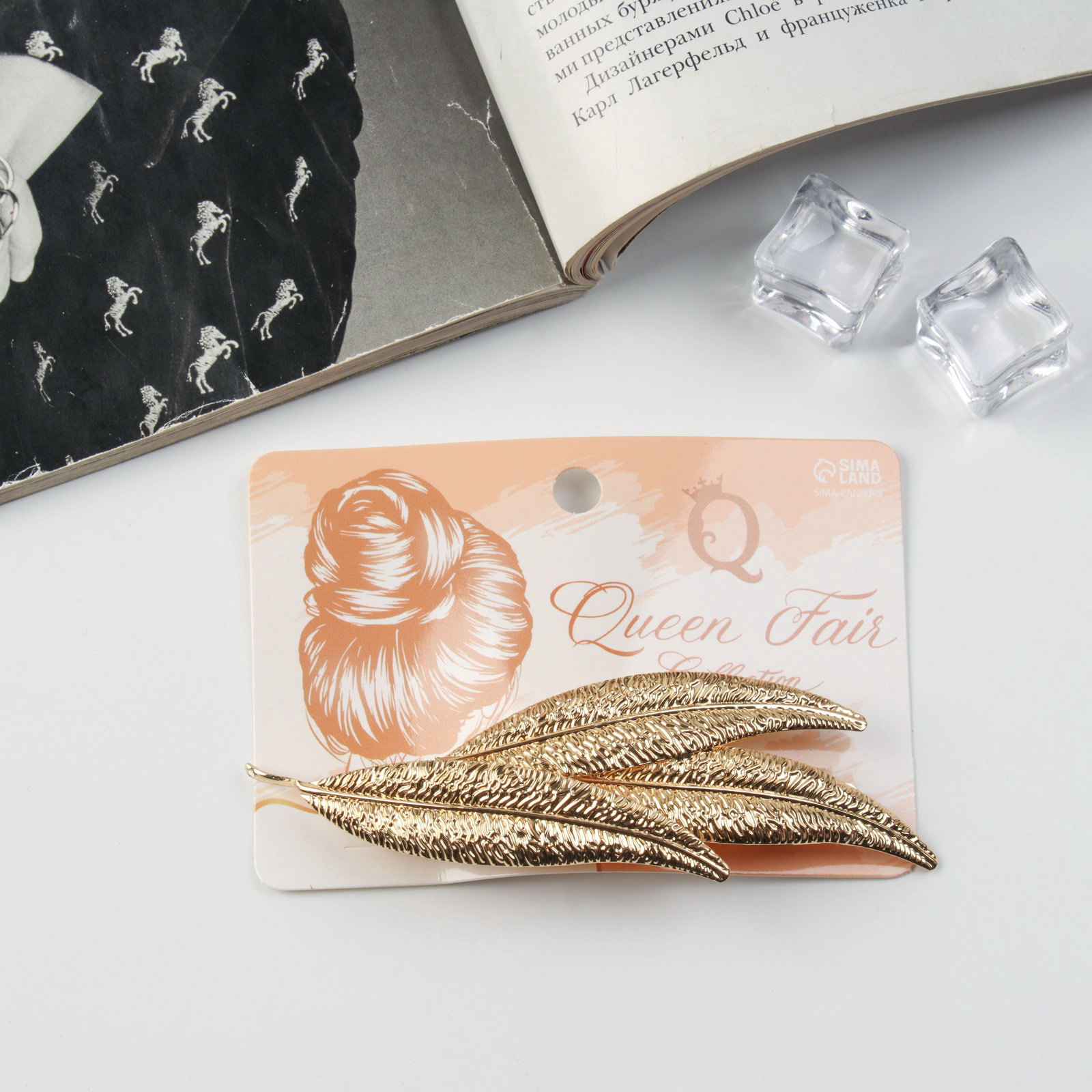 Заколка - автомат для волос "Либерти", узкие листочки, 11 см, золото, 11 см., QF, Китай