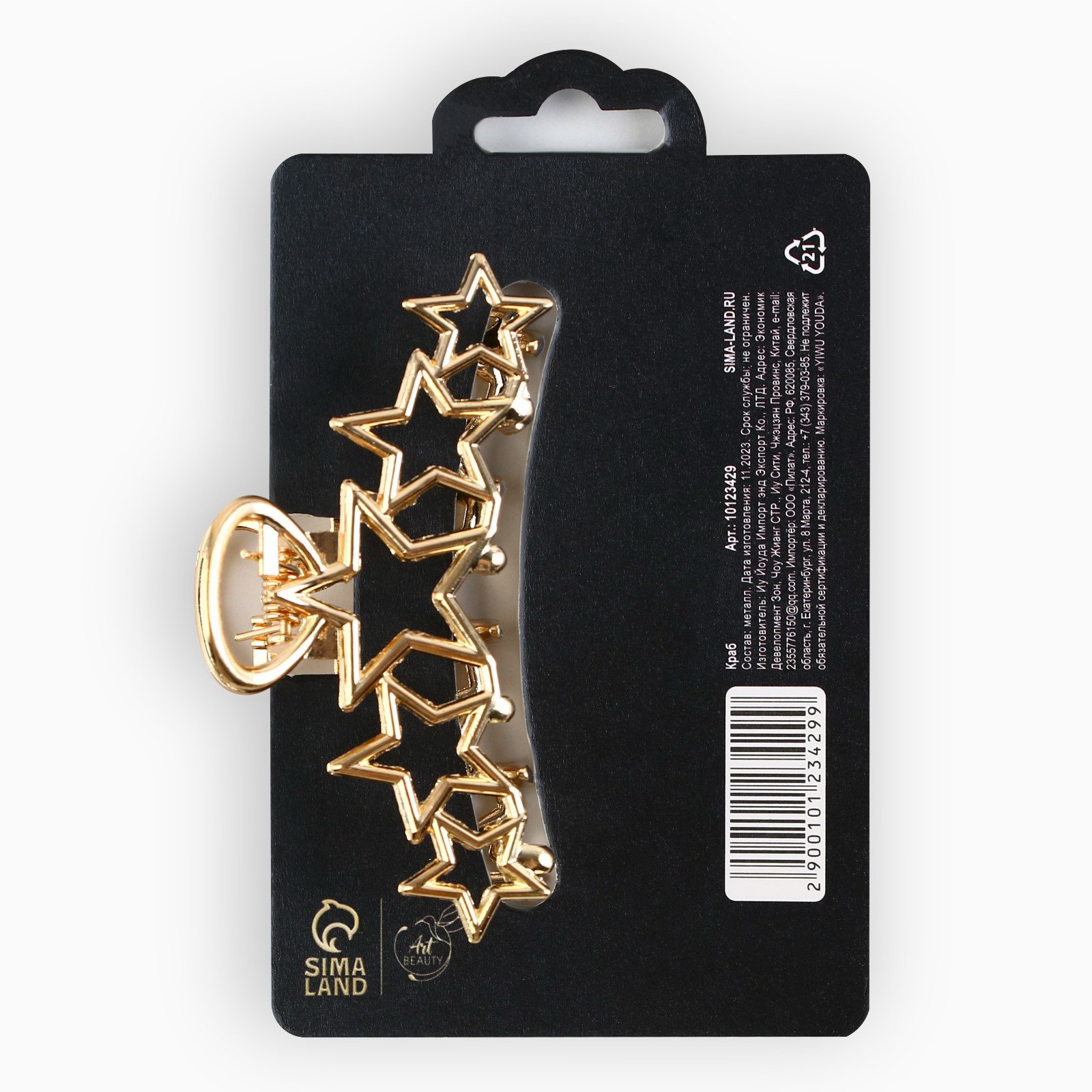Краб для волос со звёздами "Сияй", 7 x 2.5 x 2 см, 2.5x7x2 см., Art beauty, Китай