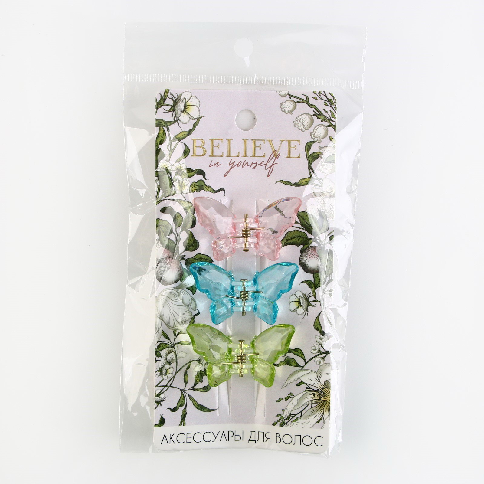 Краб для волос 3 шт. бабочки "Believe in yourself" 3 шт., 4.5 x 3 x 3 см, 3x4.5x3 см., Art beauty, Китай