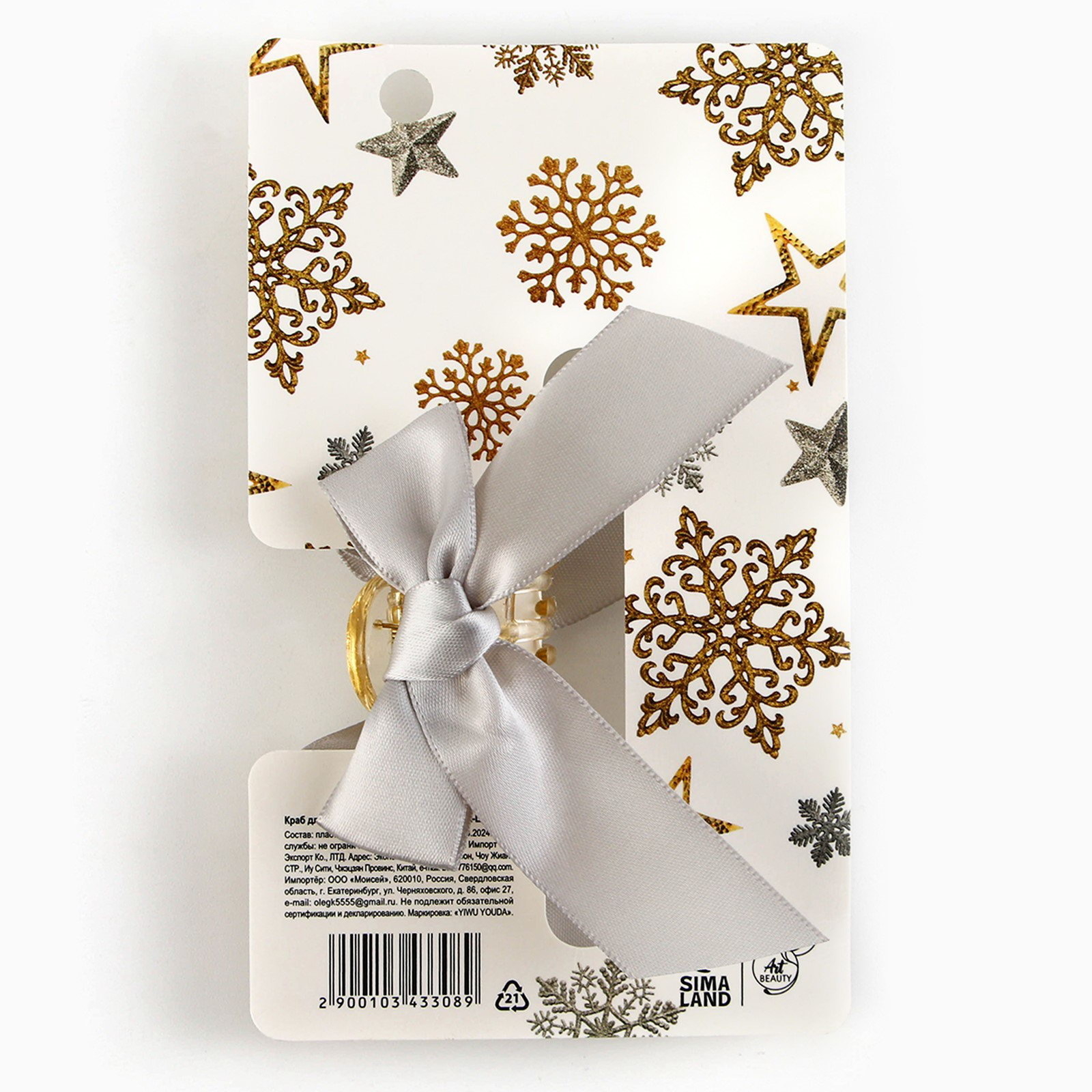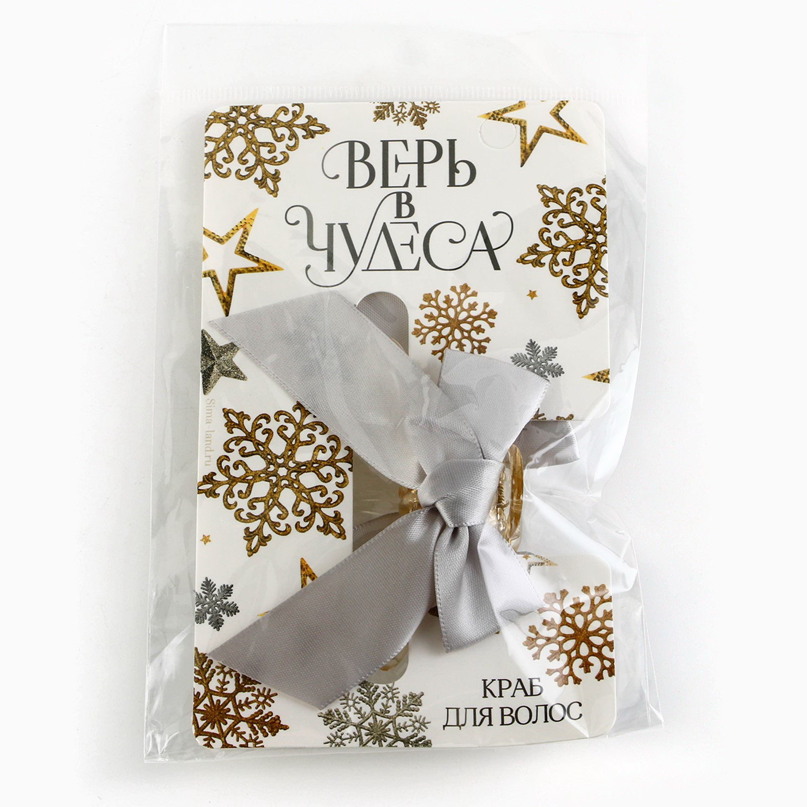 Краб для волос с бантом новогодний "Верь в чудеса", 7.5 x 3 см, 7.5x3x2 см., Сима-ленд, КИТАЙ