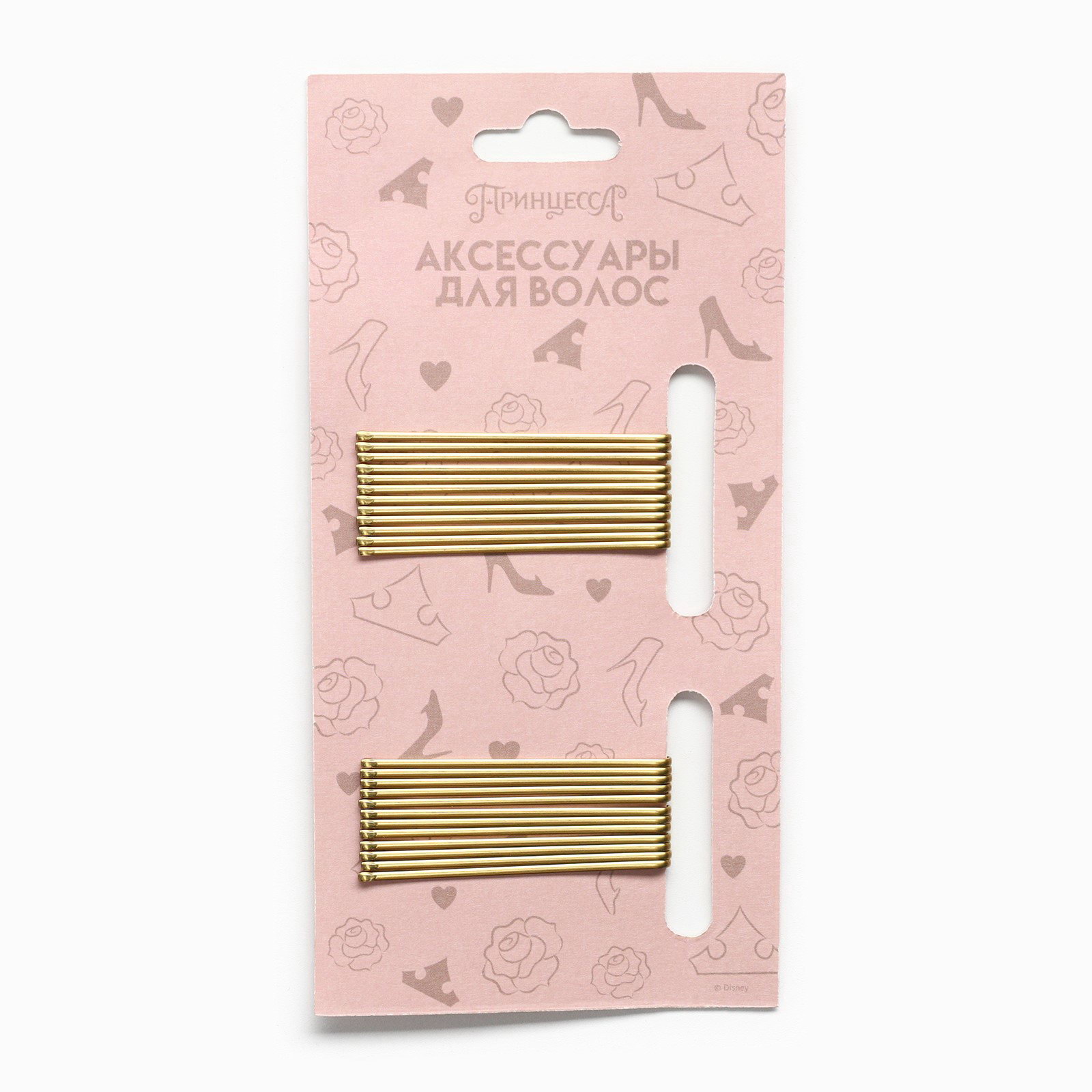 Невидимка для волос золотистая, 24 штуки, 5 см, набор, Принцессы, 7.5x15x1 см., Disney, Китай