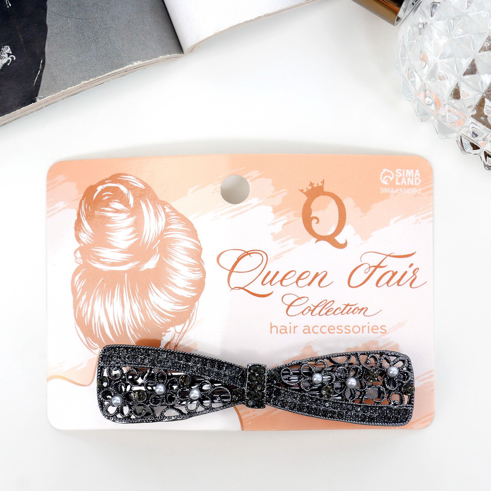 Заколка-автомат для волос "Лолита" бант, 7.5 см, тёмное серебро, 7.5 см., QF, Китай