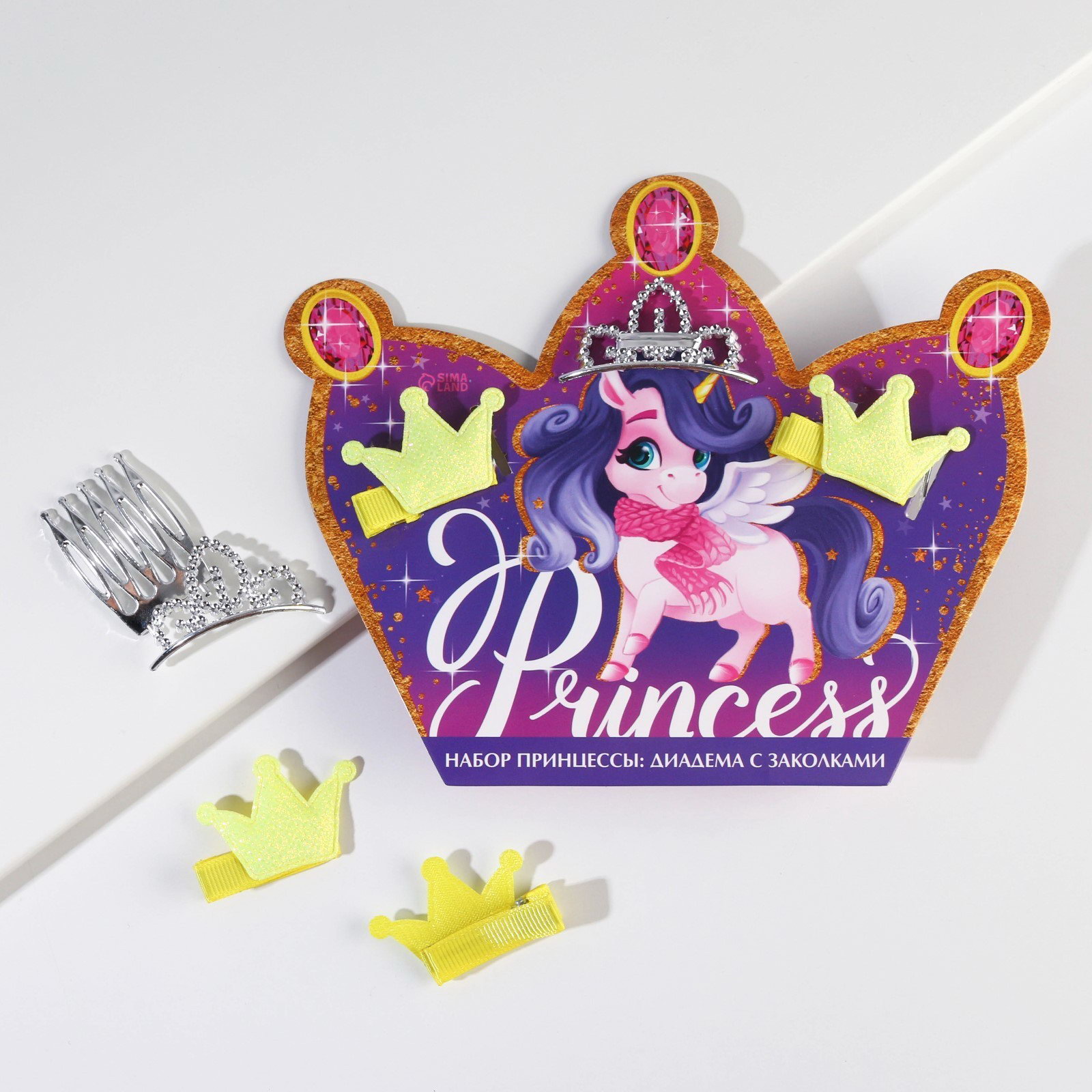 Диадема и заколки для волос "Princess", единорог, набор, 23.8x2x19.2 см., Art beauty, Китай