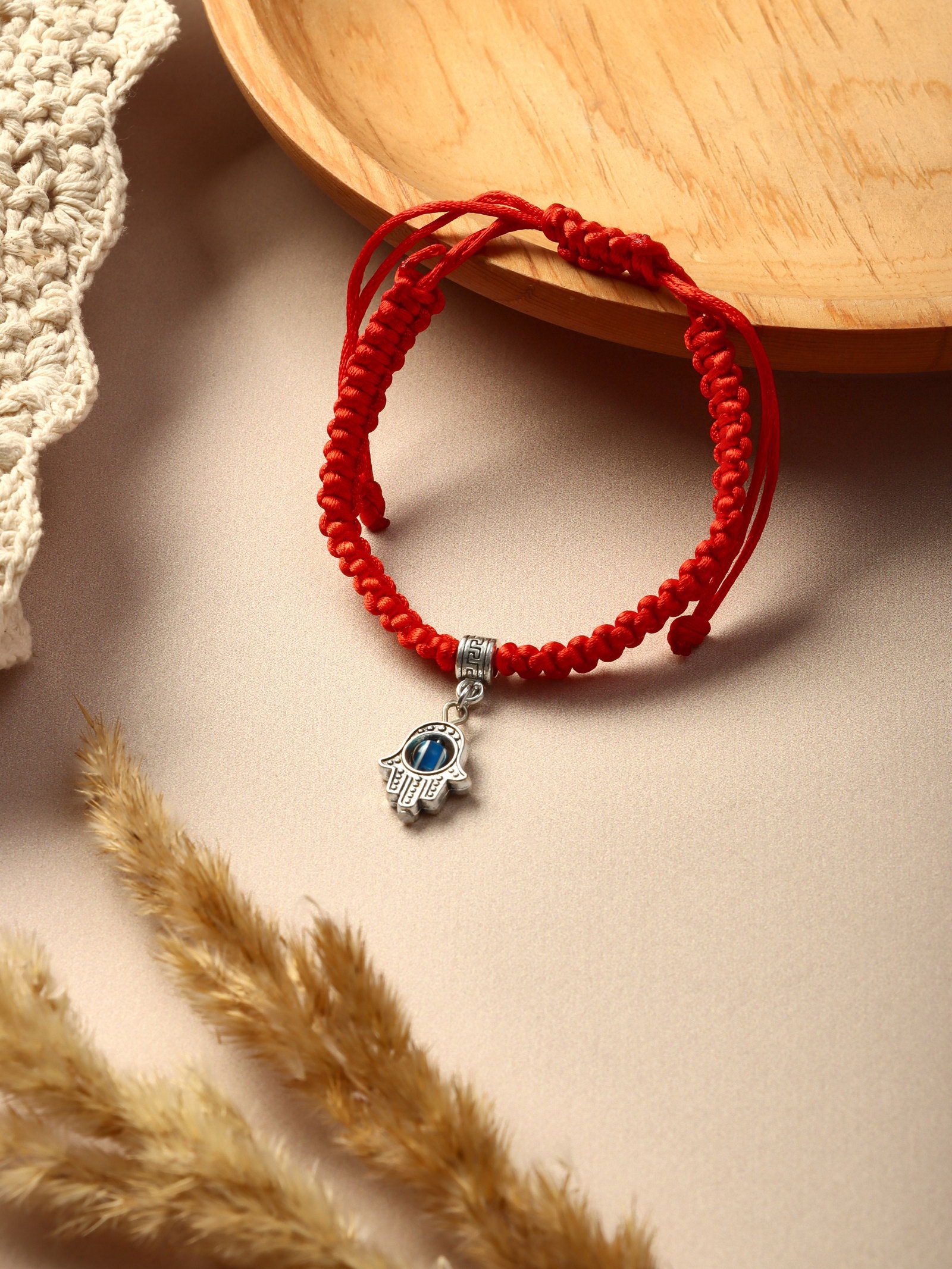 Браслет-оберег "Красная нить" талисман защиты, рука хамса на бусине, цвет синий в серебре, 8 см, 2x8x0.5 см., QF, Китай