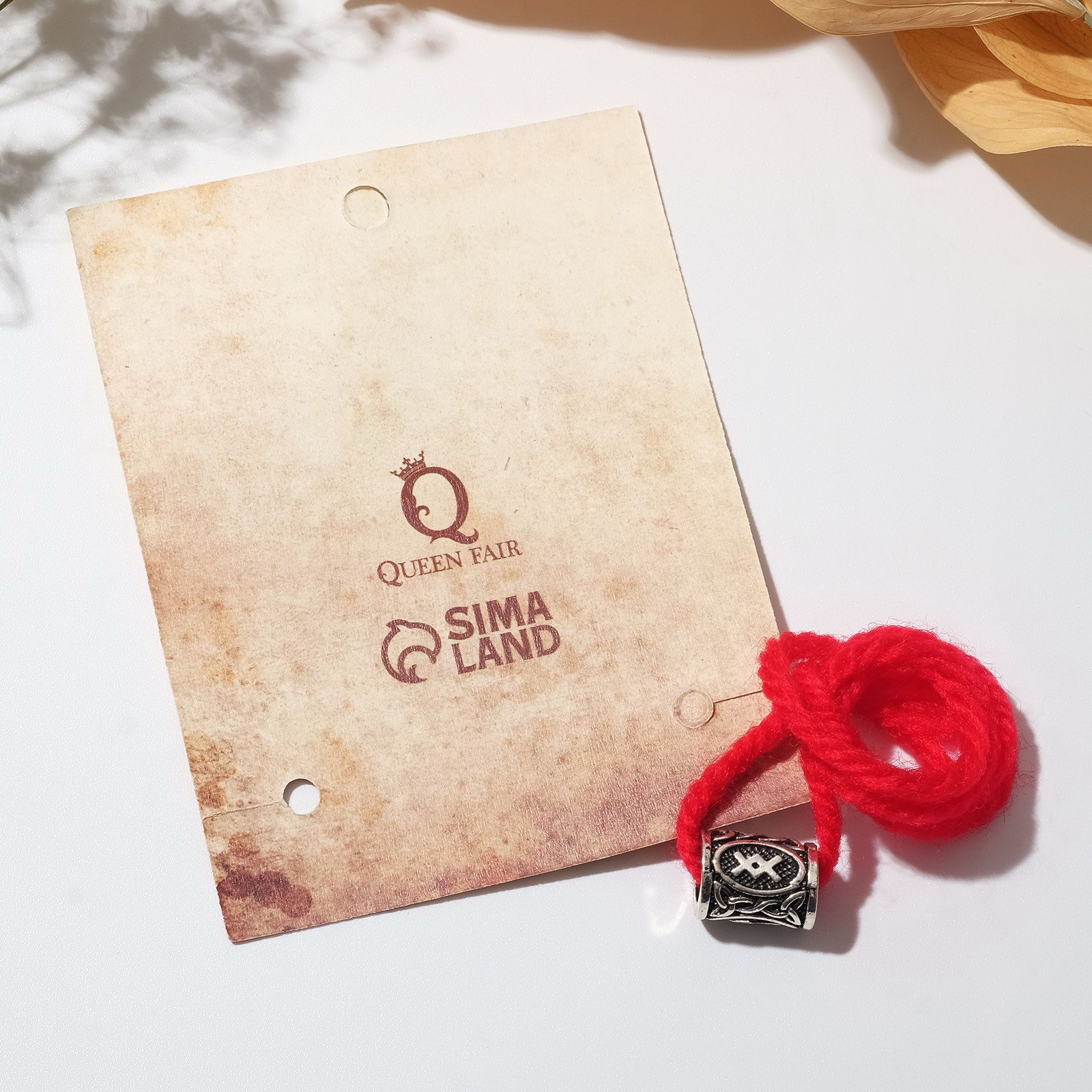 Браслет-амулет на нити "Красная нить" руна семья, красный с чернёным серебром, 30 см, 1x30x1 см., QF, Китай