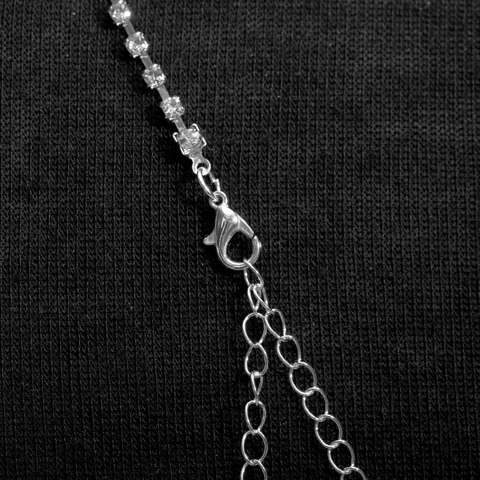 Цепочка на тело женская "Минимал", со стразами, 2 нити, белая в серебре, 90x45x0.3 см., QF, Китай