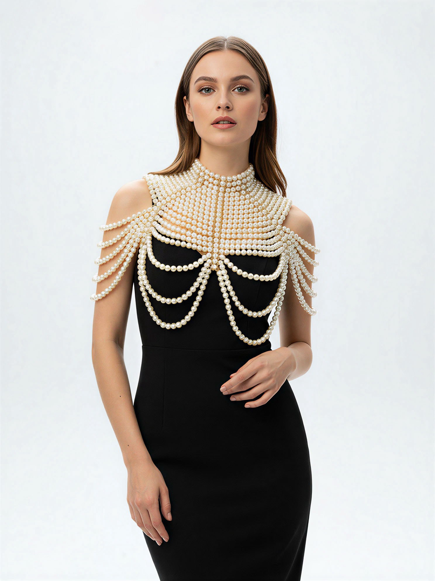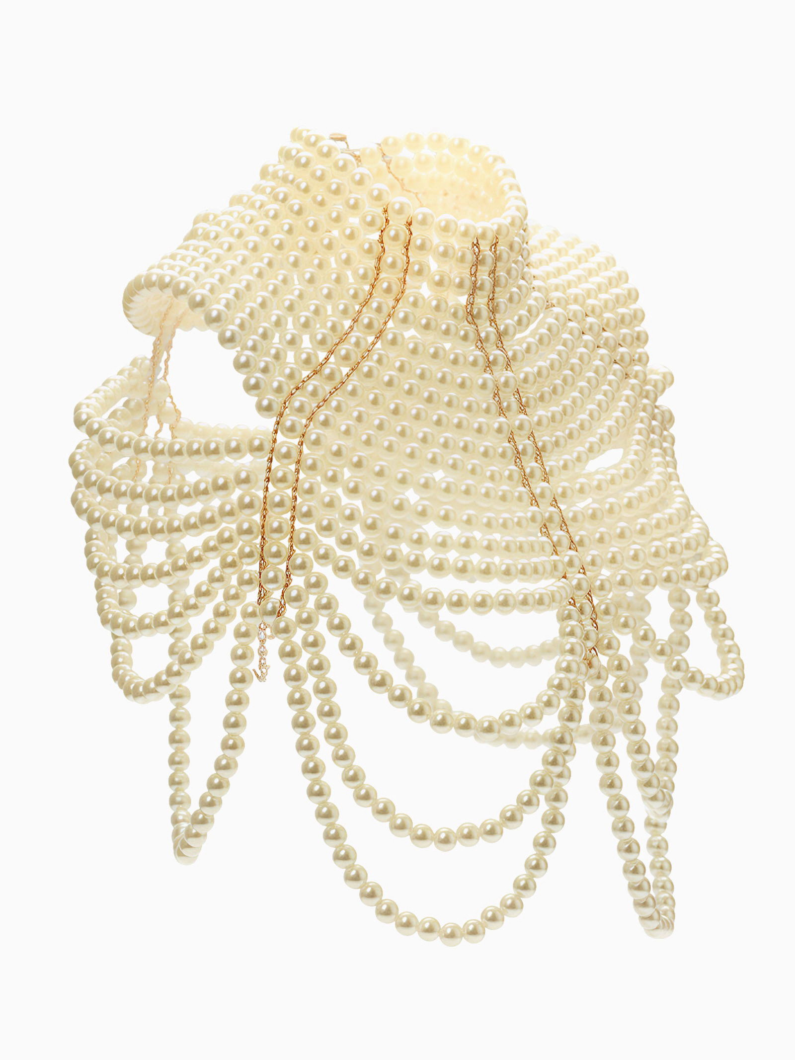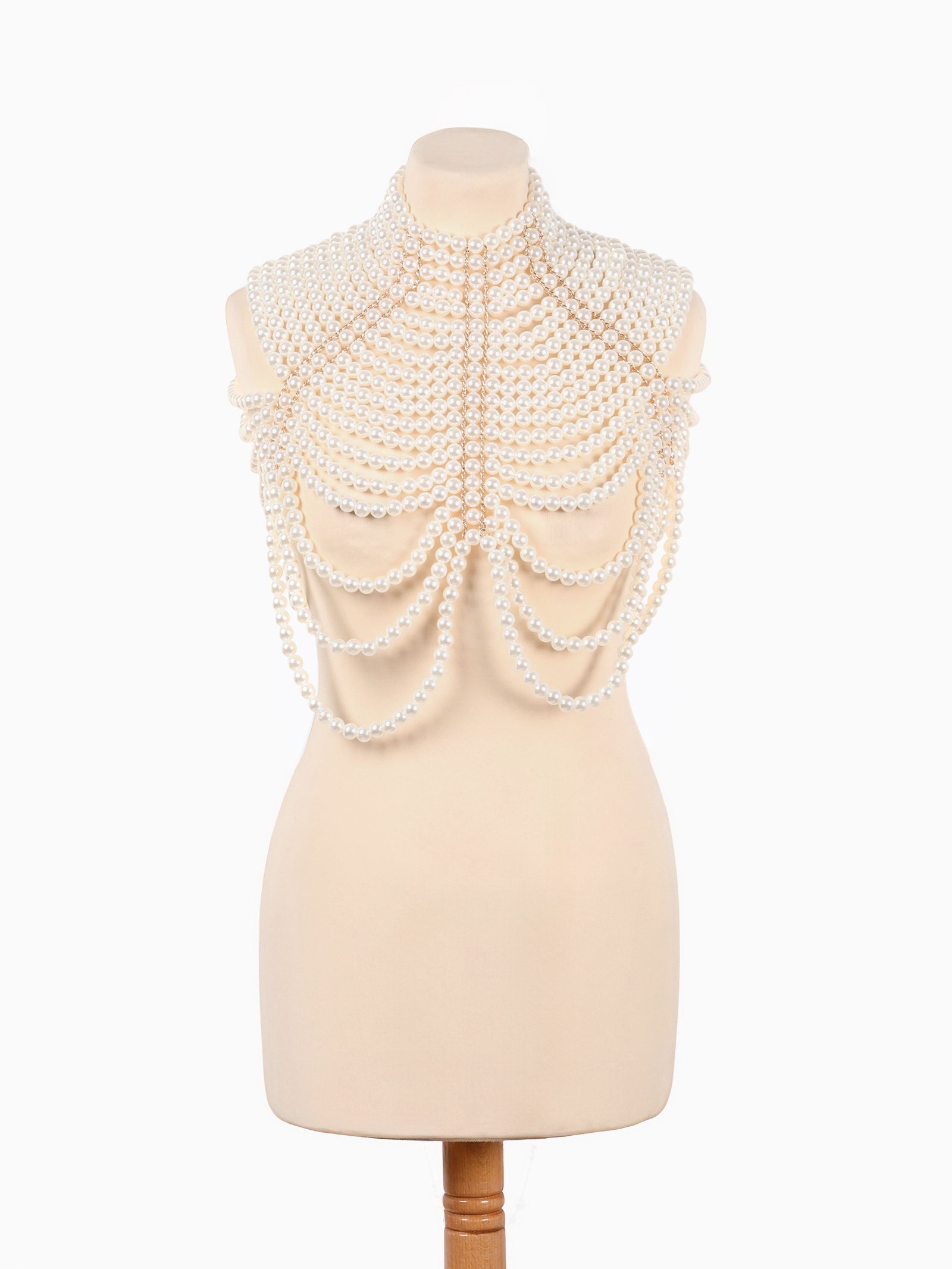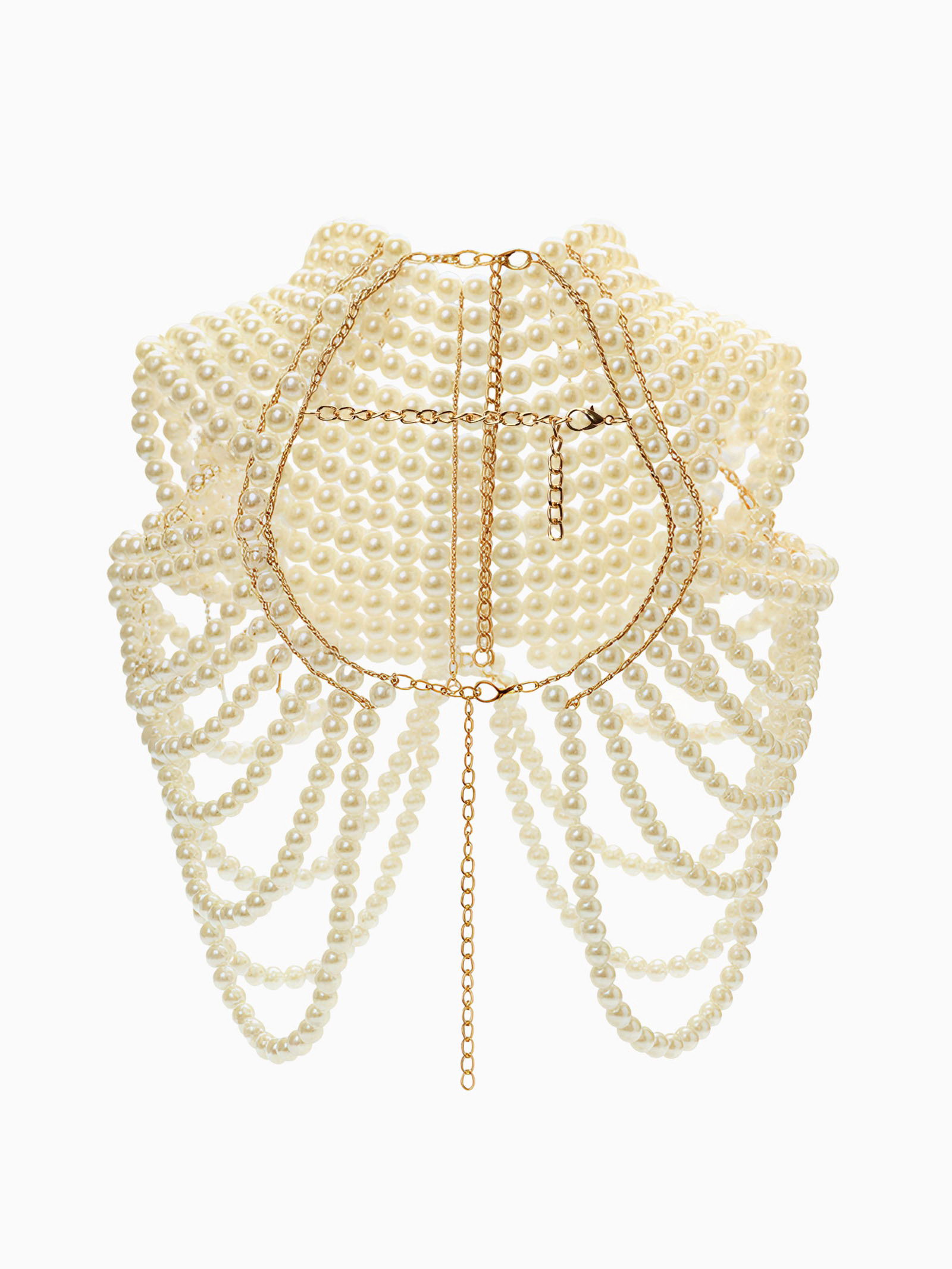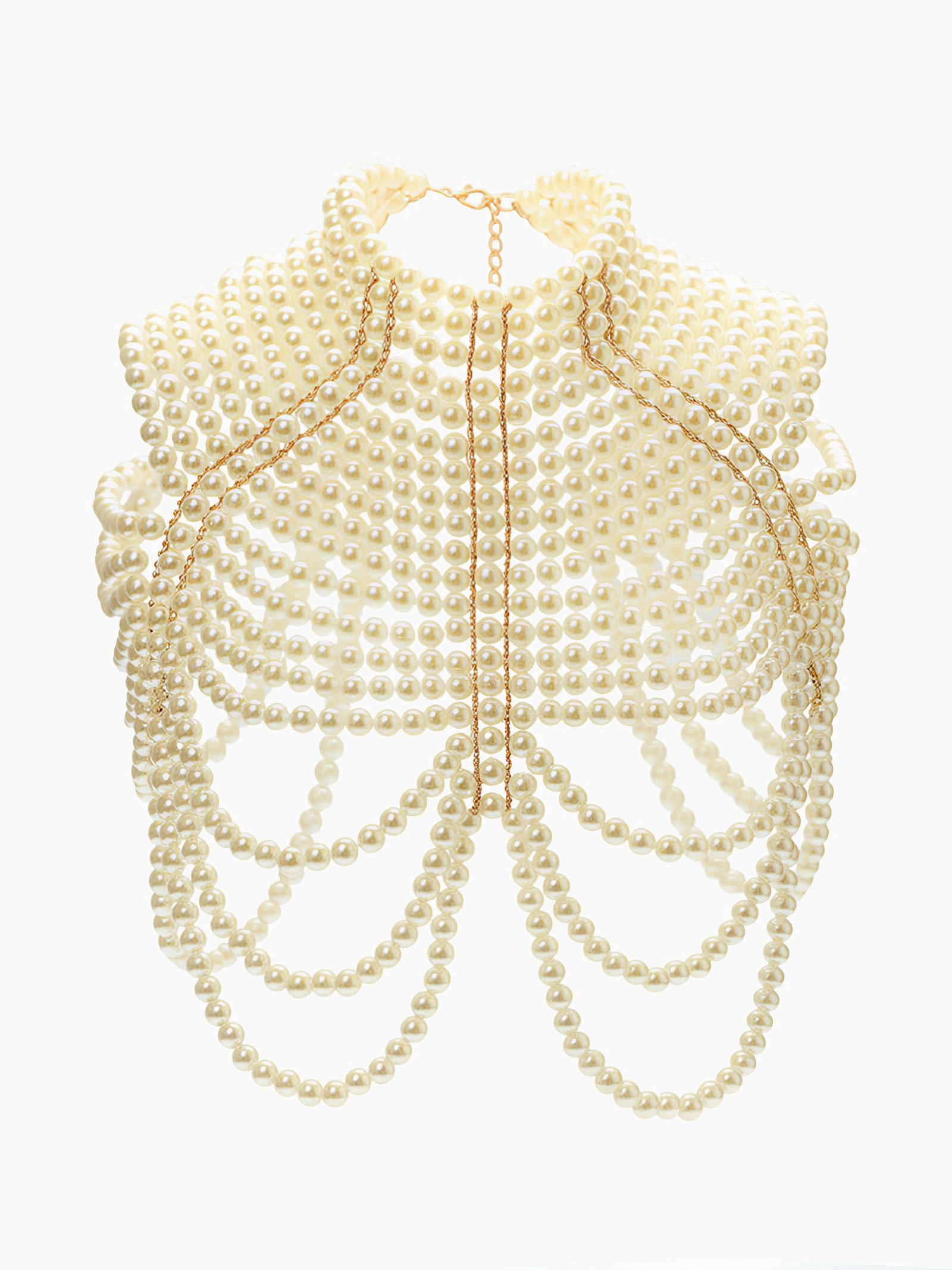 Бодичейн жемчуг "Богема" на тело, d=1.2 см, белый в золоте, 50x38x1.2 см., QF, Китай