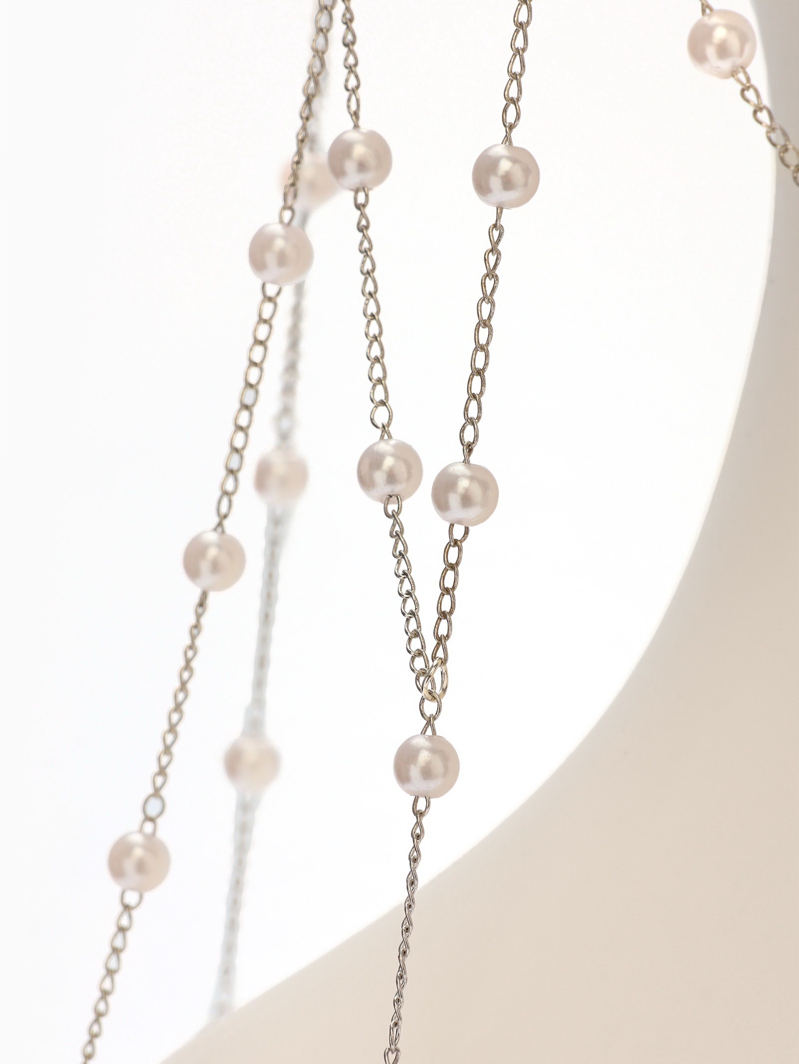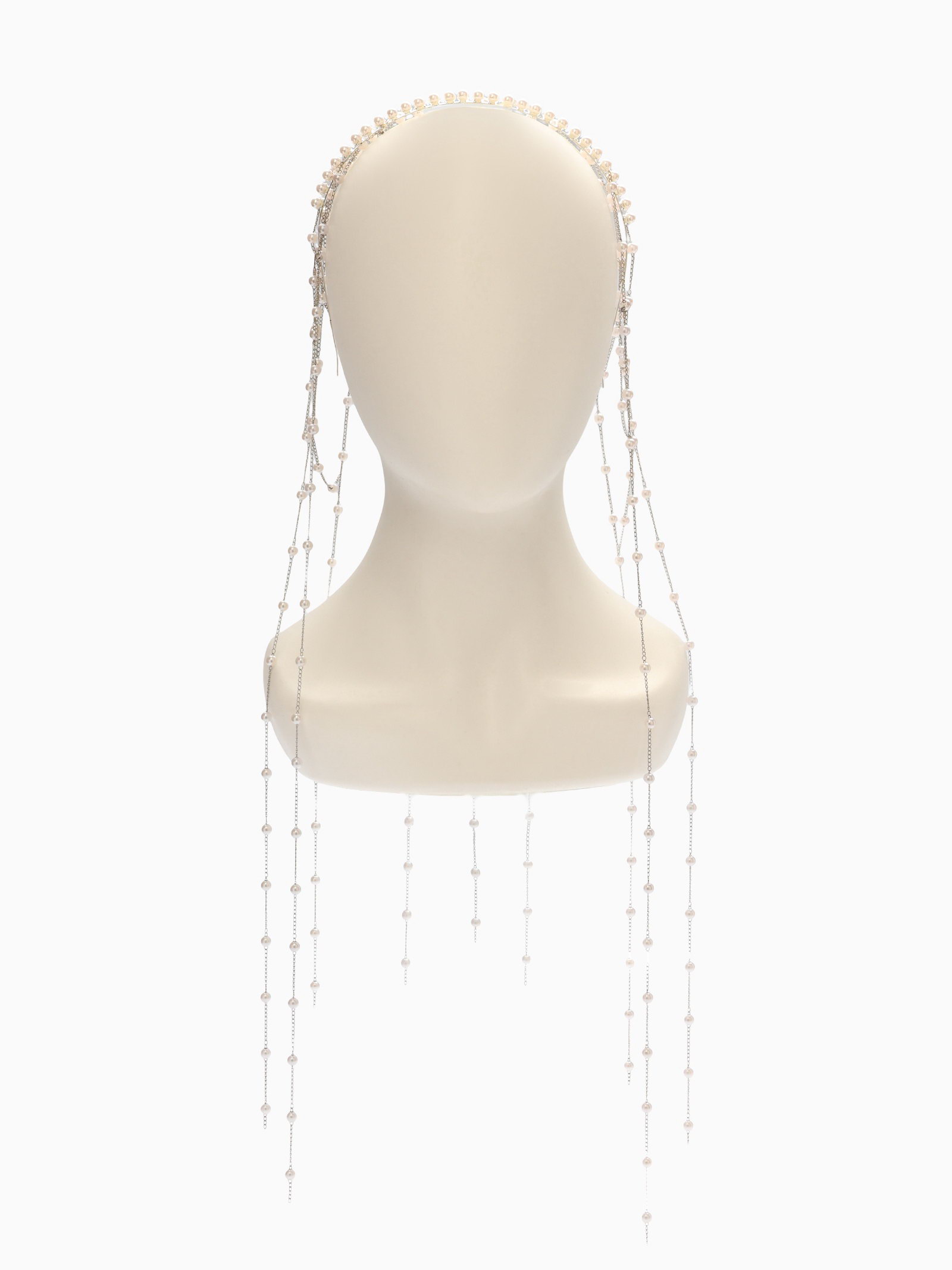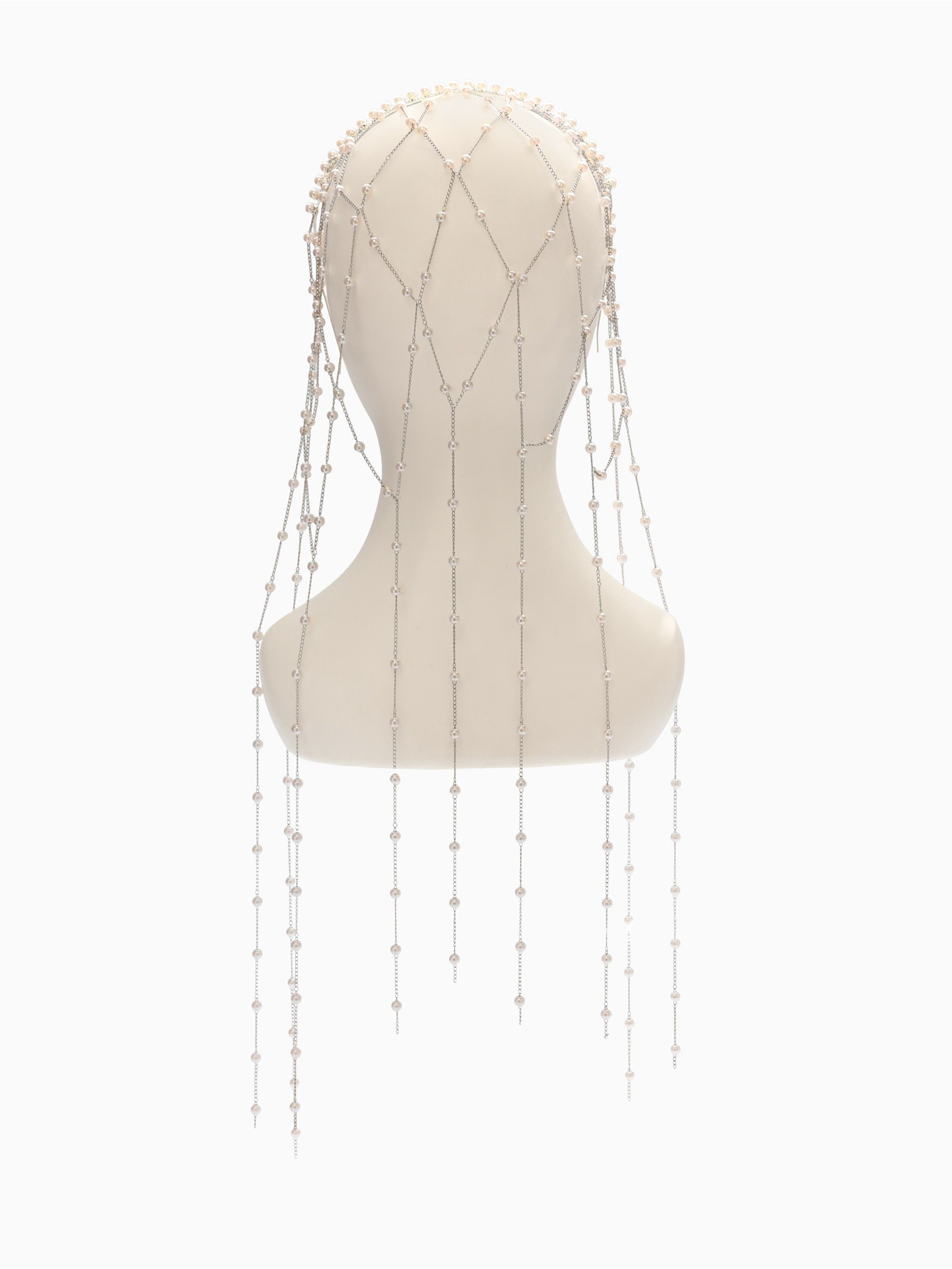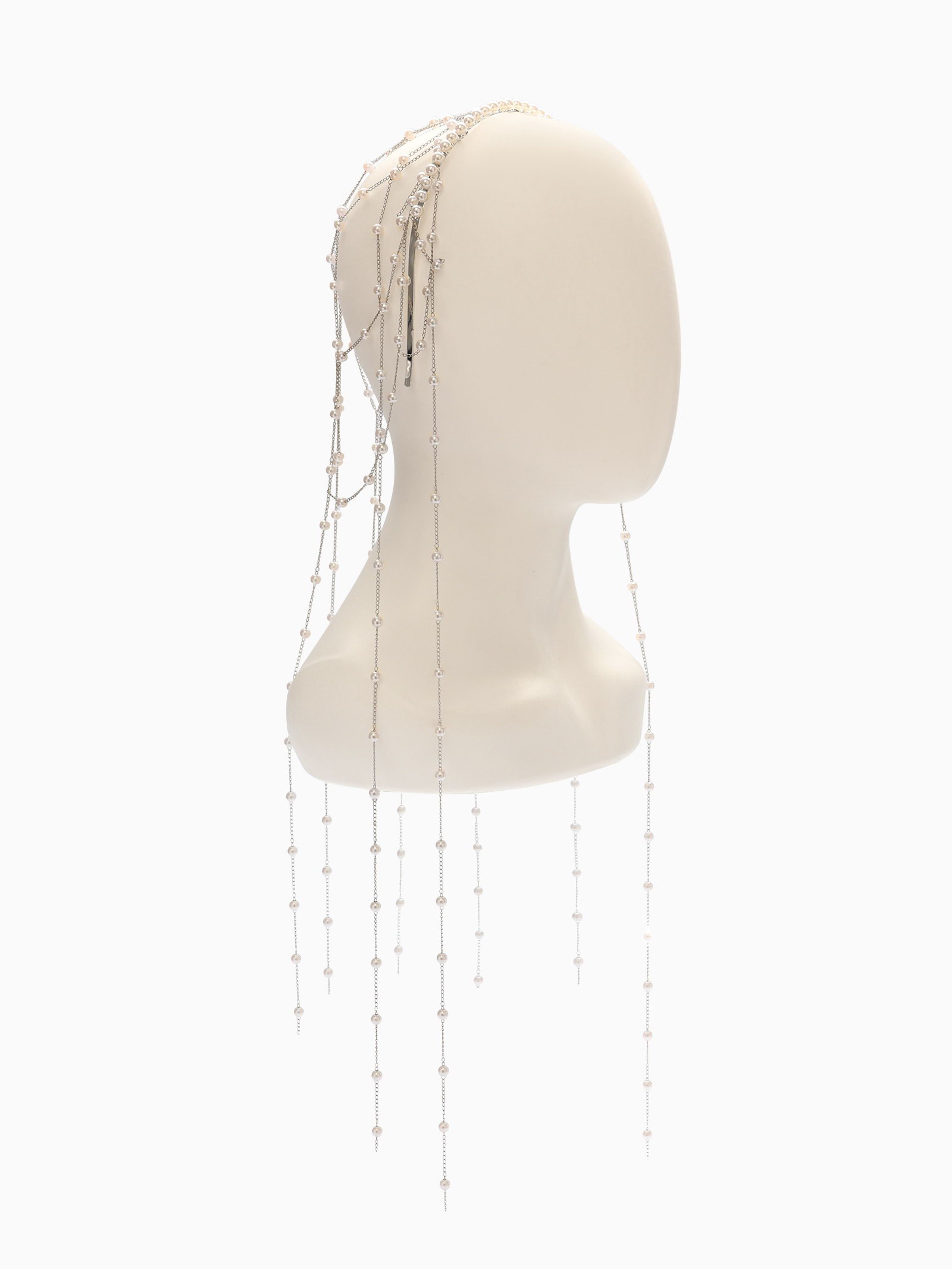 Украшение для волос "Паутина", с бусинами, 55 см, белое в серебре, 20x51x0.5 см., QF, Китай