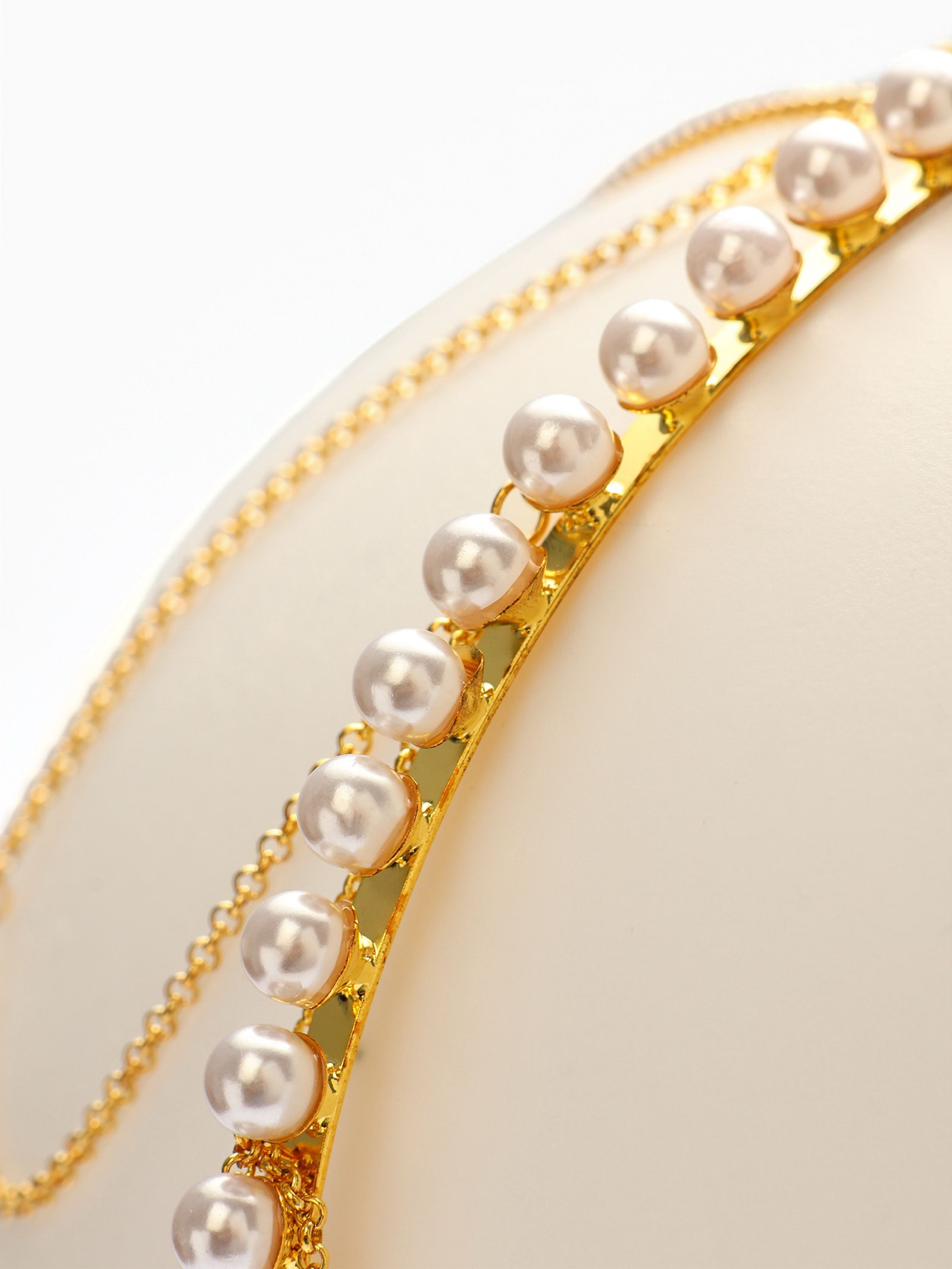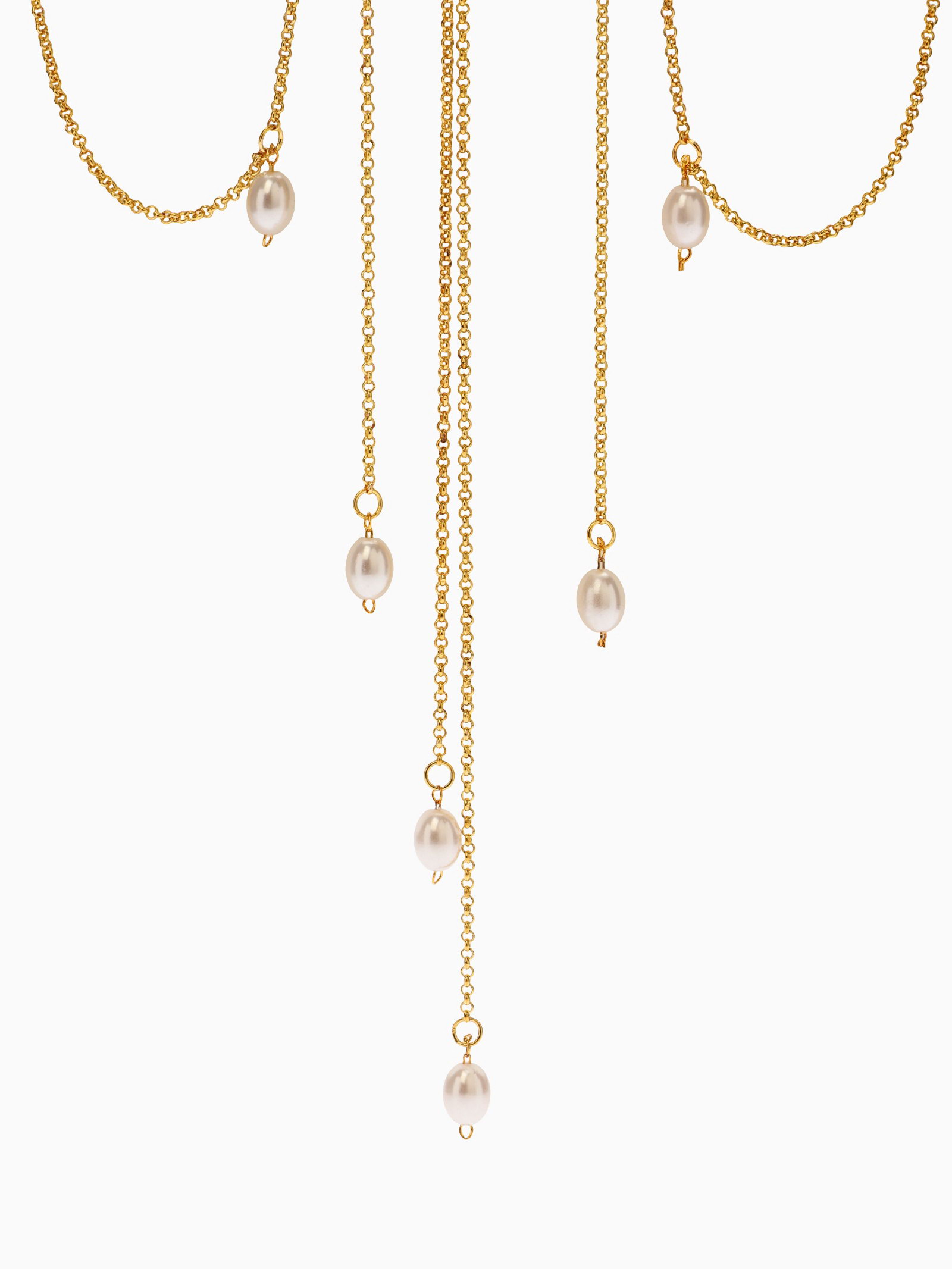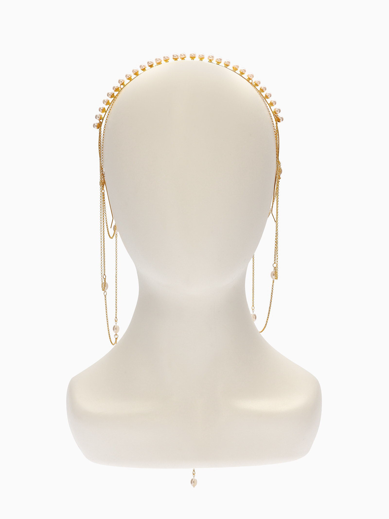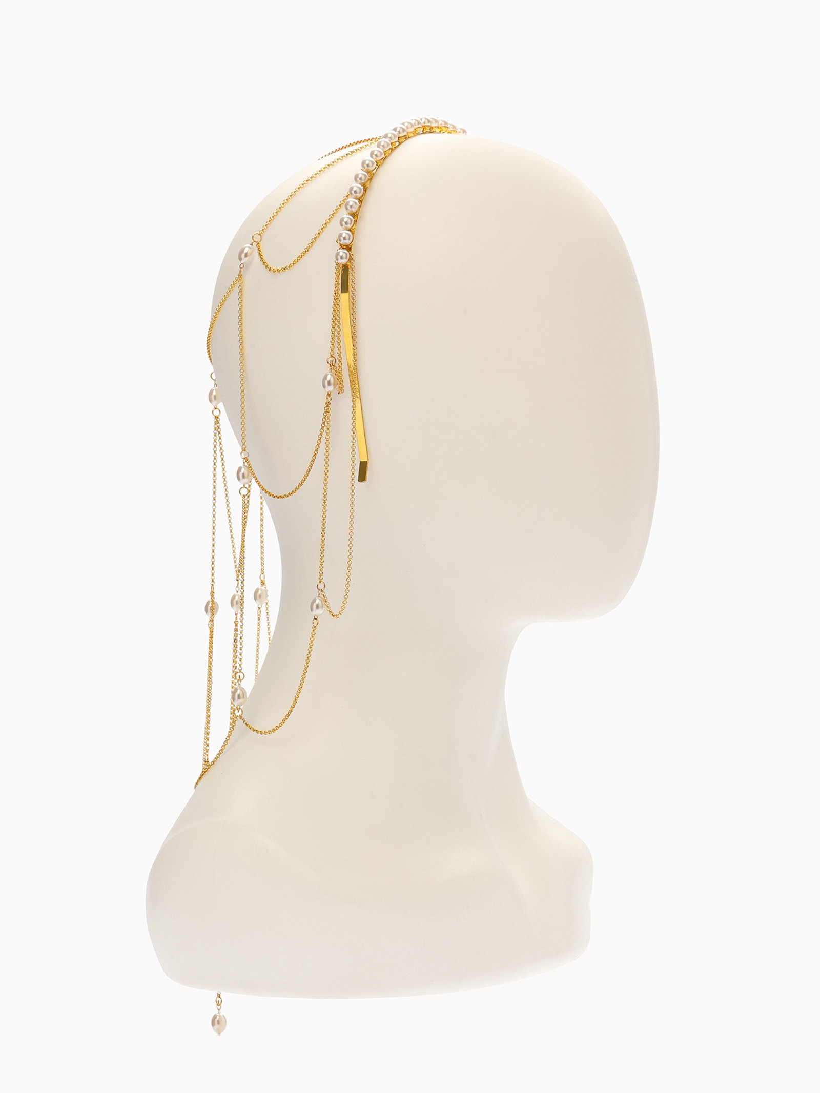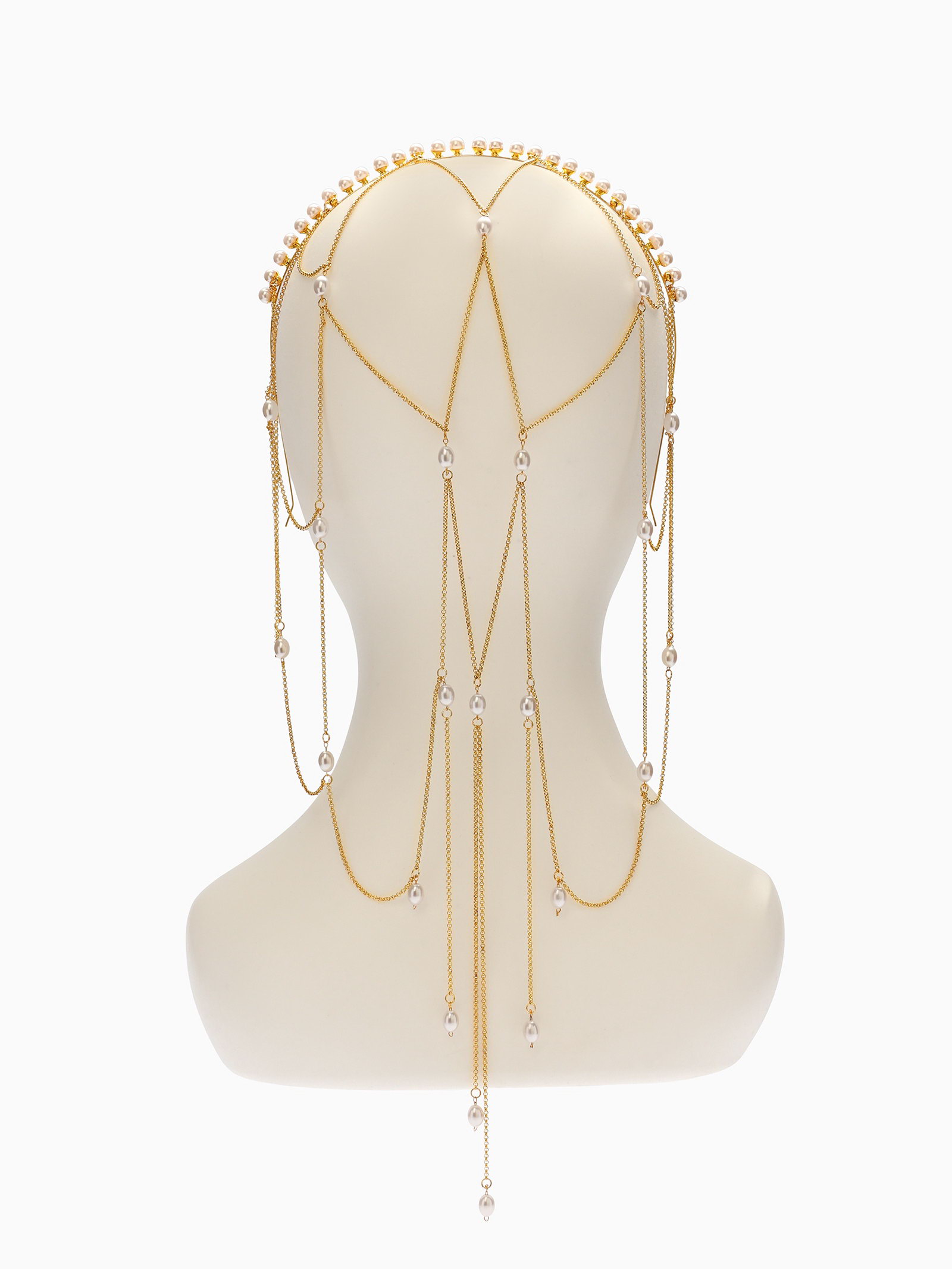 Украшение для волос "Паутина" 44 см, белое в золоте, 15x43.5x0.5 см., QF, Китай