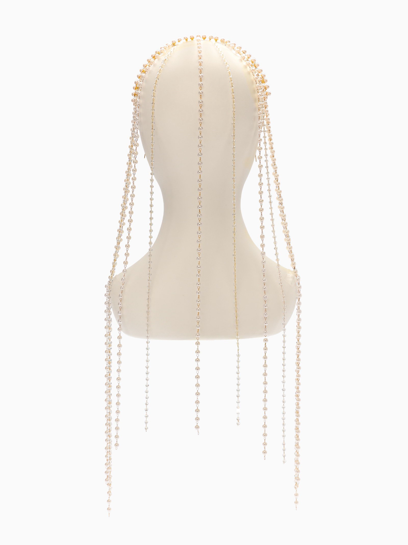 Украшение для волос "Паутина", 50 см, белое в золоте, 13x50x0.5 см., QF, Китай