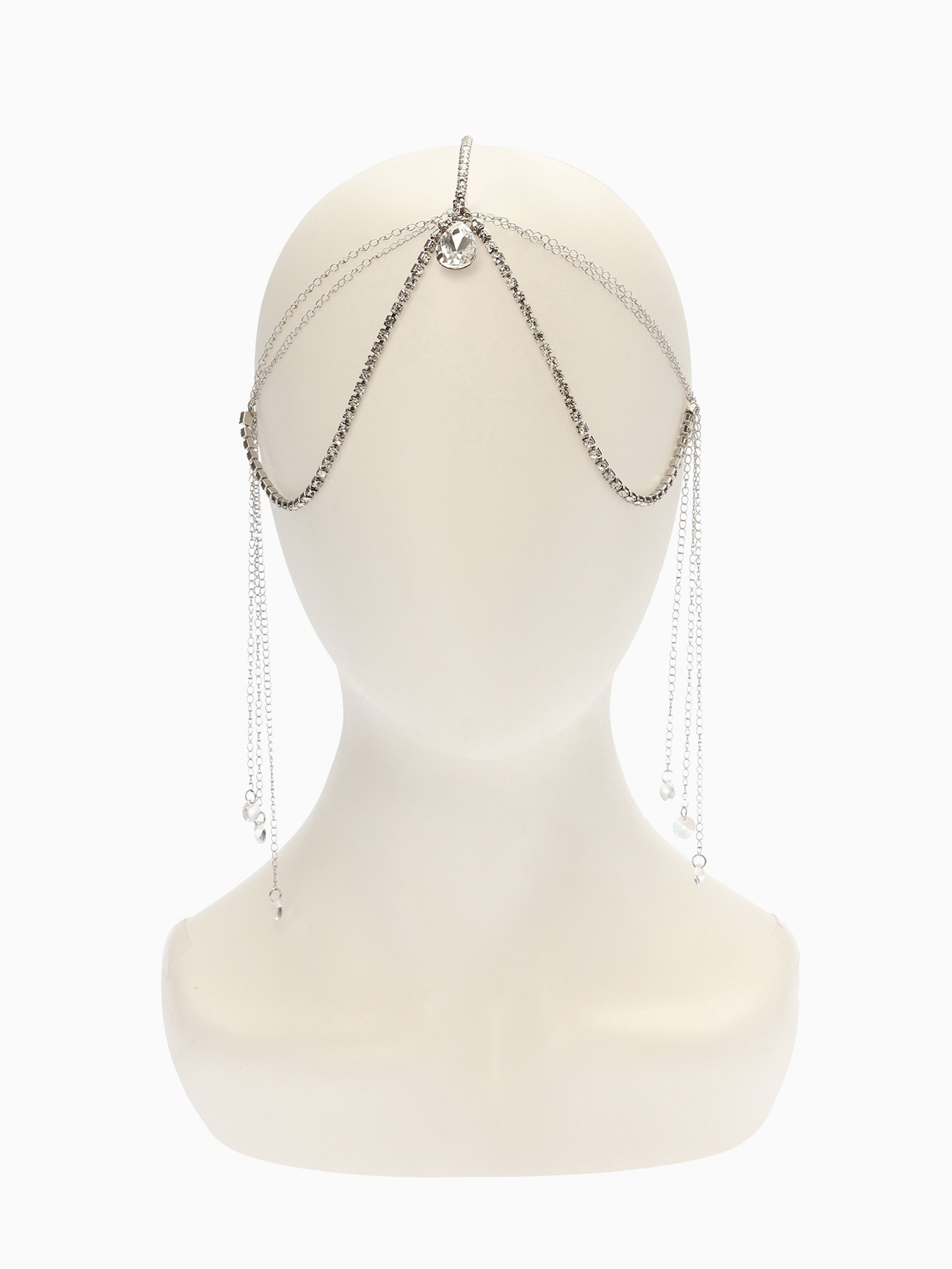 Украшение для волос "Шахерезада", белое в серебре, 45x70x1 см., QF, Китай
