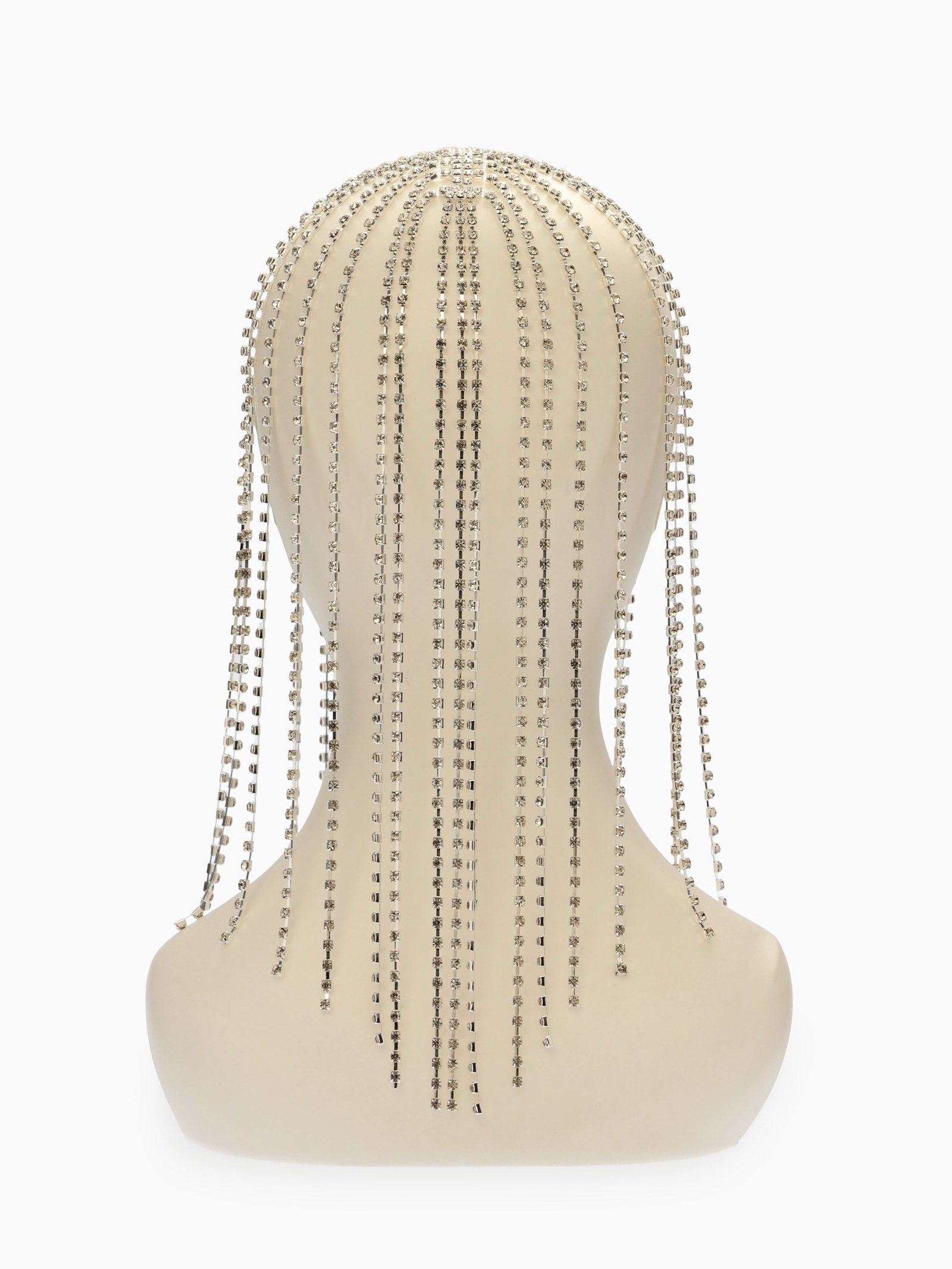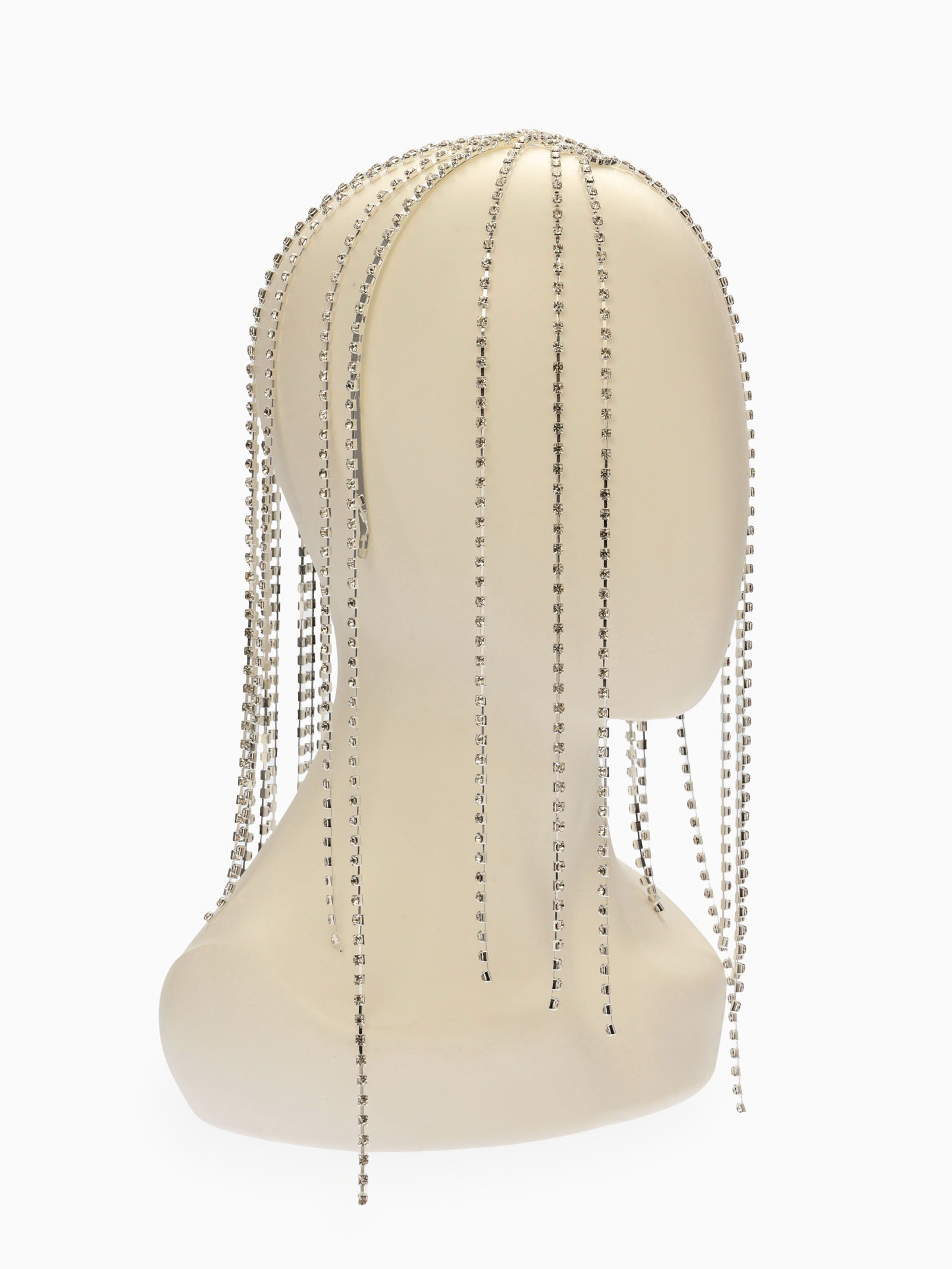 Украшение для волос "Дорожка страз", белое в серебре, 40x40x0.5 см., QF, Китай