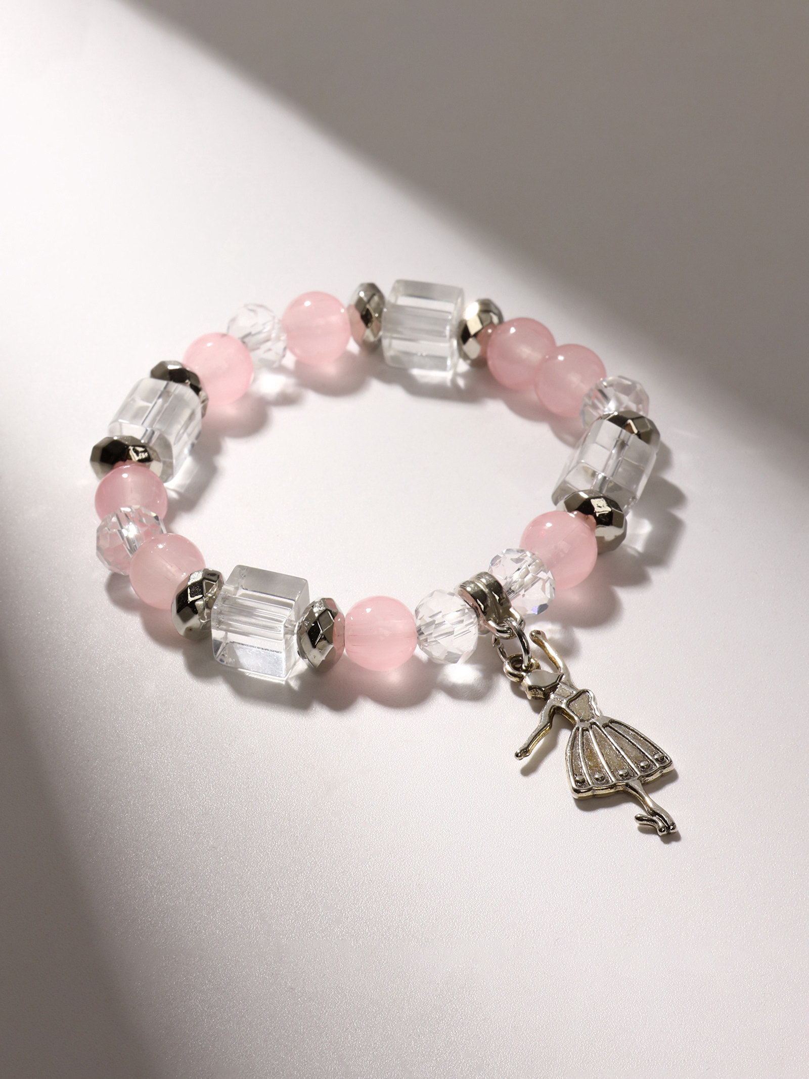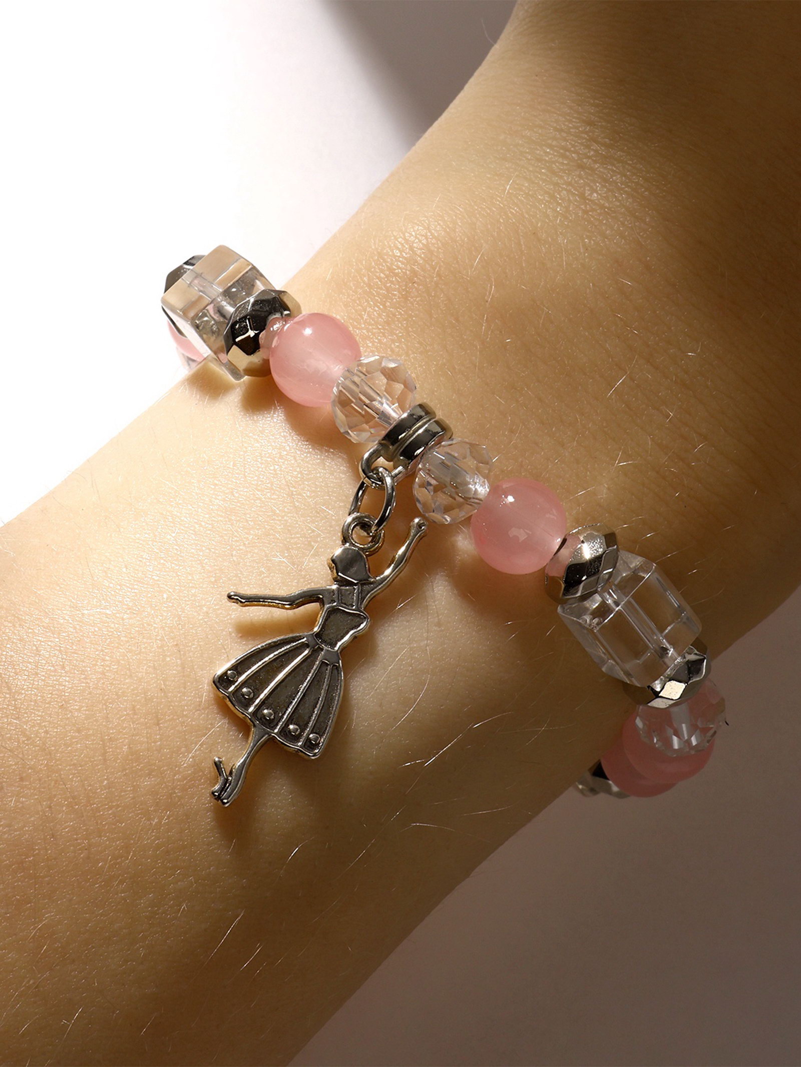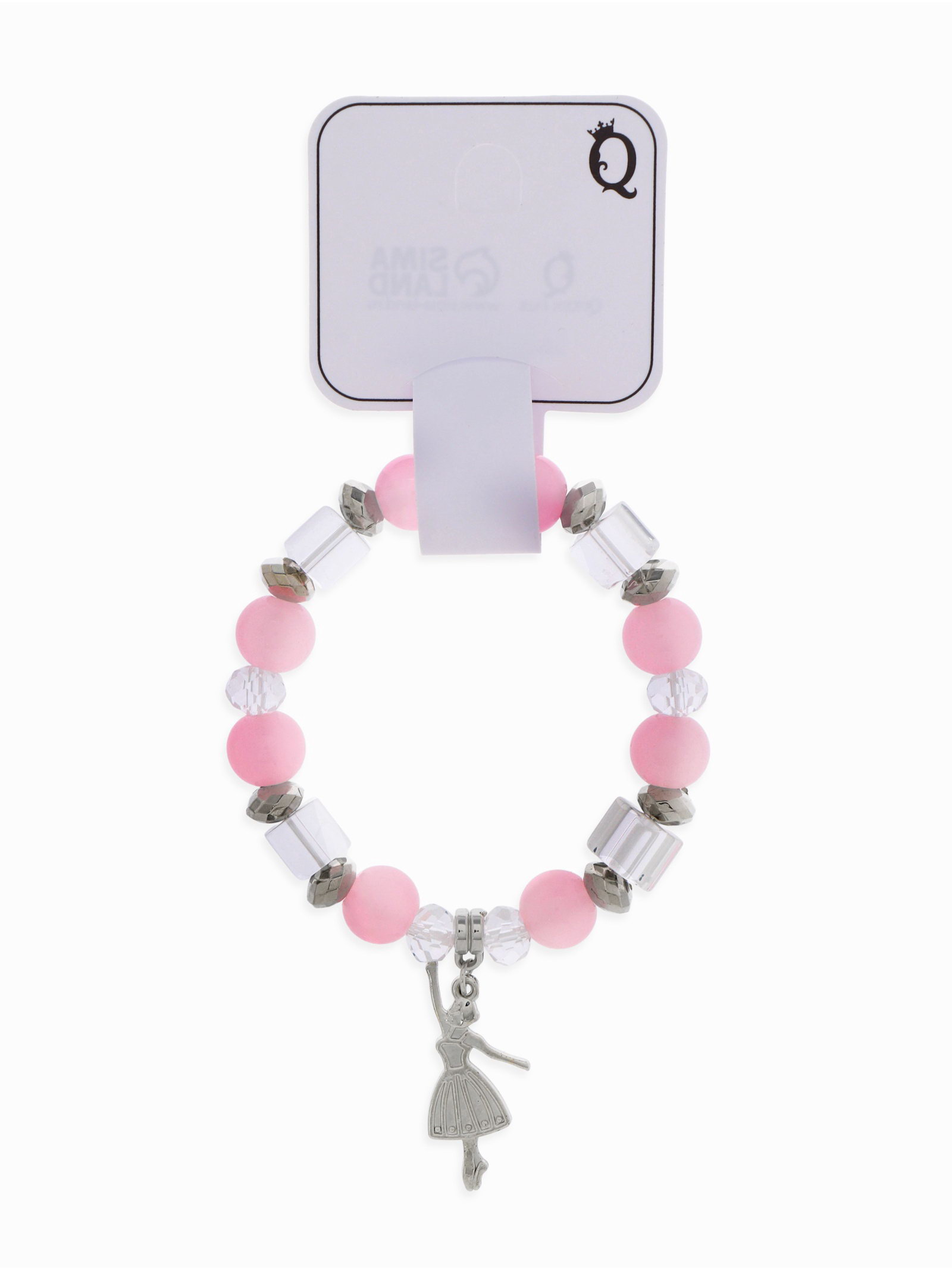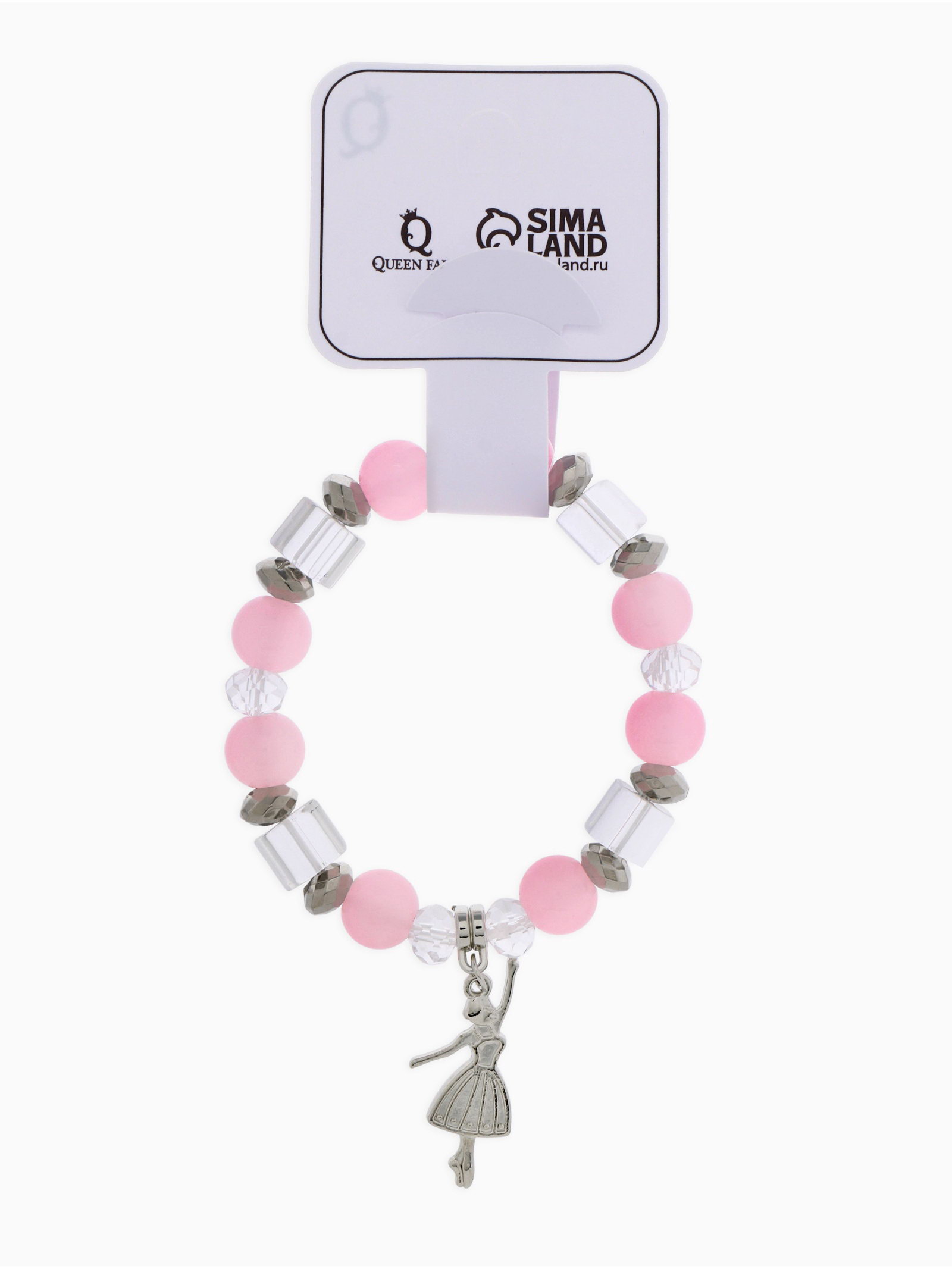 Браслет ассорти "Бусинка" балерина, розовый в серебре, №8, 3x6x0.9 см., QF, Китай
