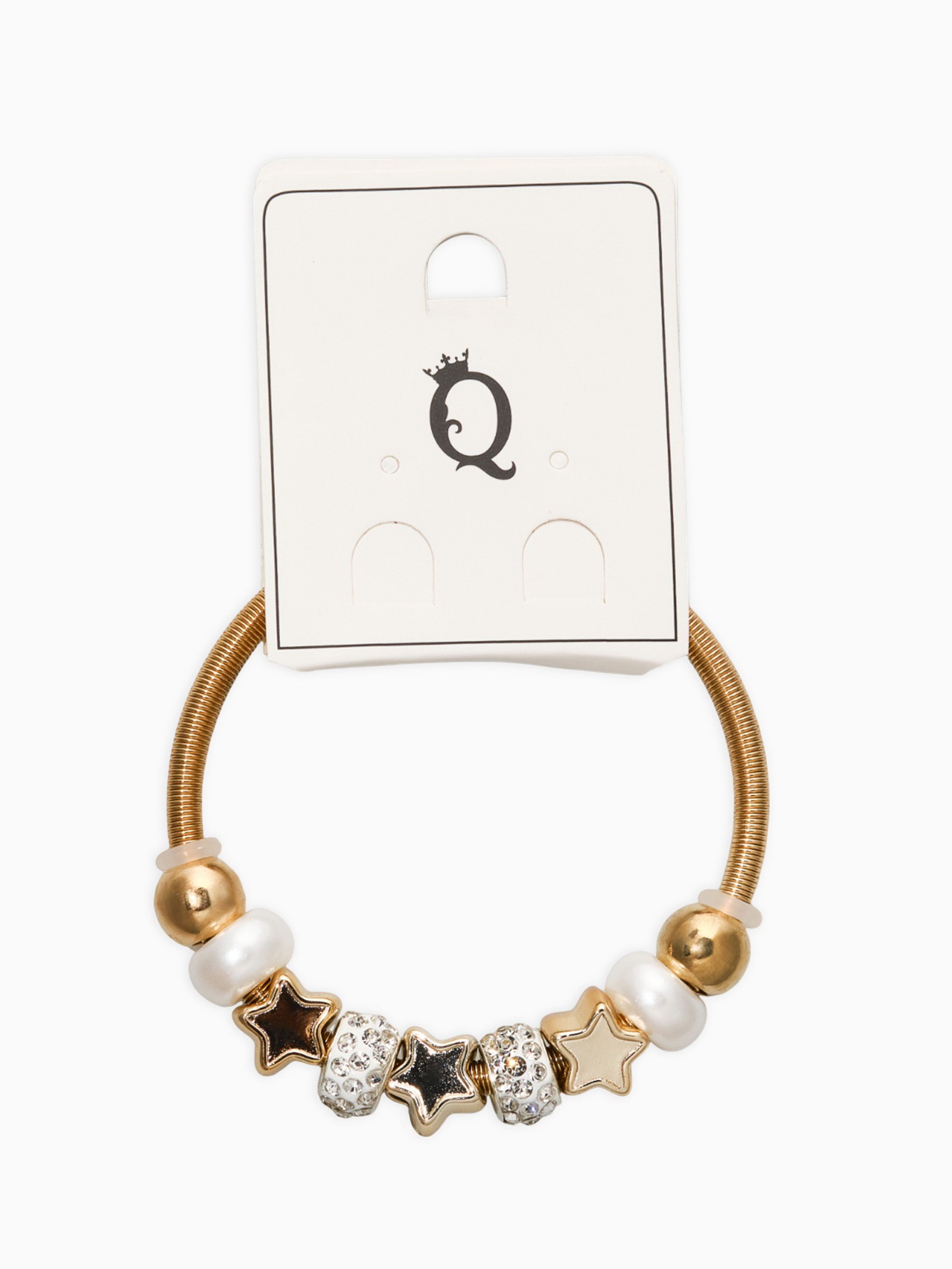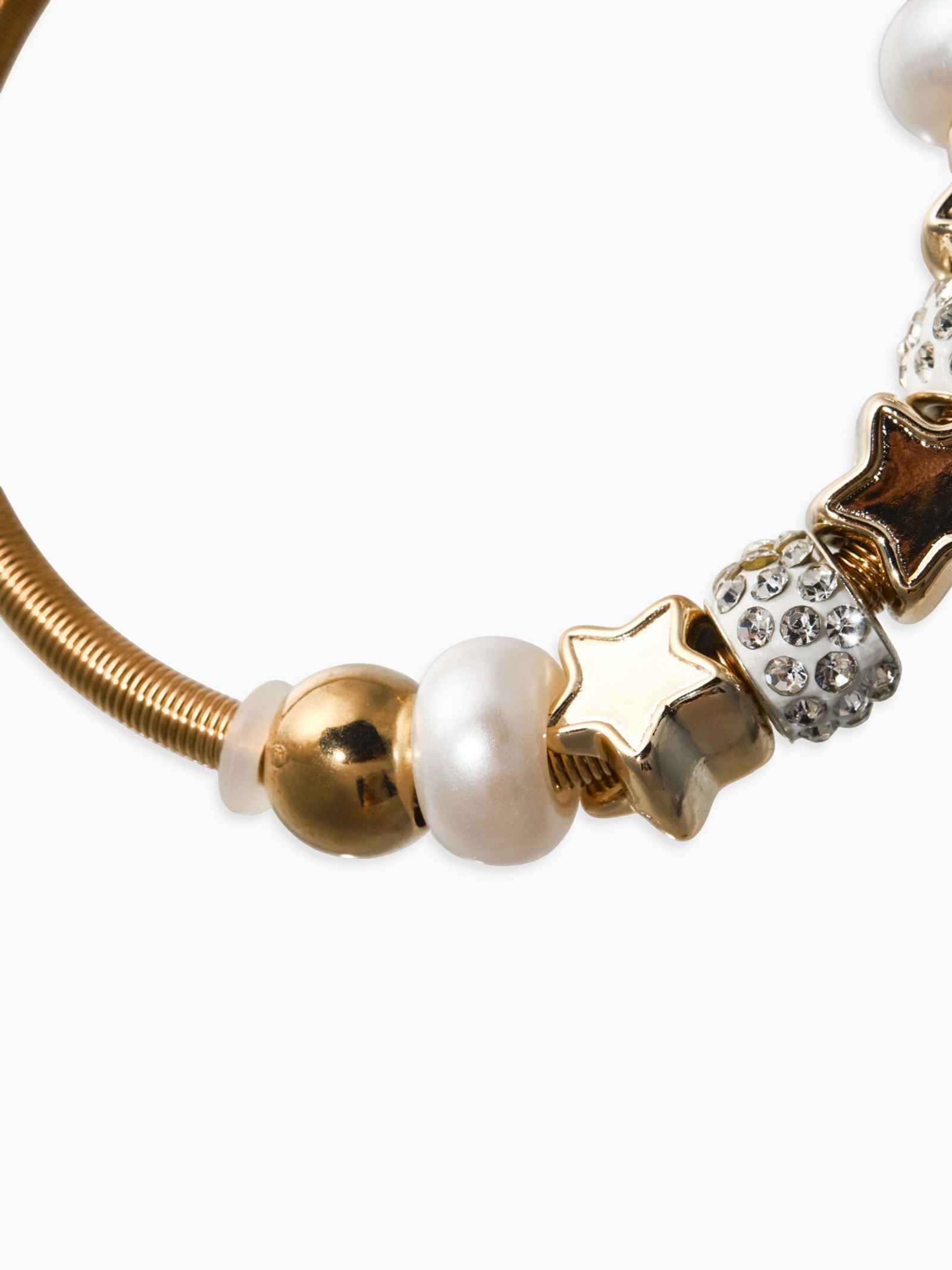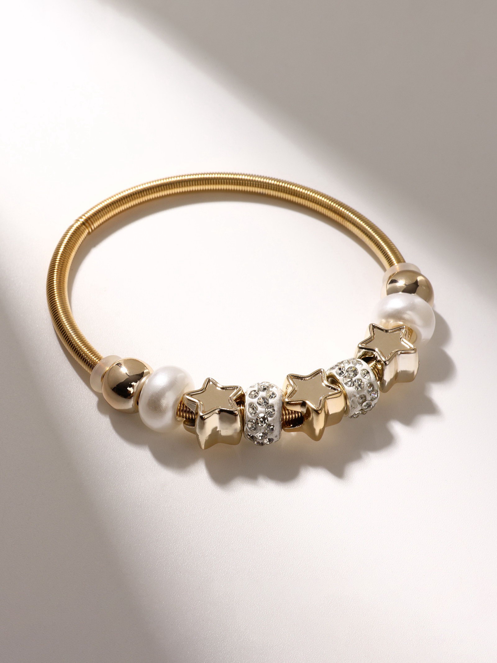 Браслет с шармами "Марджери", жемчуг, звёзды, белый в золоте, d=6.5 см, 1.5x6.5x1.5 см., QF, Китай