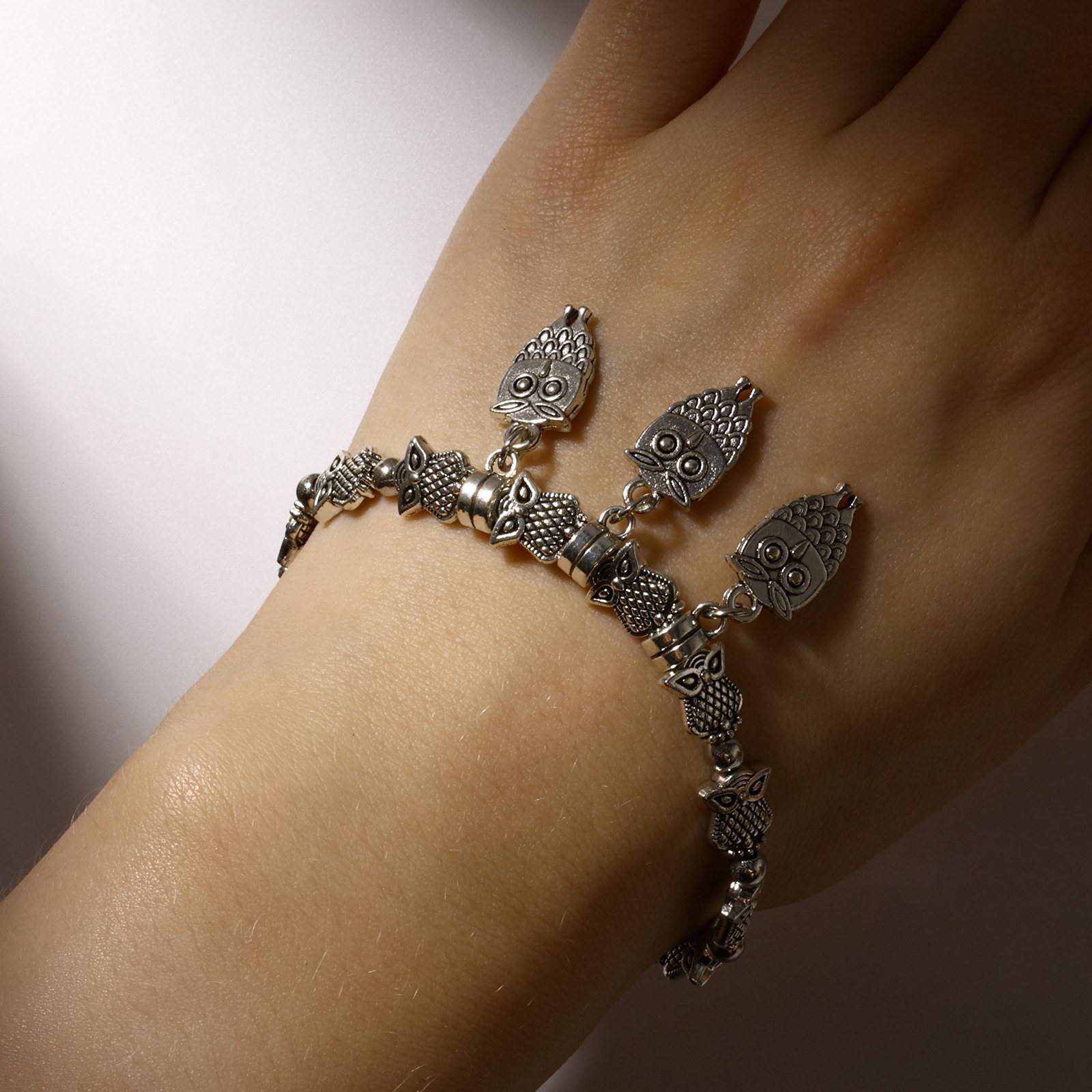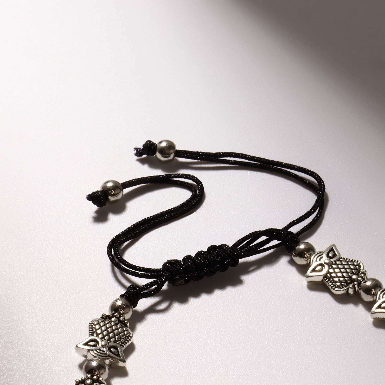 Вид: Браслет, Браслет из бусин, Браслеты Тематика: Птицы, Сова Цвет: Серебристый, Чёрный Размер упаковки: 4 x 0.5 x 10 см. Длина, см: 6 Цвет фурнитуры: Серебряный Температурное ограничение: Нет Для кого: Для женщины Материал основания: Металл В наборе, шт.: 1 Количество нитей: 1 Бижутерия с открыткой: Нет Тематика праздника: Универсальная тематика Вид застёжки: Затяжка tnved: 7117190000 Материал основы: Текстиль Вставка/Подвеска: Металл Набор: Нет Изящный браслет с затягивающейся застёжкой объединяет в себе стиль и функциональность, создавая уникальный аксессуар для современной женщины. Серебристый металлический элемент с изображением совы придаёт украшению загадочность и символичность, а текстильная основа обеспечивает комфорт и надёжную посадку на запястье диаметром 6 см Особенность конструкции регулируемая затяжка, которая позволяет легко подогнать браслет под индивидуальный размер, не ограничивая движения и не вызывая дискомфорта. Металлическая вставка в виде совы не только украшает изделие, но и символизирует мудрость и защиту, что делает браслет не просто украшением, а талисманом.