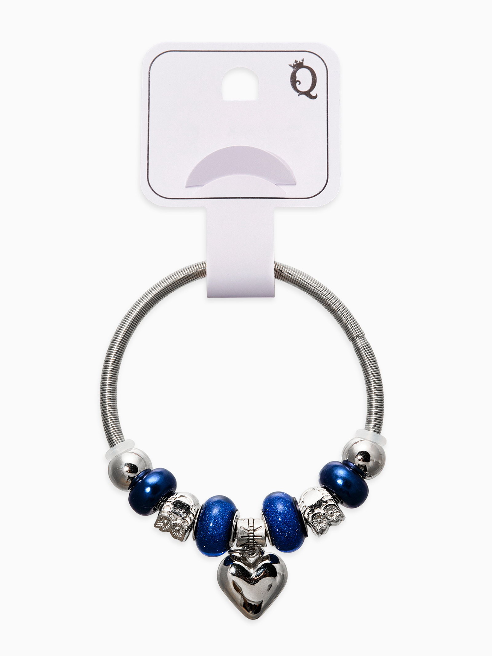 Браслет ассорти "Марджери" сердце, сине-морской в серебре, d=6.5 см, 1.5x6.5x1 см., QF, Китай