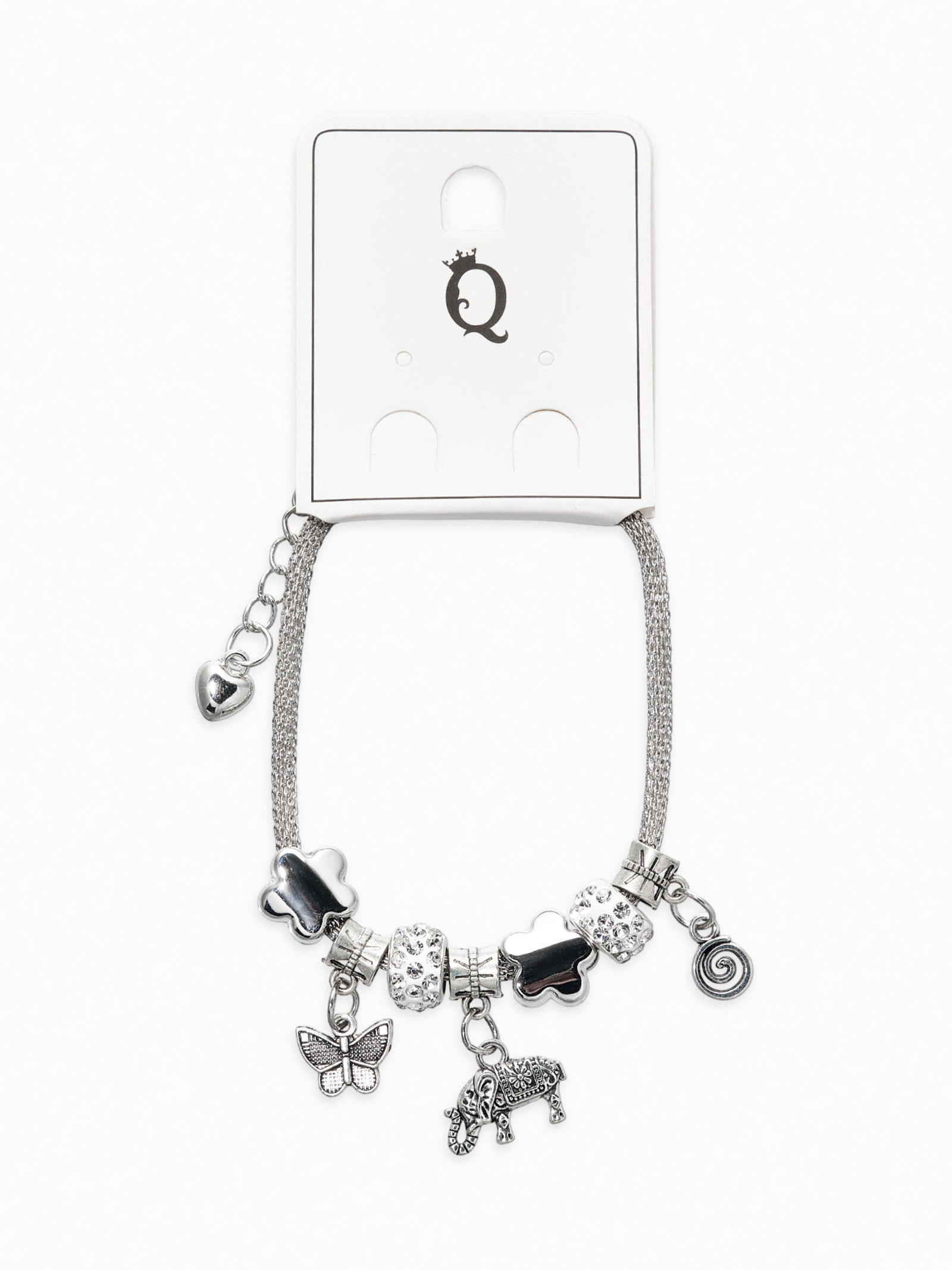 Вид: Браслет, Браслет с шармами, Браслеты Тематика: Бабочка, Цветы и растения Размер упаковки: 7 x 1 x 8 см. Цвет фурнитуры: Серебряный Длина, см: 18 Температурное ограничение: Нет Материал основания: Металл Для кого: Для женщины В наборе, шт.: 1 Количество нитей: 1 Цвет: Серебристый Тематика праздника: Универсальная тематика Бижутерия с открыткой: Нет Вид застёжки: Карабин tnved: 7117190000 Вставка/Подвеска: Стразы Набор: Нет Материал основы: Металл ТМ QF это яркий пример сочетания бессмертной классики и актуальных трендов в мире аксессуаров. Металлические цепи, серьги-кольца, украшения со стразами, яркие броши вы всегда найдёте подходящий аксессуар. QF включает огромный ассортимент бижутерии, а если вы хотите проявить фантазию и сделать что-то оригинальное самостоятельно, фурнитура для создания украшений идеальное решение. Аксессуары это способ проявить себя и своё чувство стиля, с ними вы можете подчеркнуть свои достоинства, привлечь внимание и создать неповторимый образ. | ||
