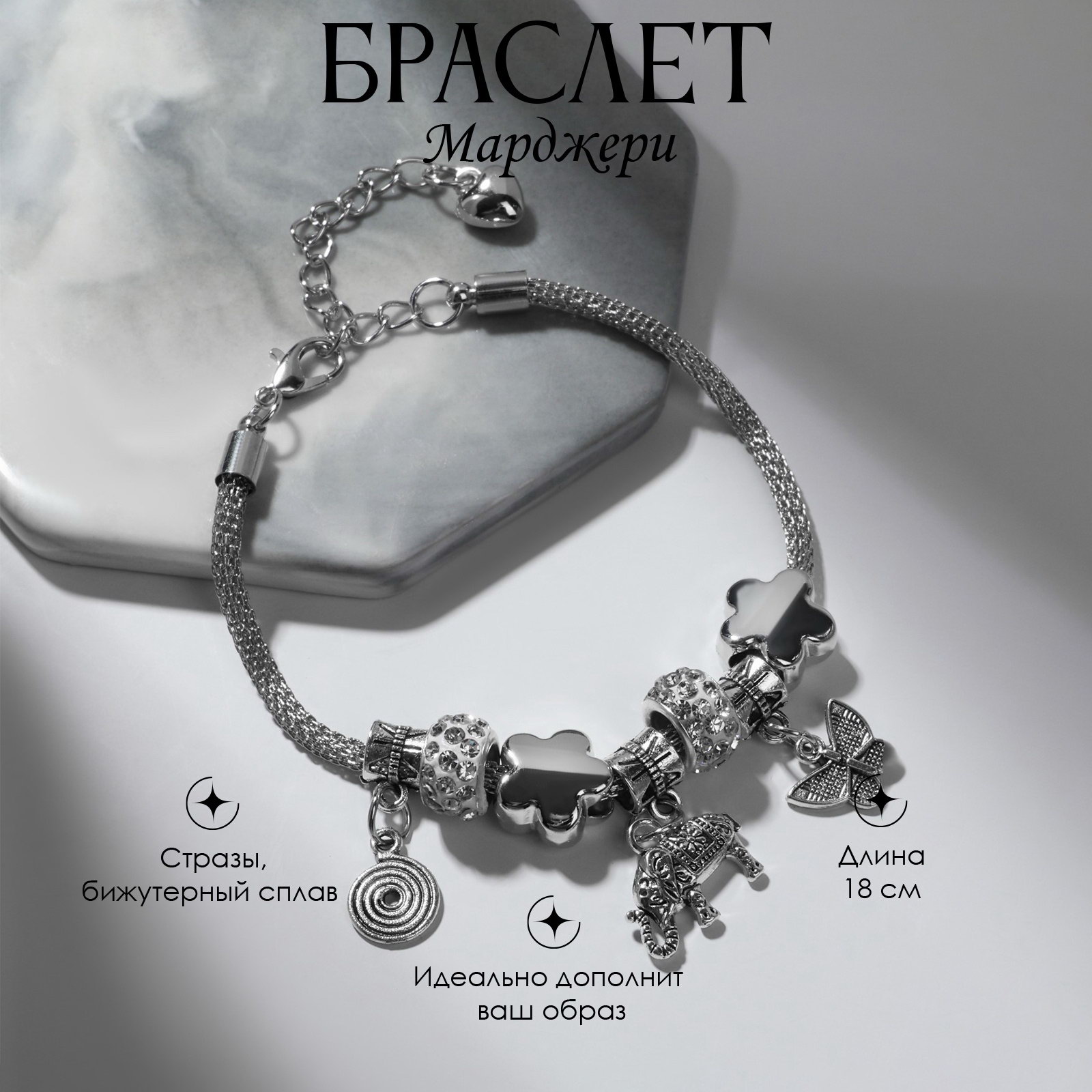 Браслет ассорти "Марджери" символы удачи, цвет белый в серебре, L=18 см, 3x18x0.8 см., QF, Китай