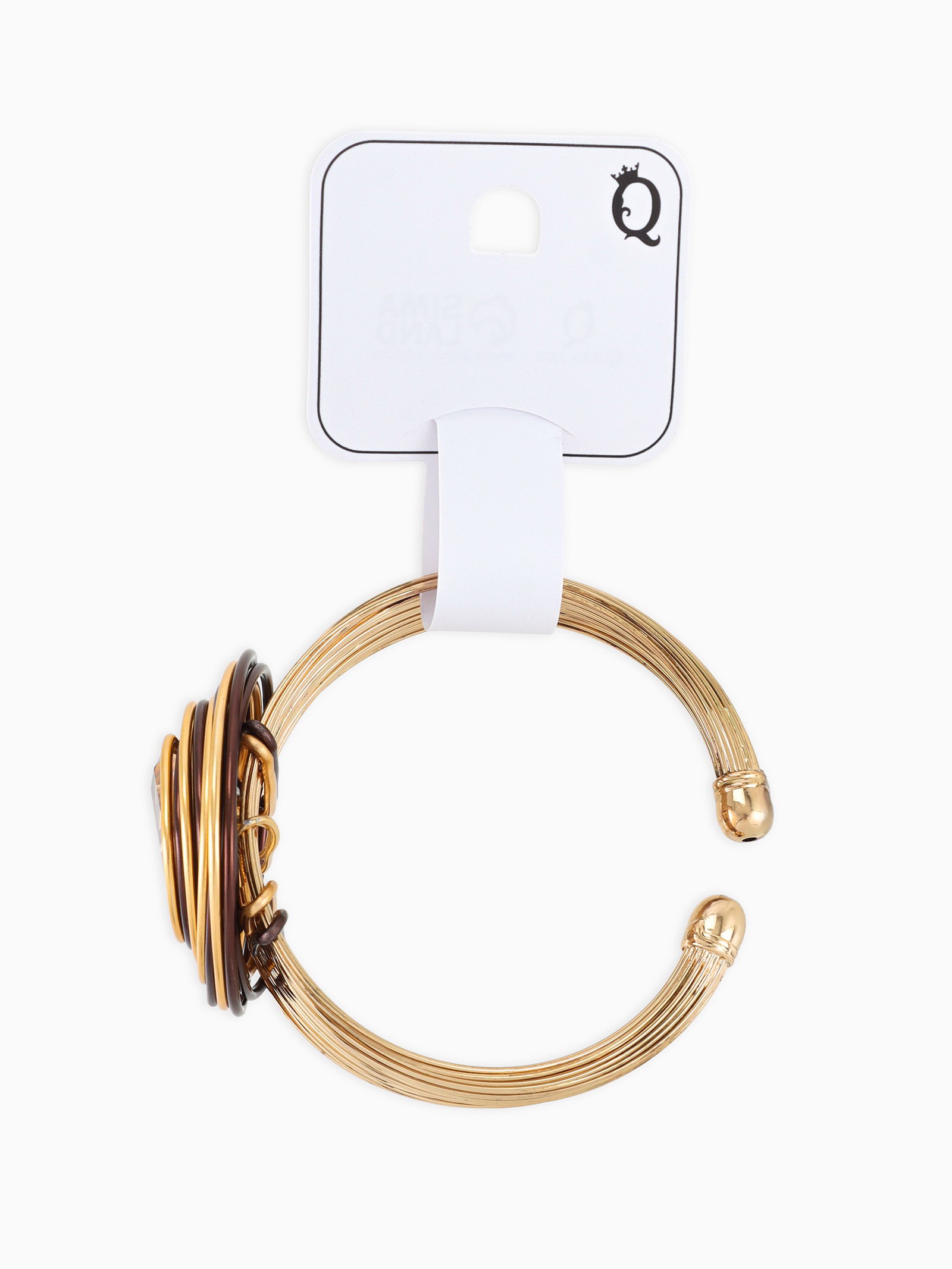 Браслет со стразами "Валькирия" камень в металле, жёлтый в чернёном золоте, безразмерное, d=6.5 см, 4.5x6.5x1.8 см., QF, Китай