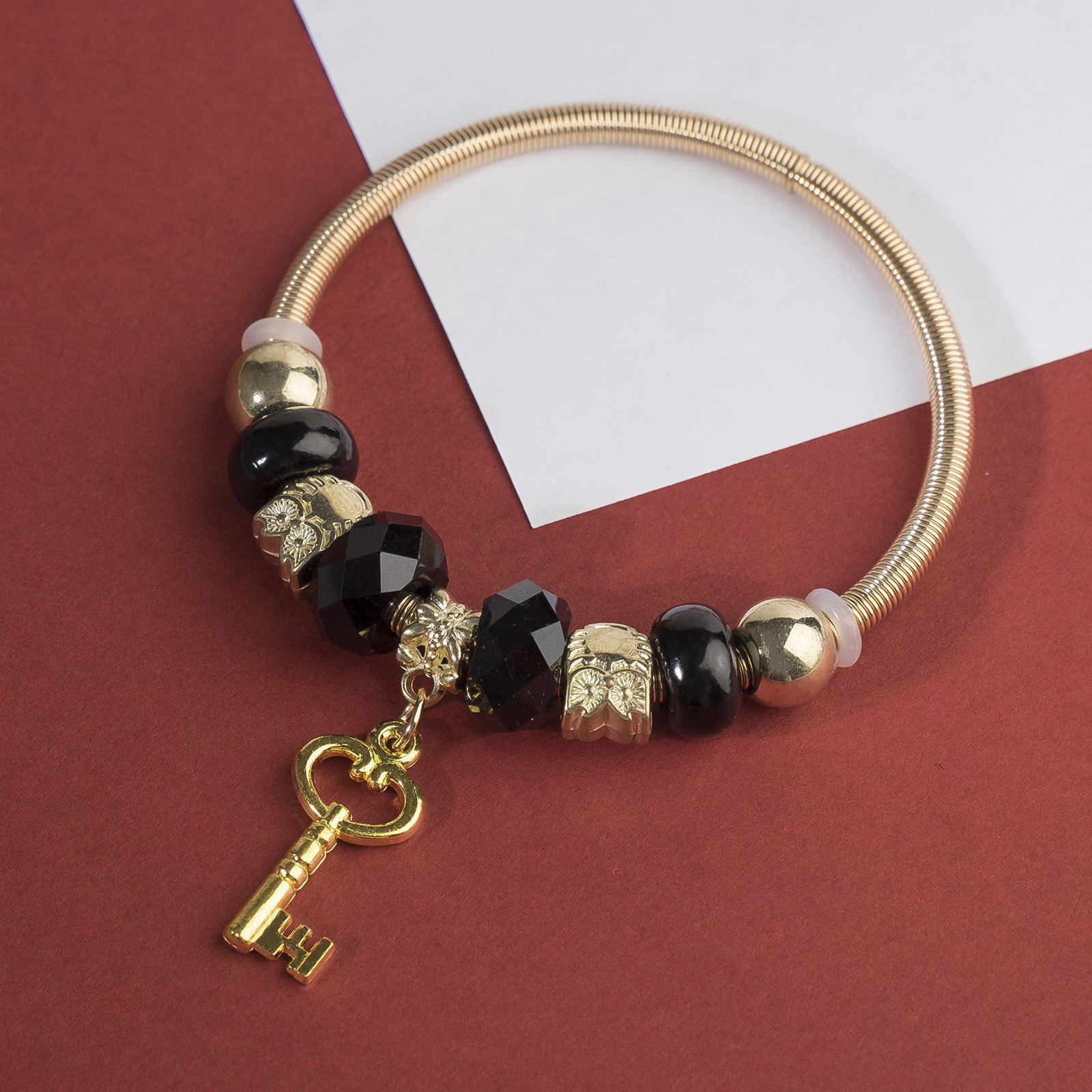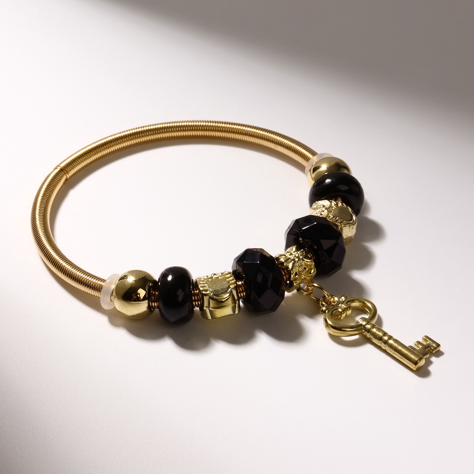 Браслет ассорти "Марджери" ключ, цвет чёрно-золотой в золоте, d=6.5 см, 2.8x6.5x1 см., QF, Китай