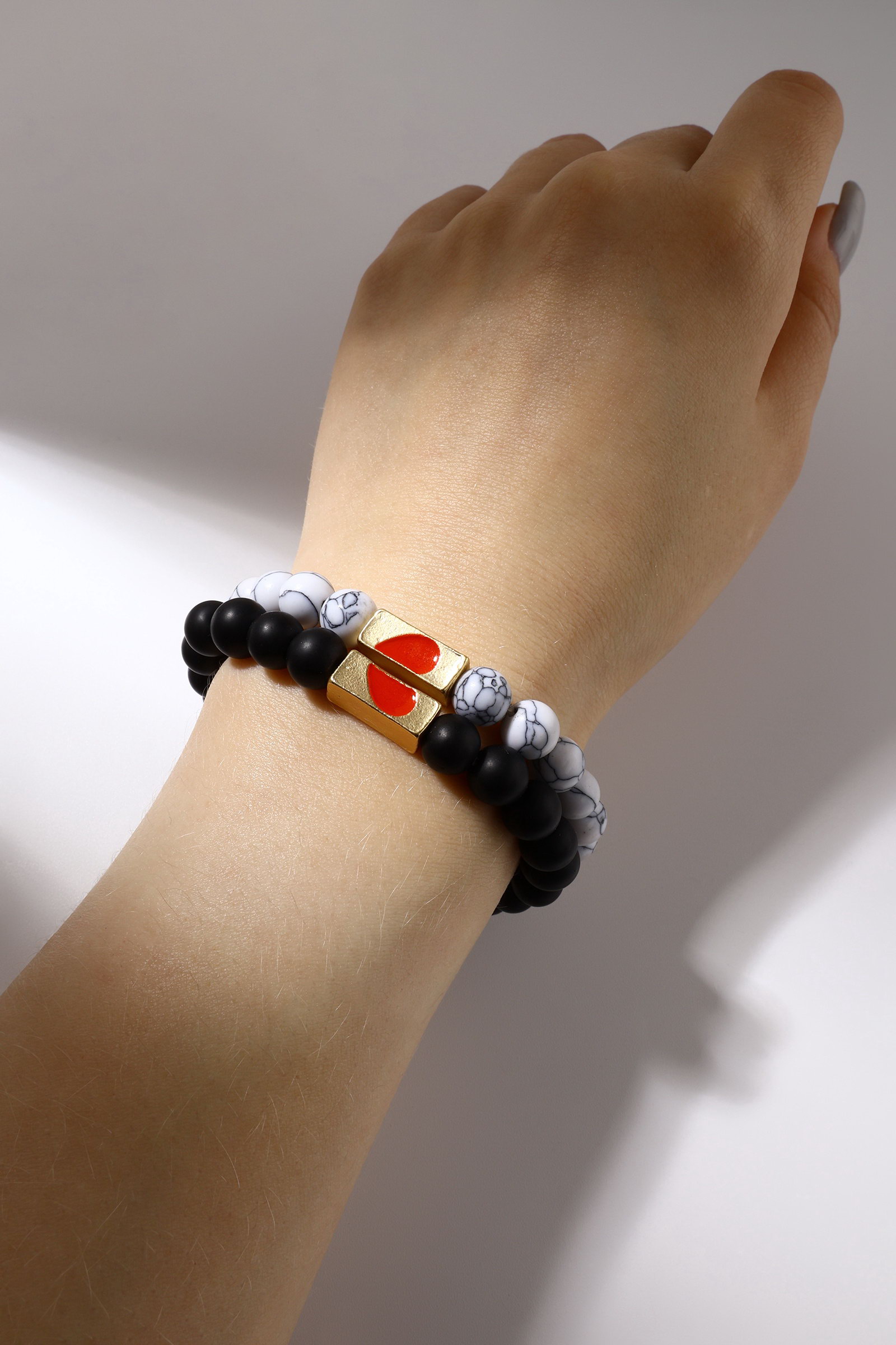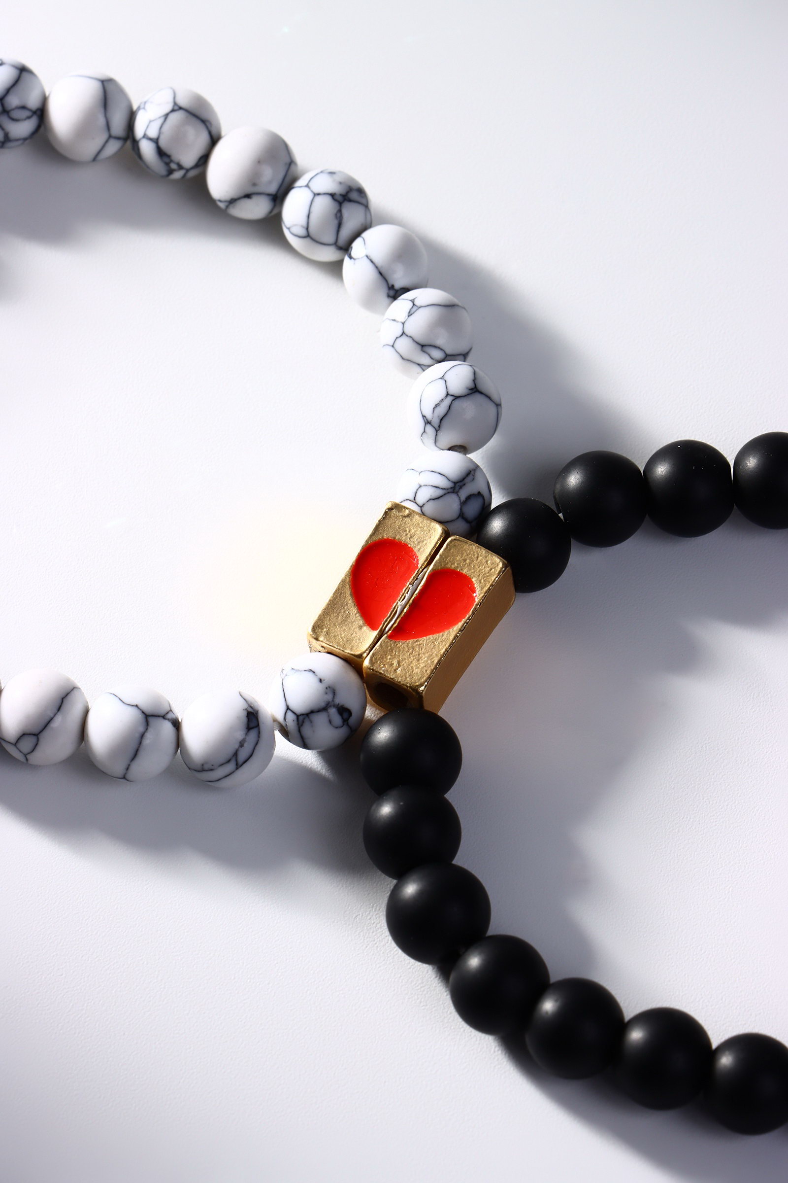 Браслеты парные "Неразлучники" сердце с бусинами, чёрно-белые, шар №8, d=6.5 см, 0.8x6.5x0.8 см., QF, Китай