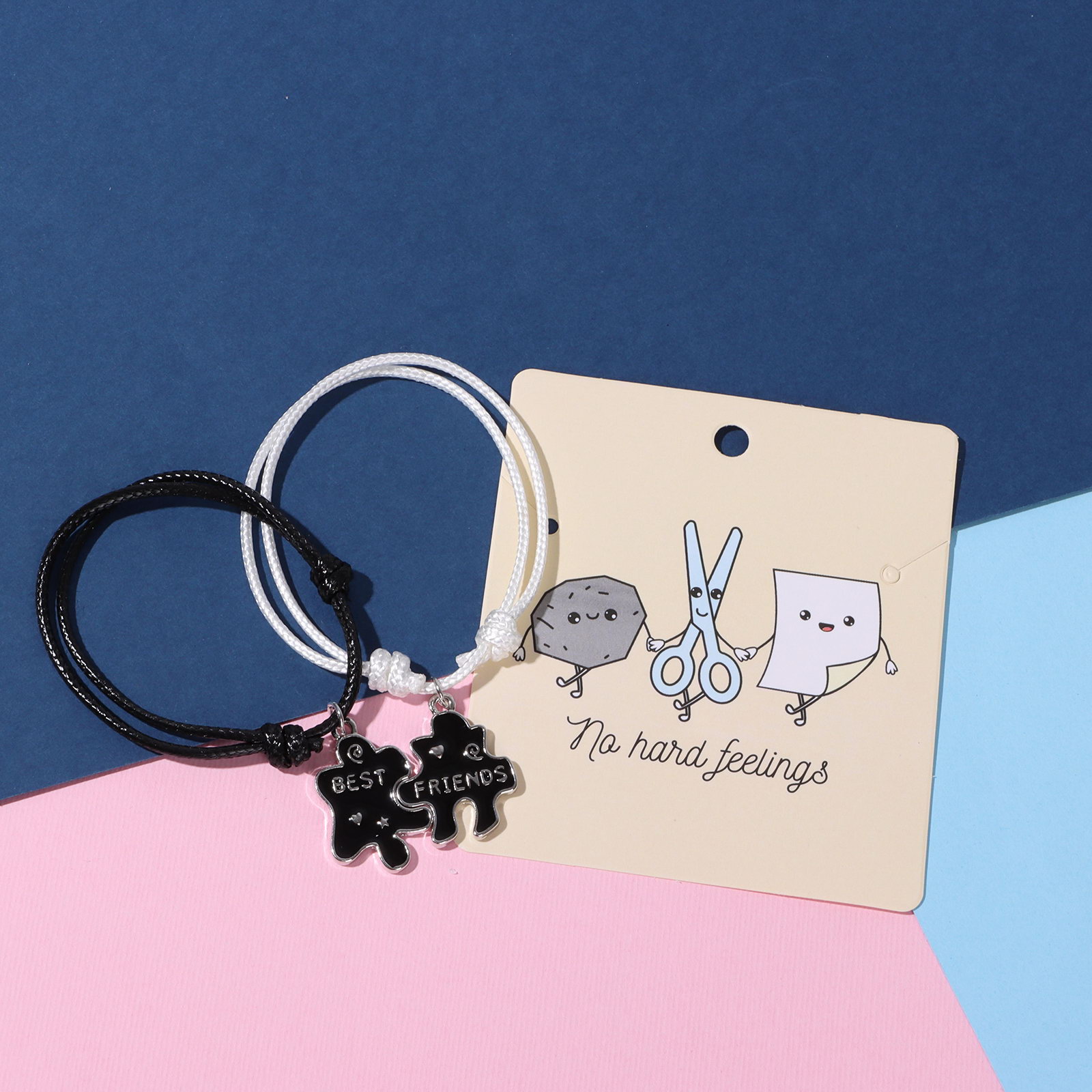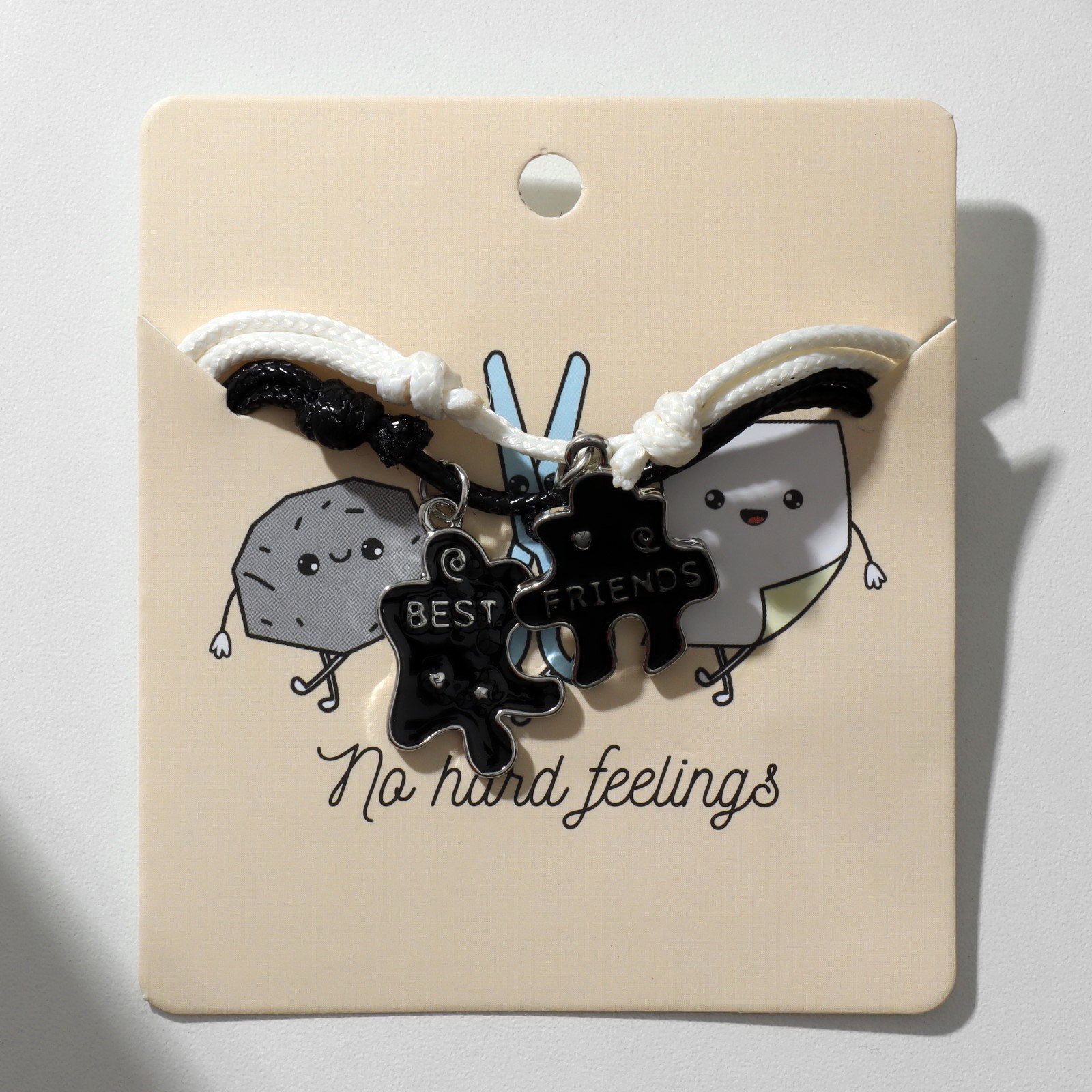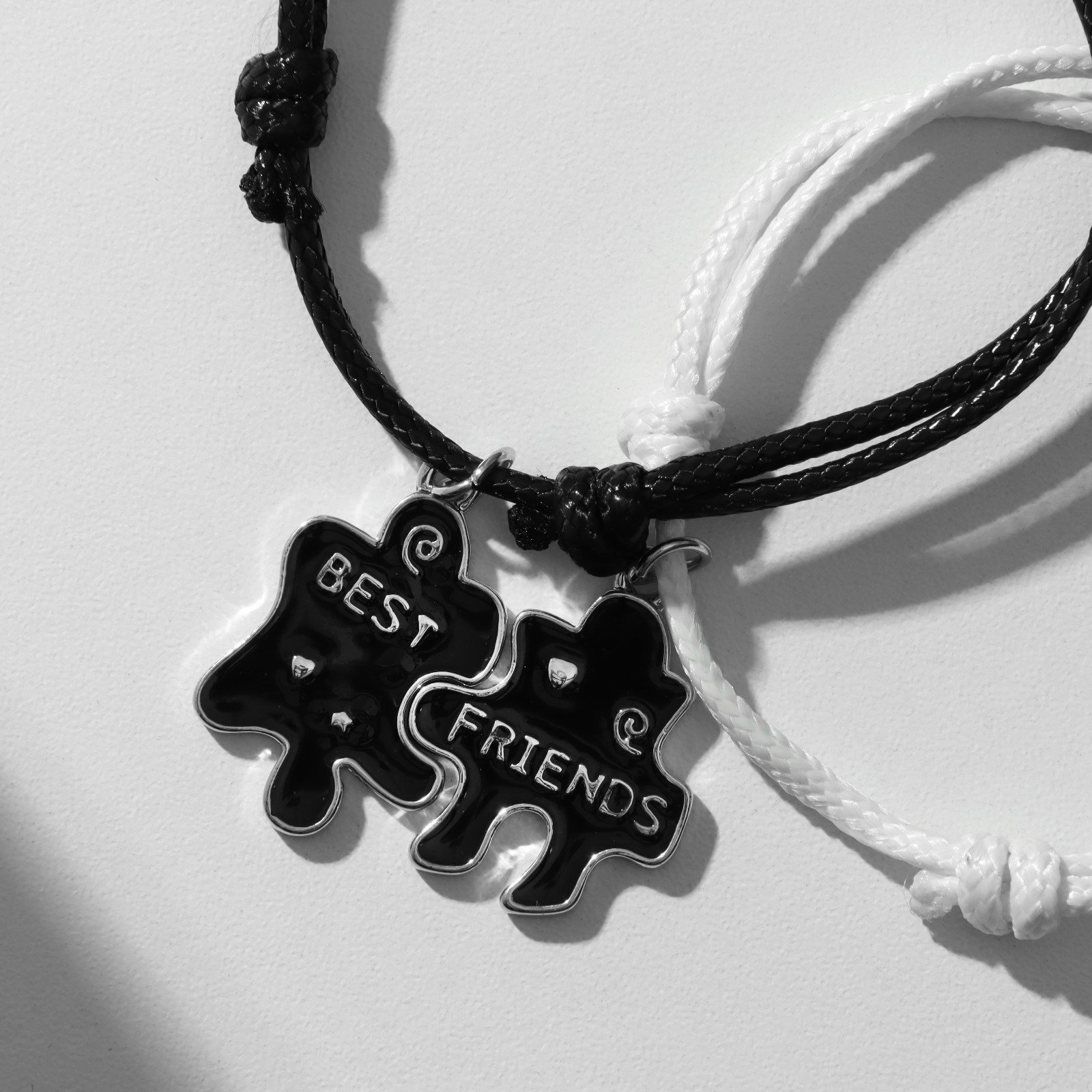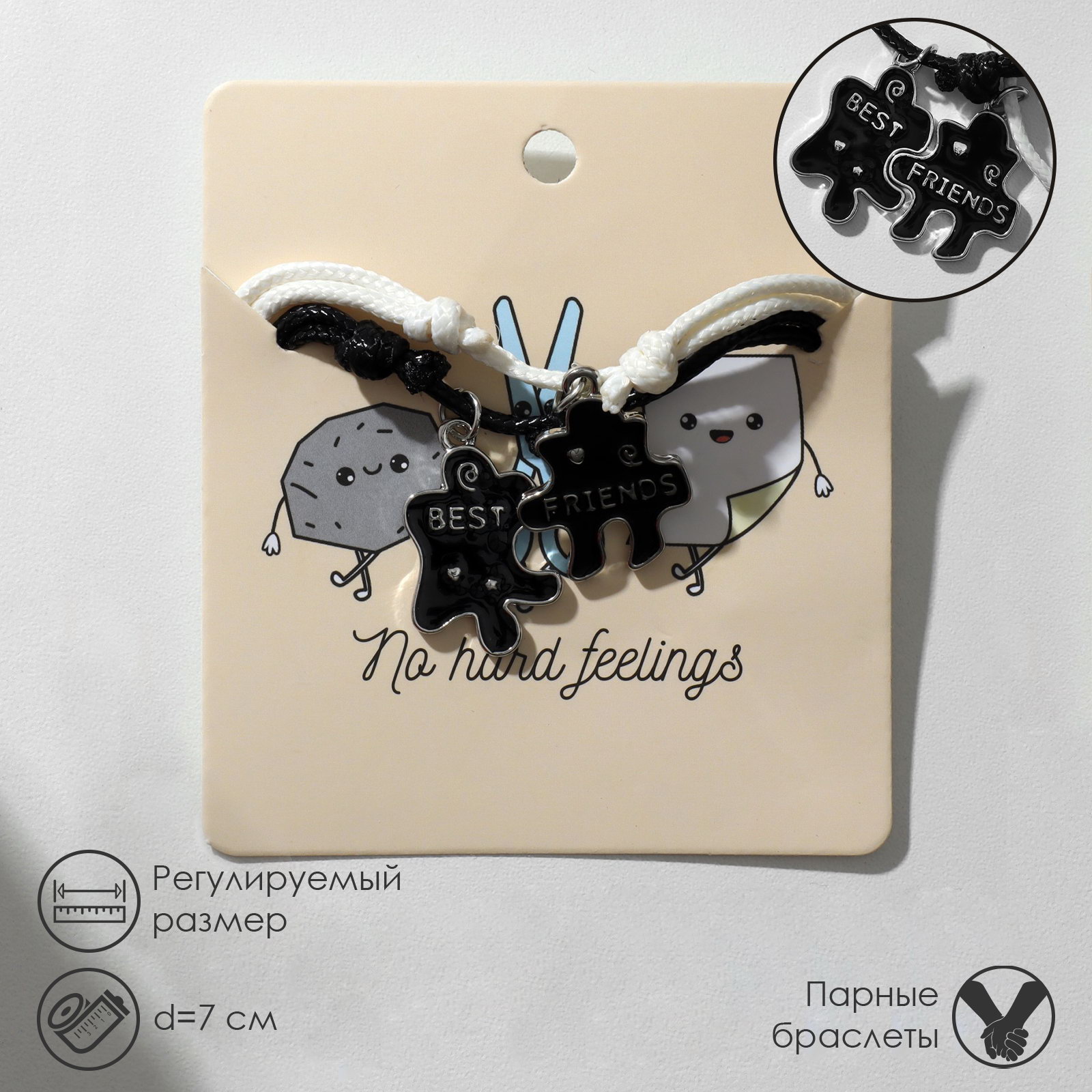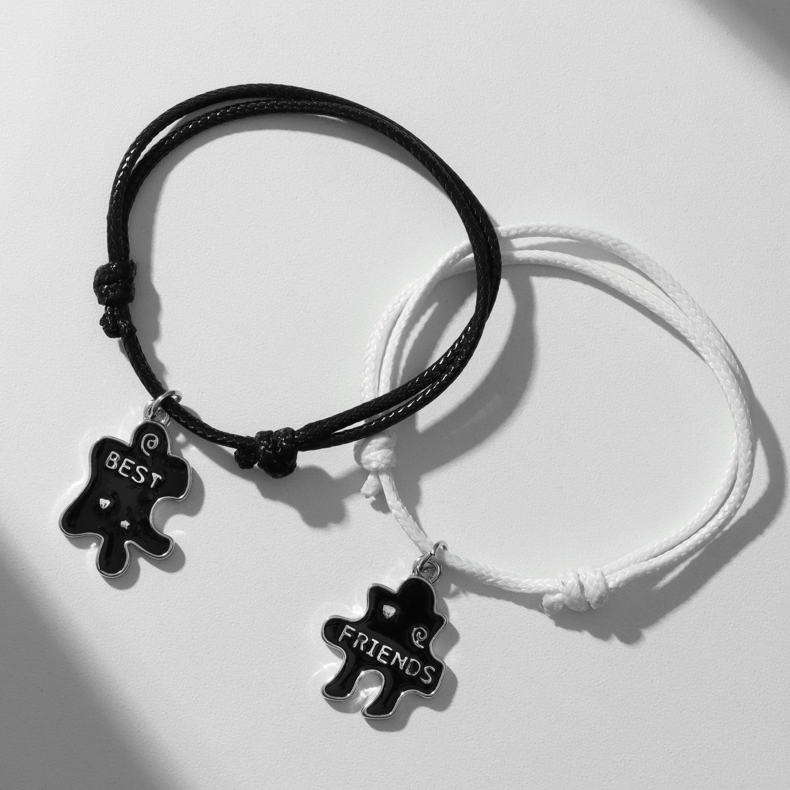 Браслеты "Неразлучники" пазлы с сердечком, цвет чёрно-белый, 7 см, 3x7x0.5 см., Queen fair, Китай