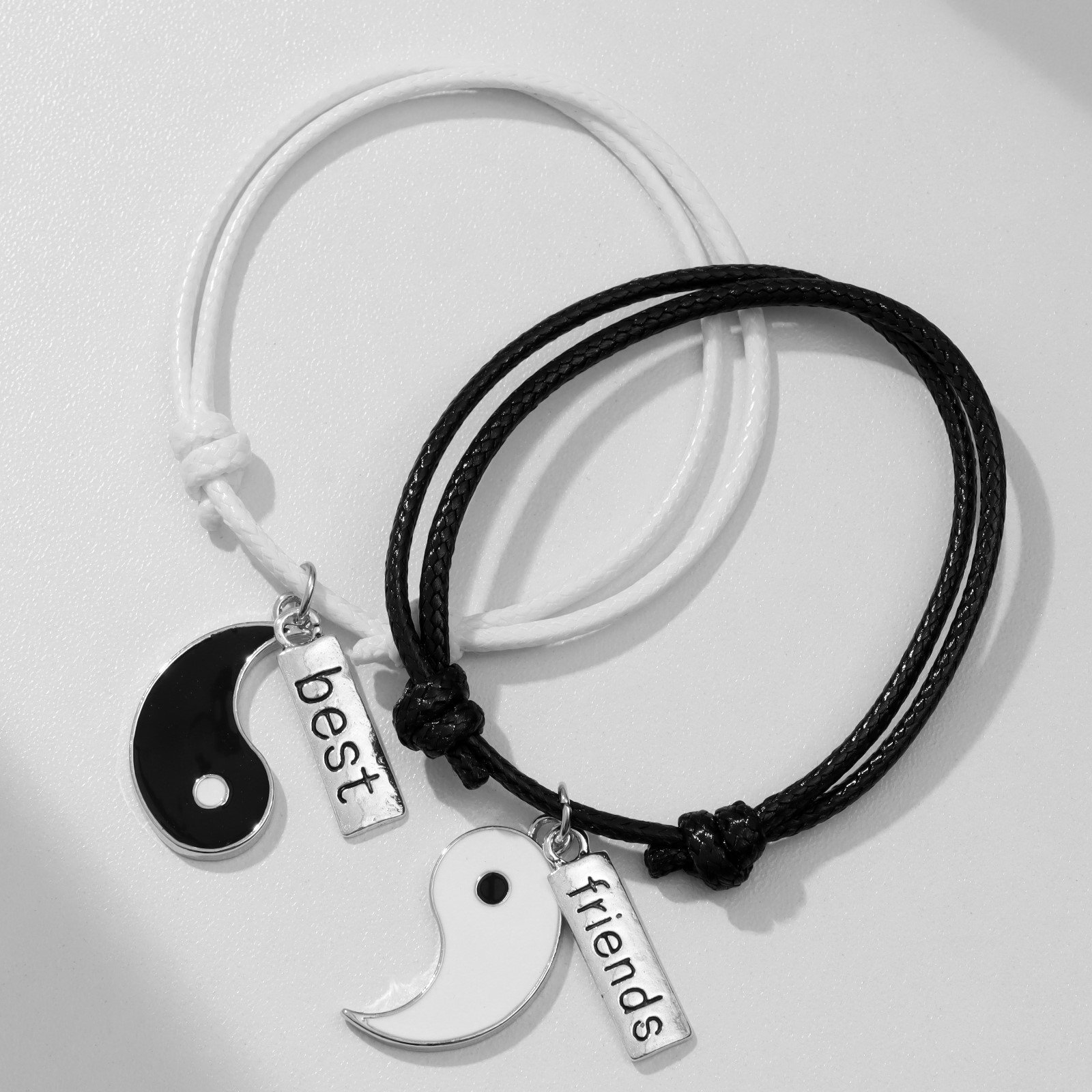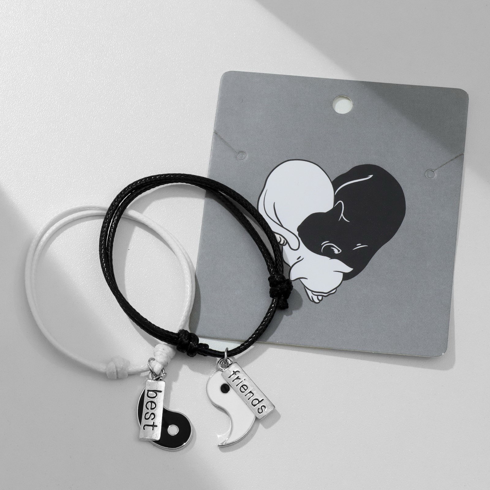 Браслеты парные "Неразлучники" инь-ян, дружба, чёрно-белые, d=7 см, 2.7x7x0.5 см., QF, Китай