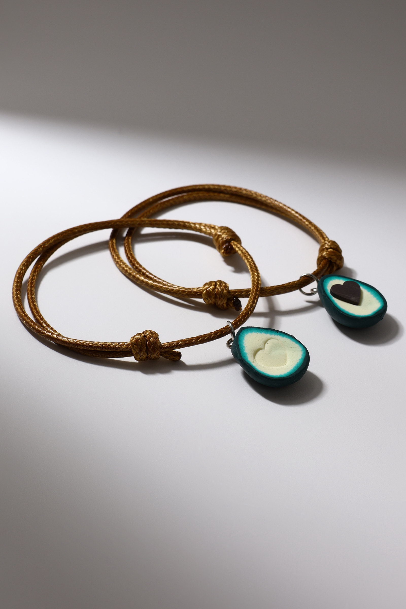 Браслеты парные "Неразлучники" авокадо с сердечком, коричневые, d=7 см, 4x7x0.5 см., Tell your story, Китай
