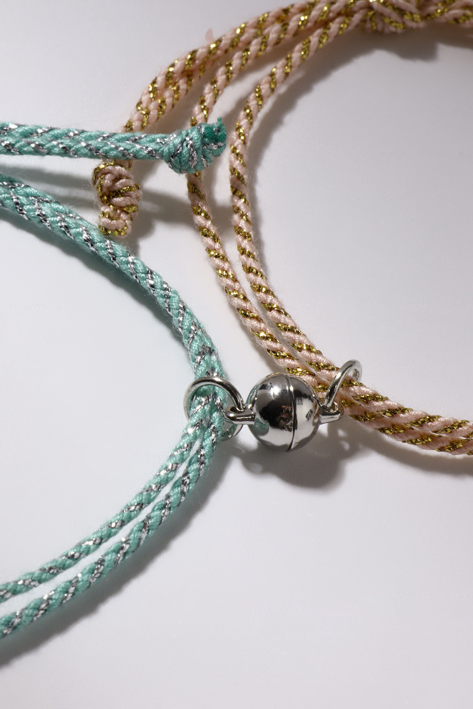Браслеты парные "Неразлучники" на магните, планеты сияющие, цвет бежево-голубой, 18 размер, 2x18x1 см., Tell your story, Китай