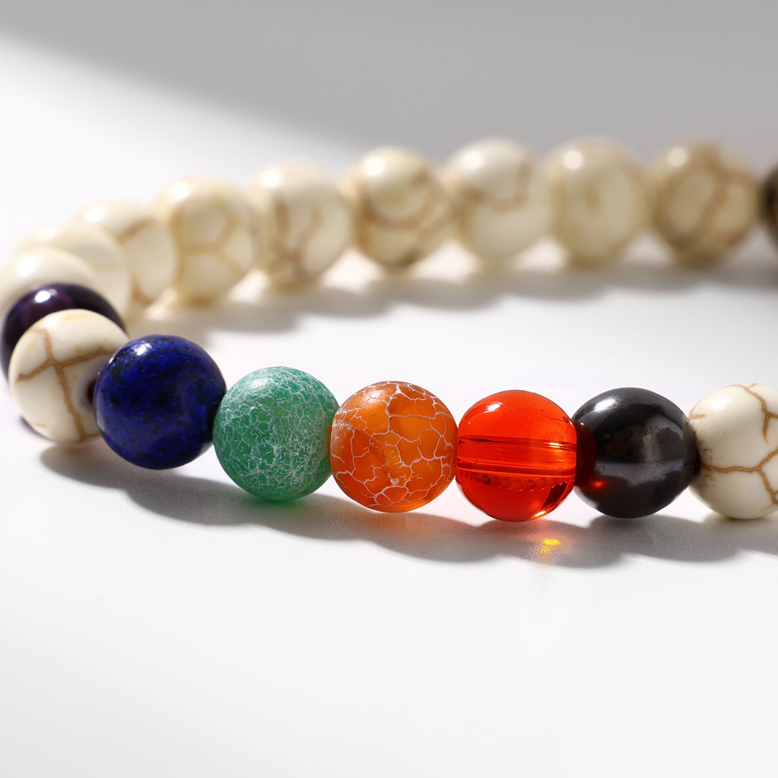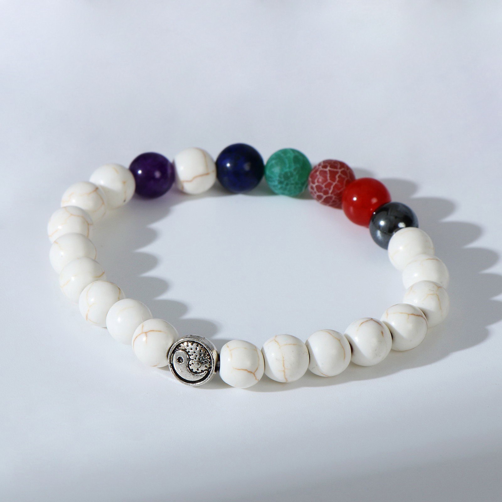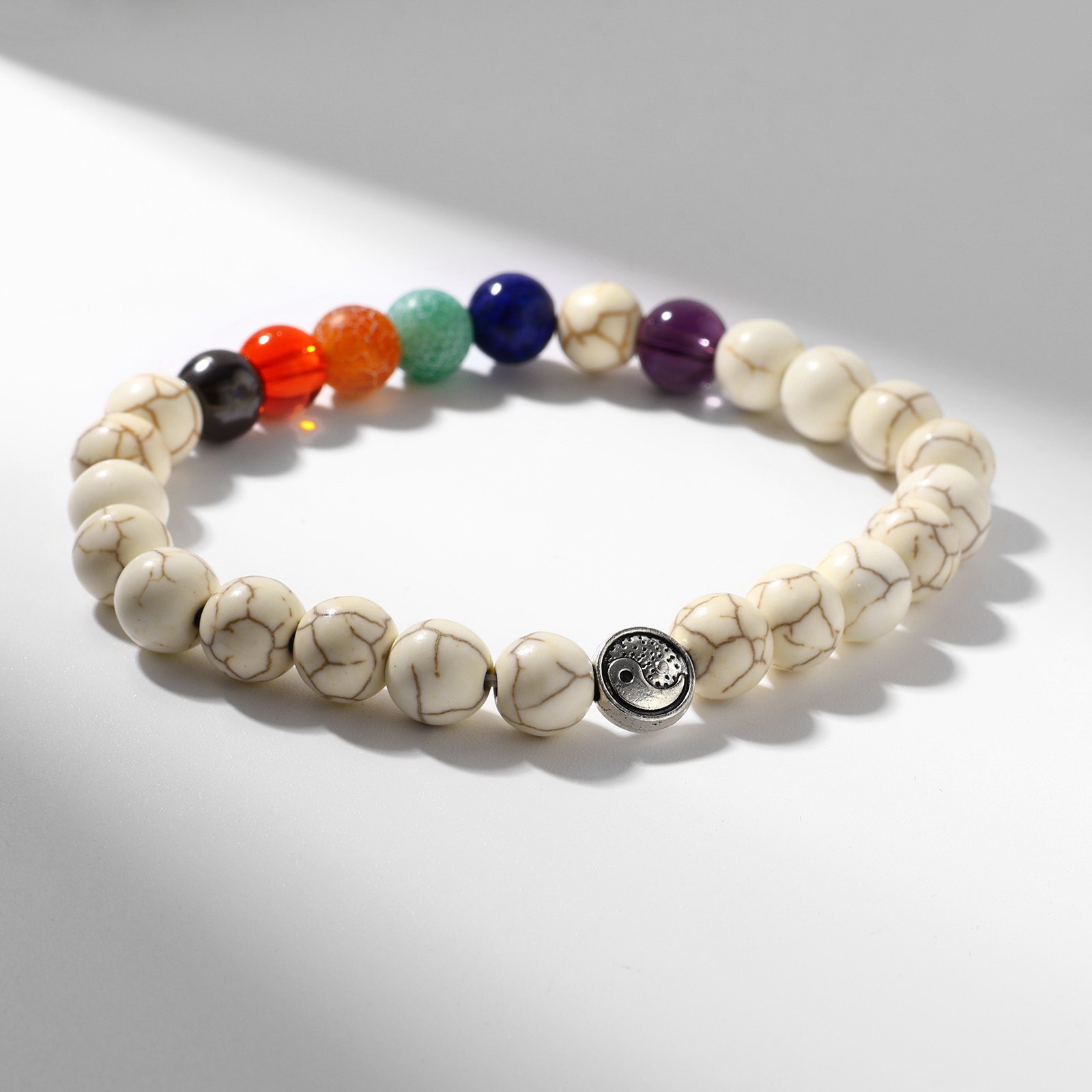 Вид: Браслет, Браслет из бусин, Браслеты Тематика: Без тематики, Каменная Цвет вставки: Зелёный, Красный, Оранжевый, Синий, Фиолетовый, Чёрный Тематика праздника: 8 Марта, День рождения, Универсальная тематика Адресат: Бабушке, Дочке, Маме, Сестре Вставка/Подвеска: Камень искусственный, Металл Размер упаковки: 4 x 1 x 9 см. Материал основания: Силикон Температурное ограничение: Нет В наборе, шт.: 1 Количество нитей: 1 Бижутерия с открыткой: Нет Цвет: Бежевый Составляющие набора: Браслет Для кого: Унисекс Вид застёжки: Без застёжки Вид застёжки: Без застёжки tnved: 7117190000 Длина, см: 7 Материал основы: Силикон Набор: Нет Коллекция: Микс камней Цвет фурнитуры: Чернёное серебро Браслет чакровый "Планеты" инь-ян сочетает в себе гармонию и энергию, объединяя в себе символику планет и баланс инь-ян. Его яркий цветной дизайн с чернёным серебром создает уникальный визуальный эффект, привлекая внимание и наполняя образ особым смыслом. В основе изделия искусственный камень и силикон, что обеспечивает долговечность и комфорт при ношении. Длина 7 см идеально подходит для универсального использования, а отсутствие застёжки делает его легким в надевании и снятии. Браслет из бусин с одним нитью обладает гибкостью и адаптивностью, позволяя подчеркнуть индивидуальность владельца. Такой аксессуар станет отличным дополнением к любому стилю от повседневного до праздничного, а также станет приятным подарком для мамы, дочери, бабушки или сестры на 8 Марта, День рождения или любой другой праздник.