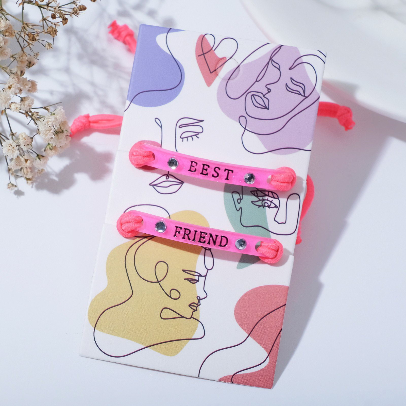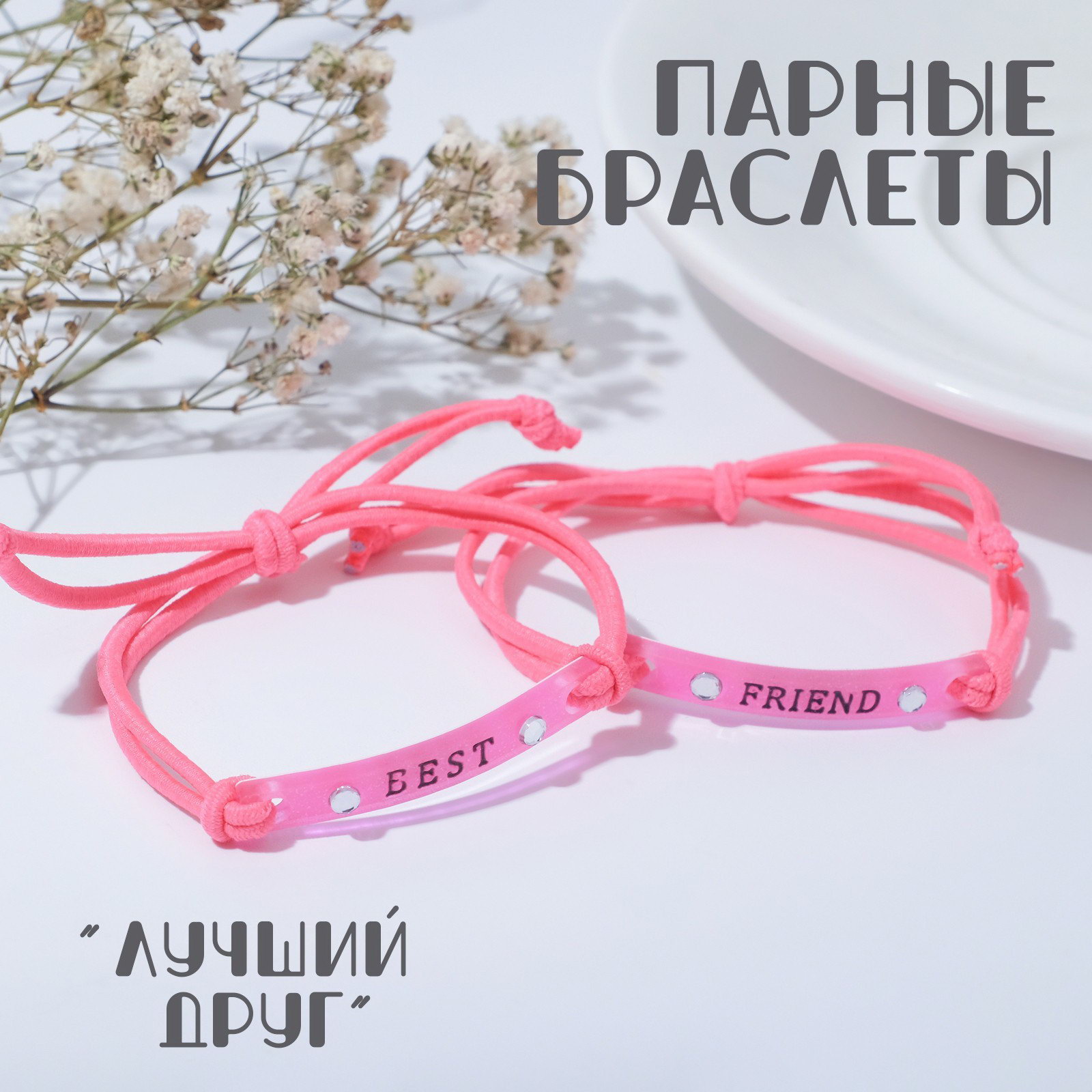 Браслеты "Неразлучники" best friend, прозрачные пряжки, цвет розовый, 7см, 0.5x7x0.3 см., Queen fair, Китай