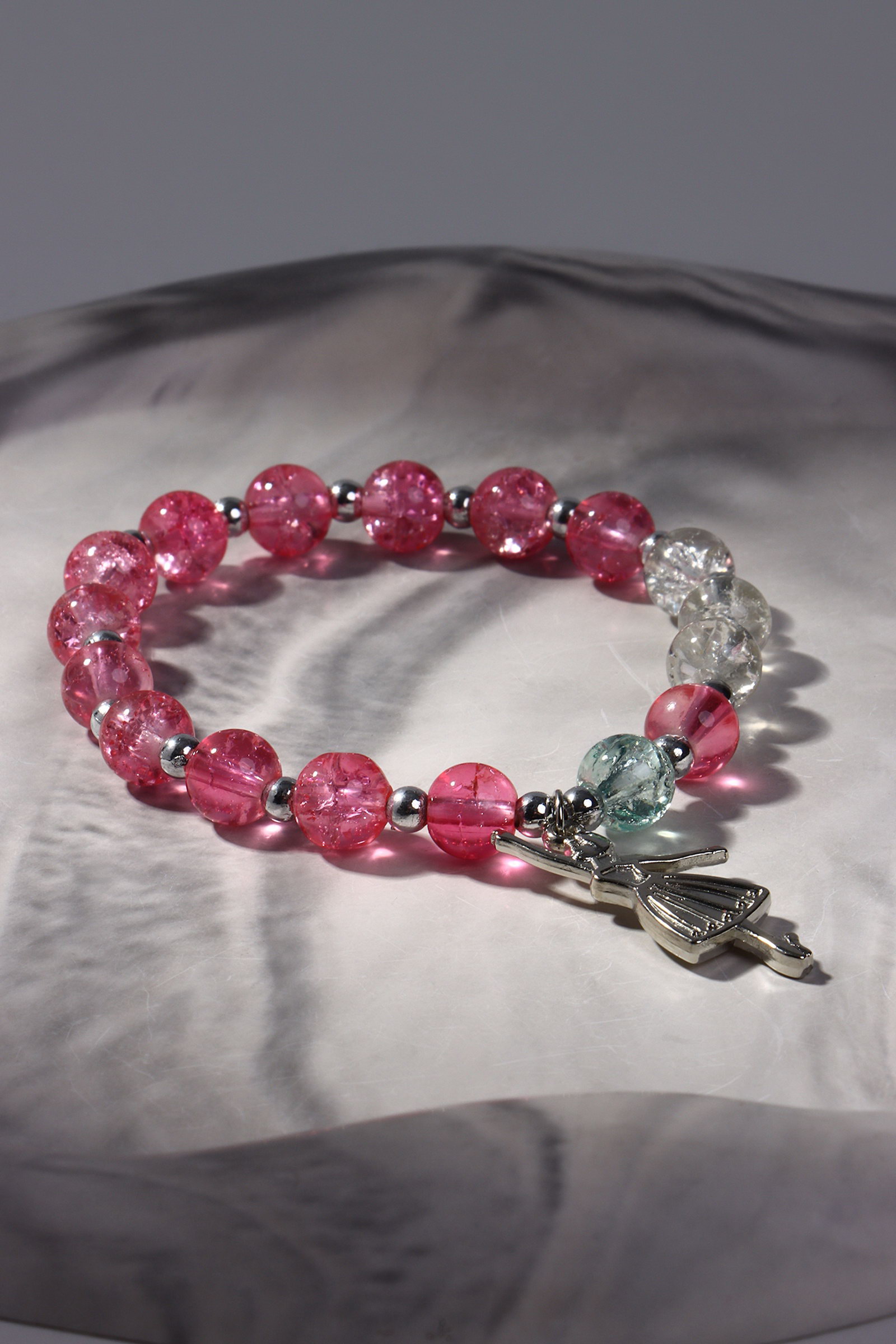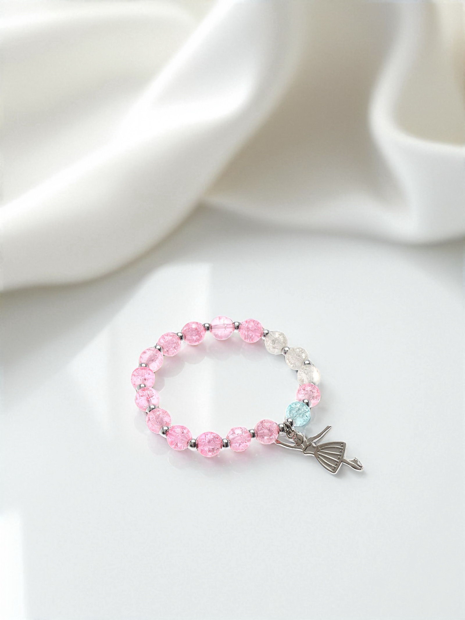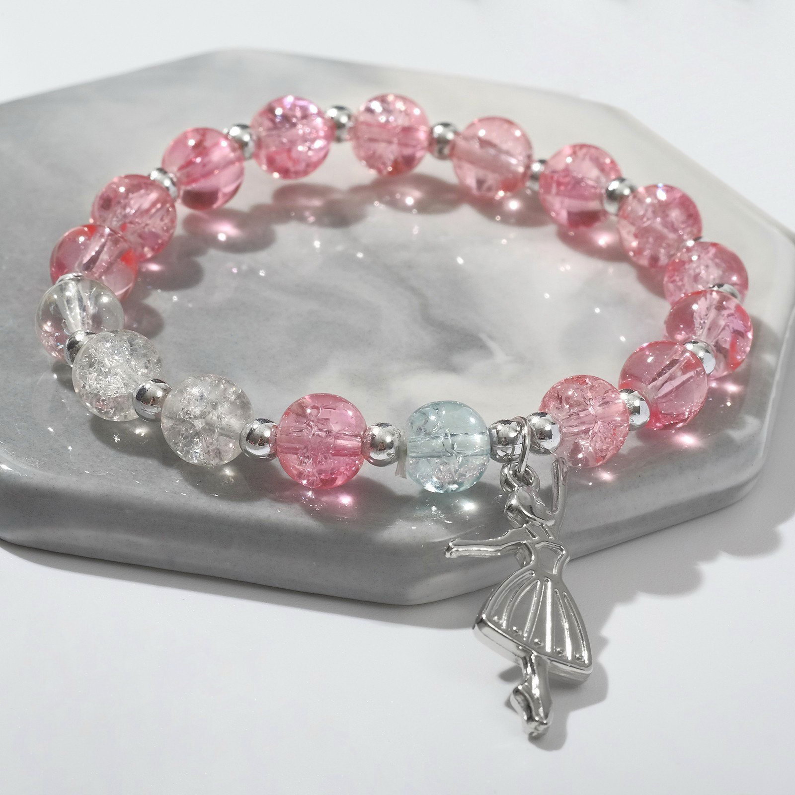 Браслет "Радость" балерина, цвет бело-розовый в серебре, d=7, 7х7х0.7 см., QF, Китай