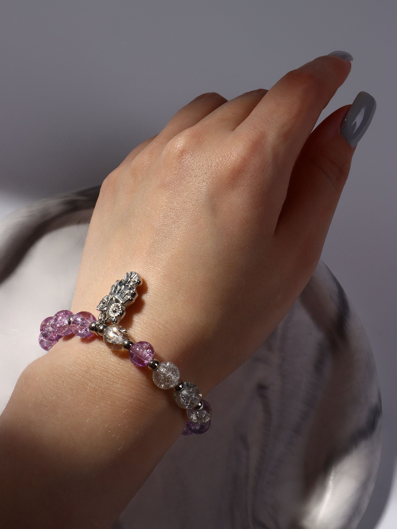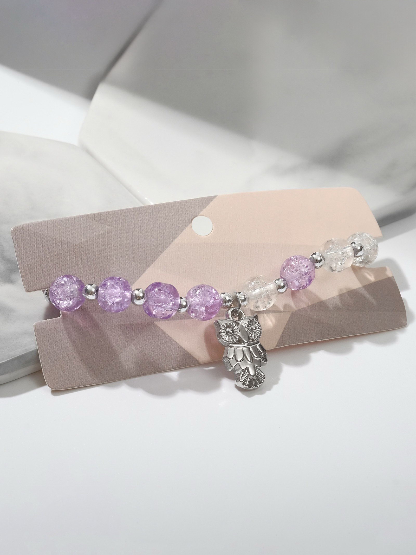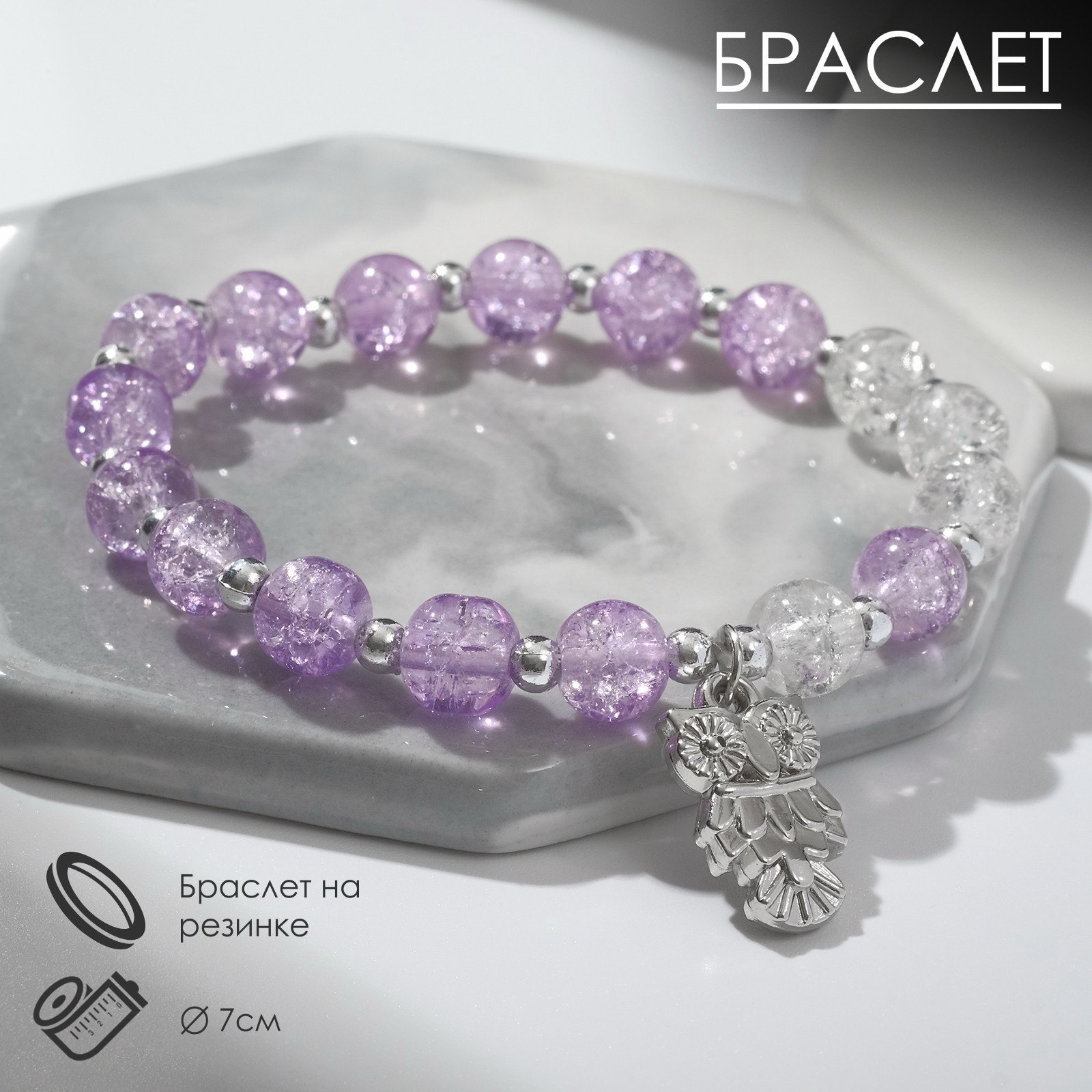 Браслет "Радость" сова, цвет бело-сиреневый, d=7, 7х7х0.8 см., QF, Китай