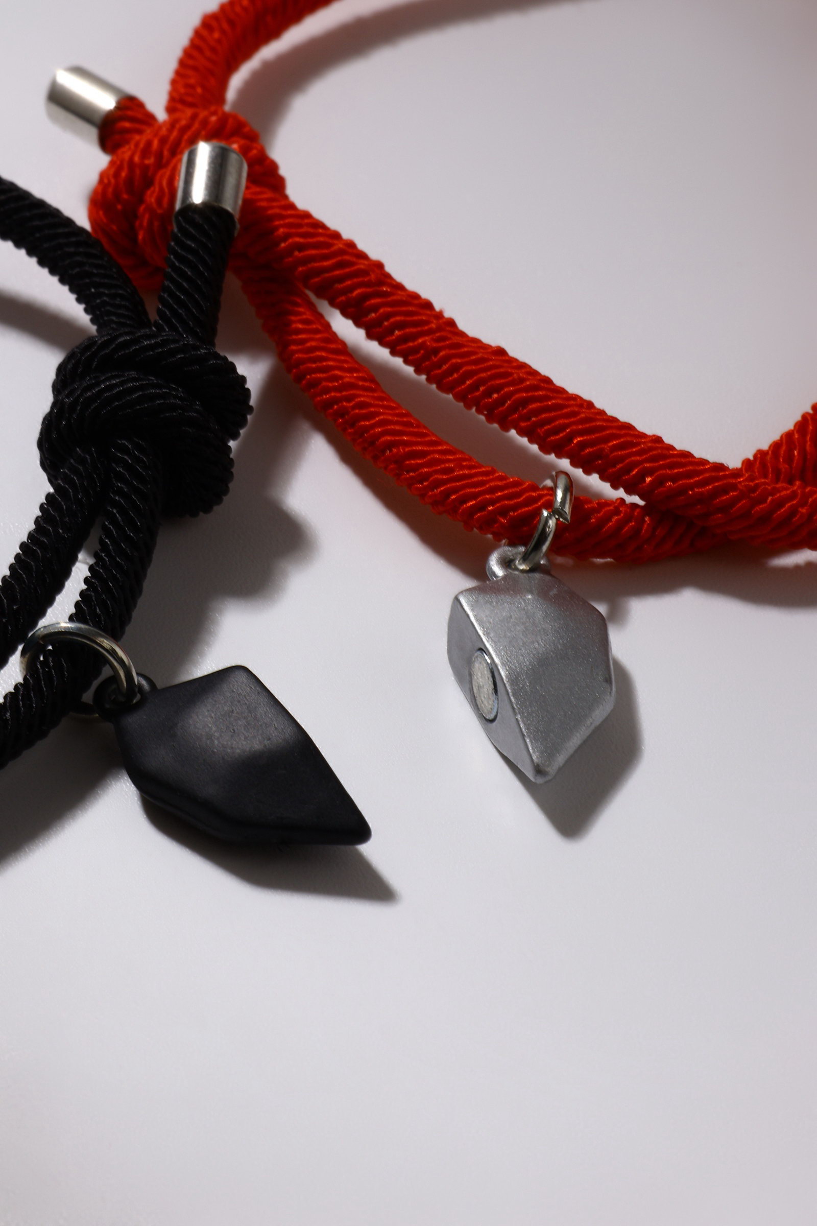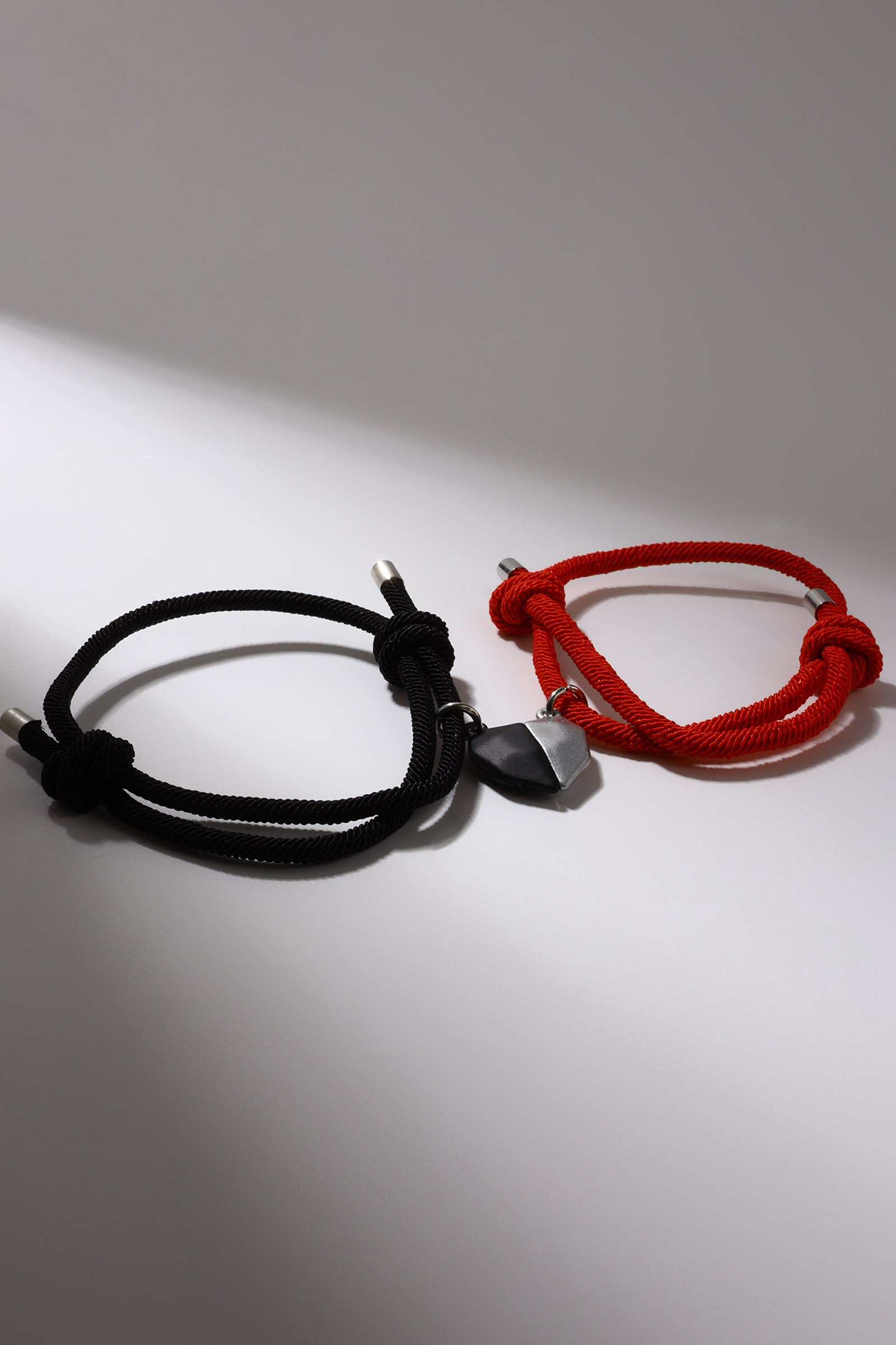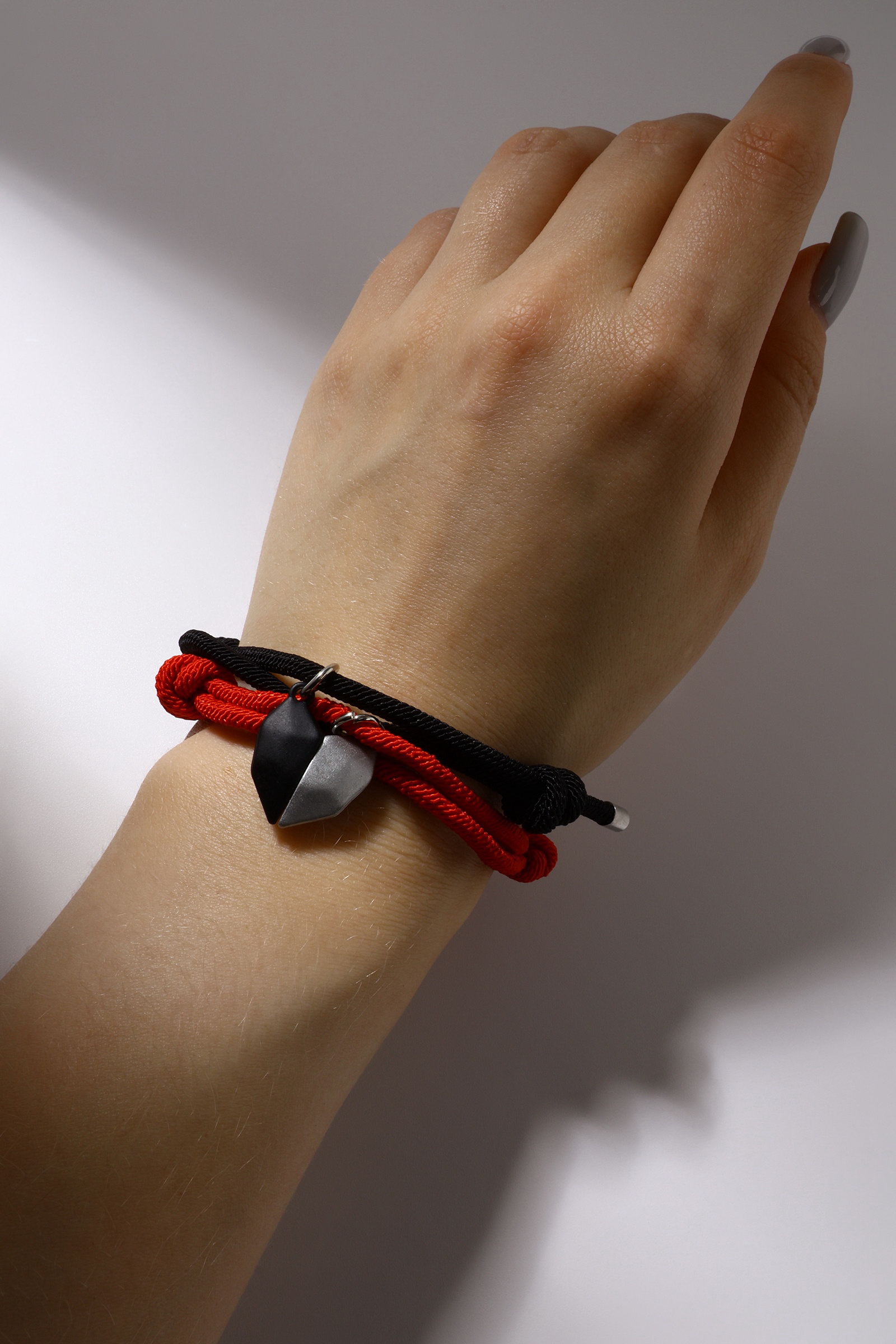 Браслеты парные "Неразлучники" на магните, половинки сердца, чёрно-красные, d=7 см, 2.5x7x0.3 см., Tell your story, Китай