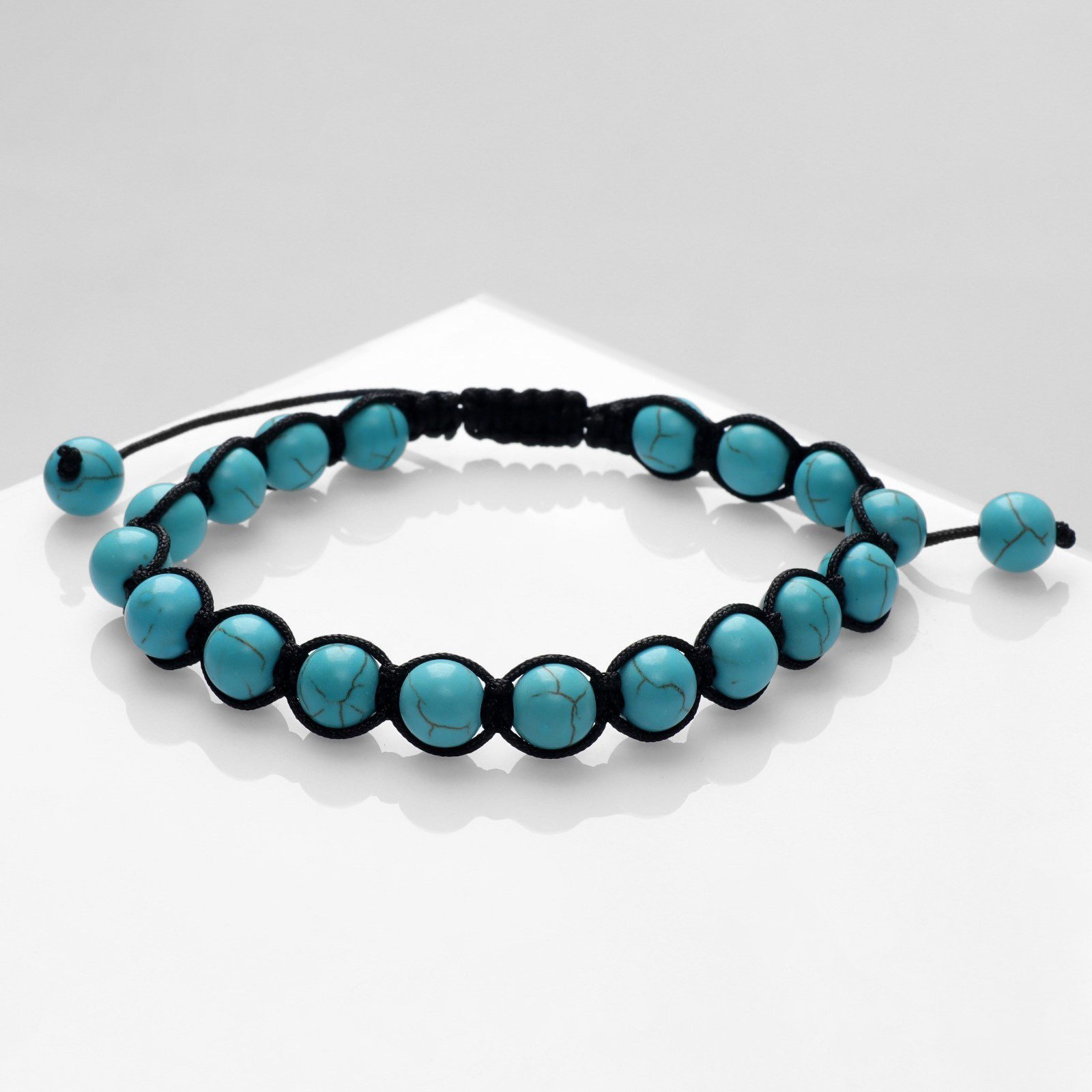 Браслет "Друиды" на нити, бирюза, голубой, d=7, 0.8x7x0.8 см., QF, Китай