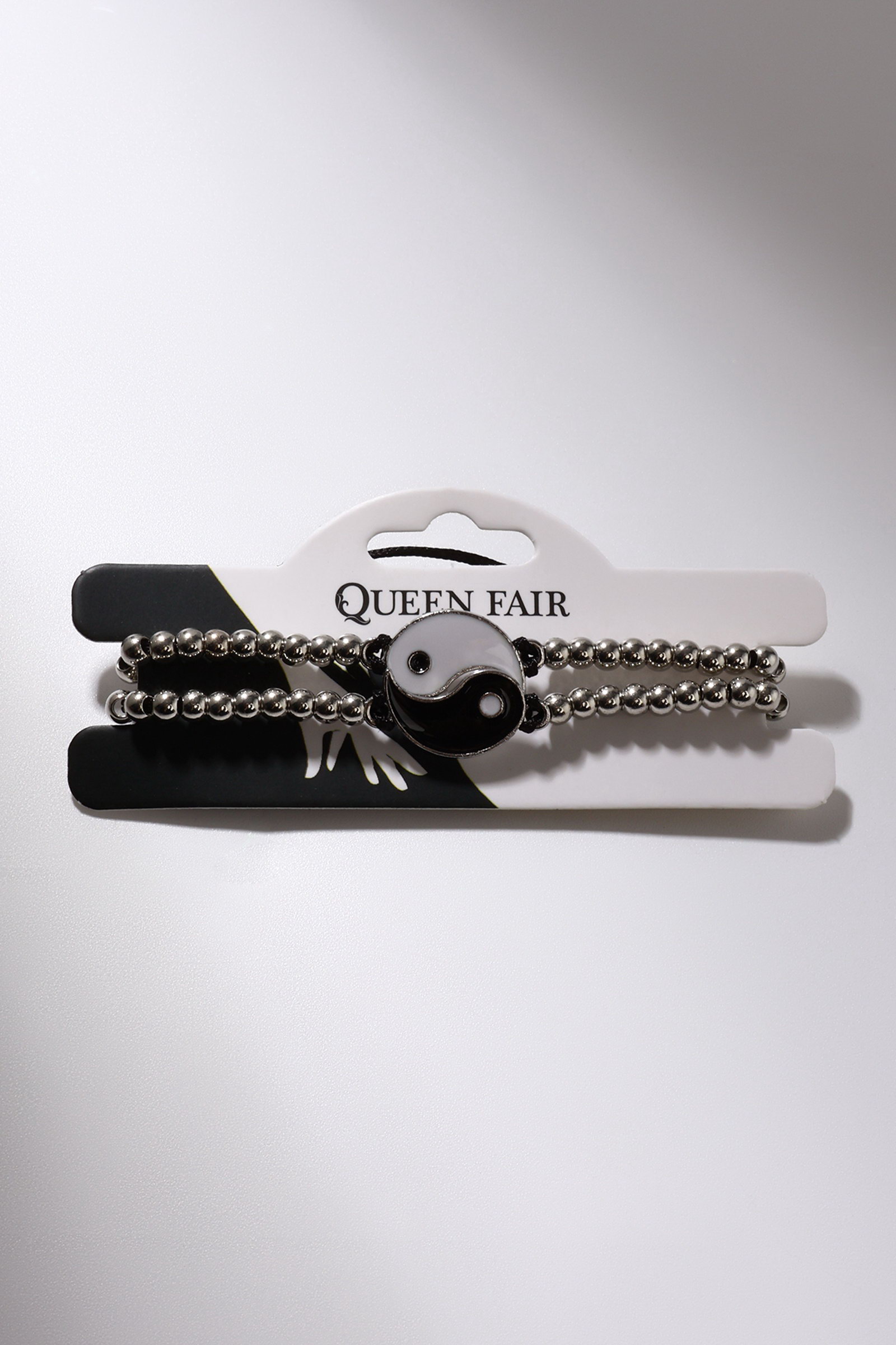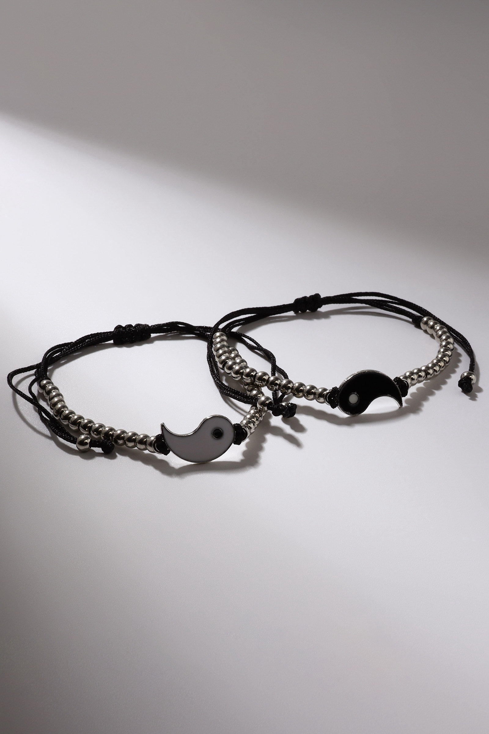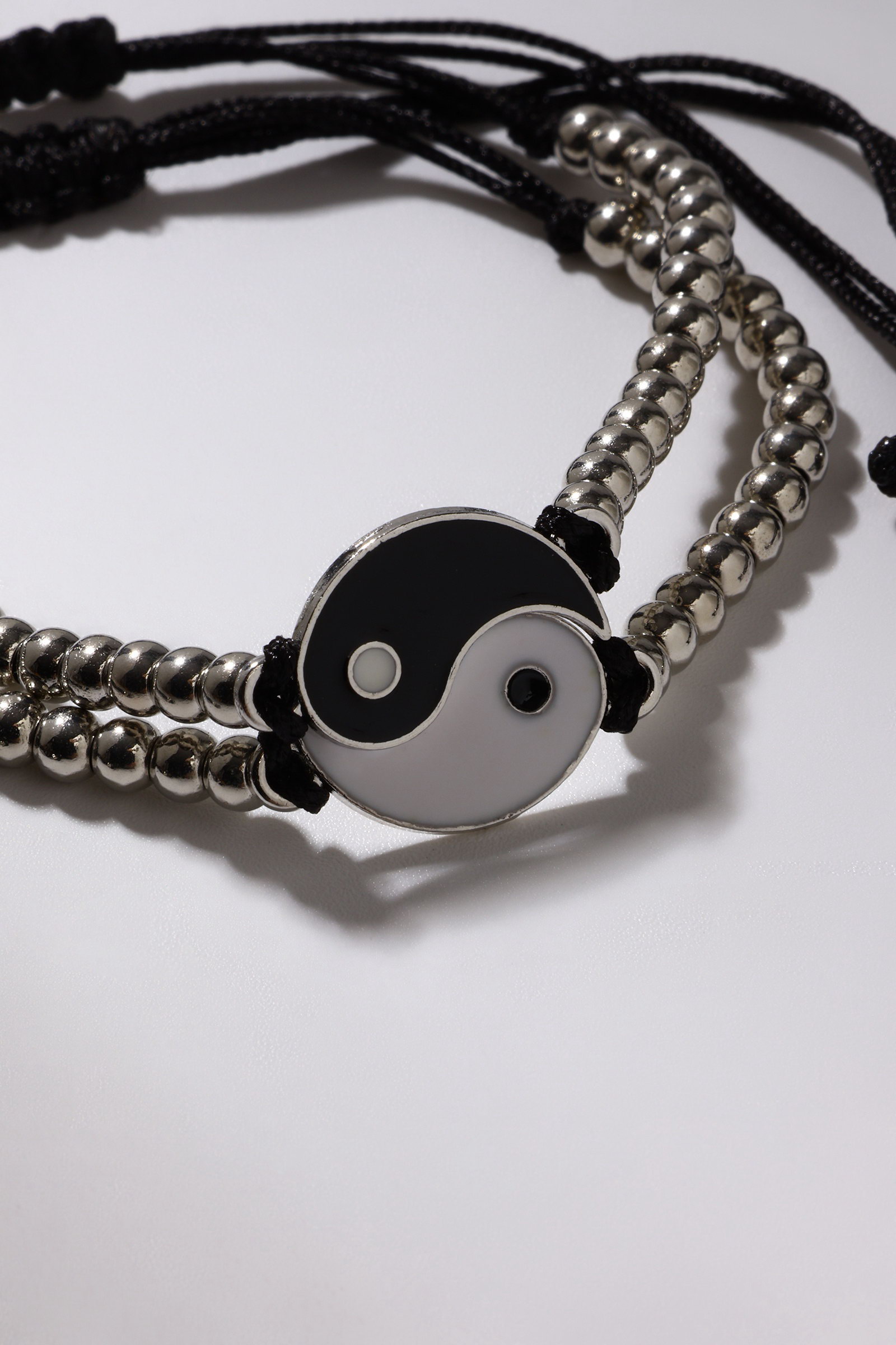 Браслеты парные "Неразлучники" инь-ян, на бусинах, чёрно-белые в серебре, d=7 см, 1x7x0.4 см., QF, Китай