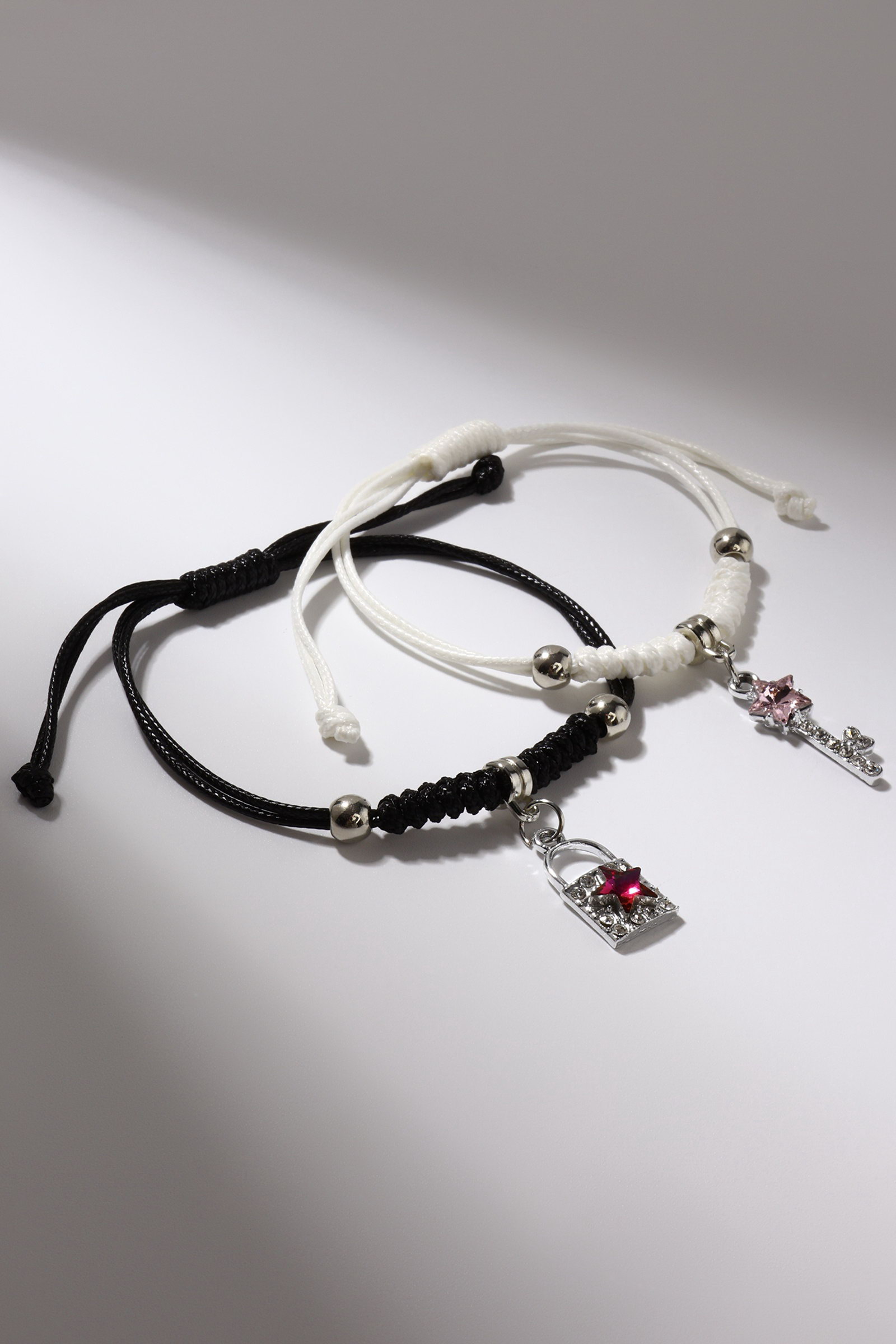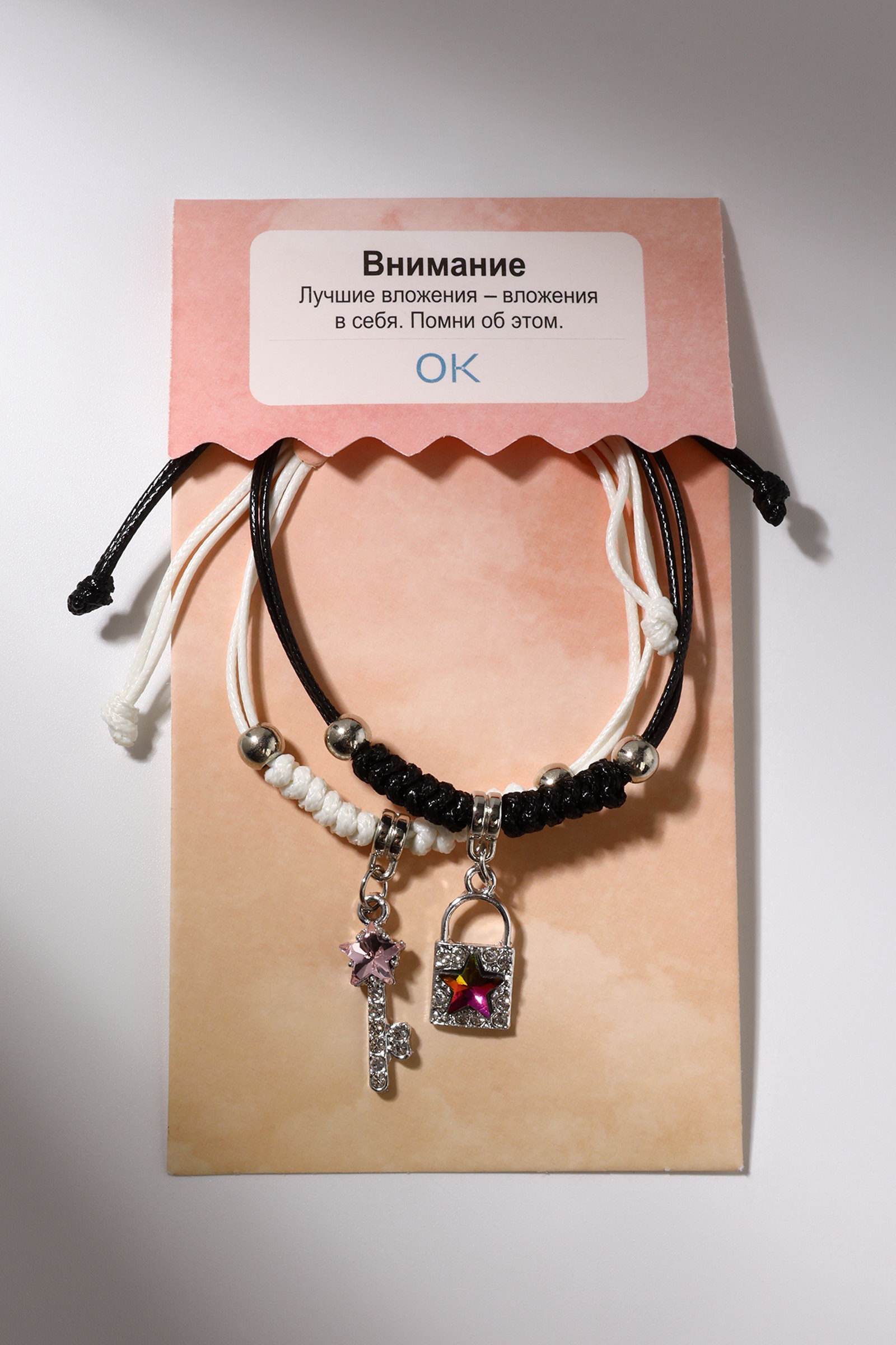 Браслеты парные "Неразлучники" ключик с замком, чёрно-белые, d=7 см, 3.5x7x0.5 см., Tell your story, Китай