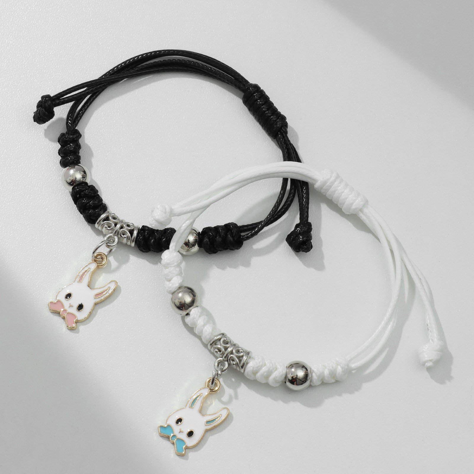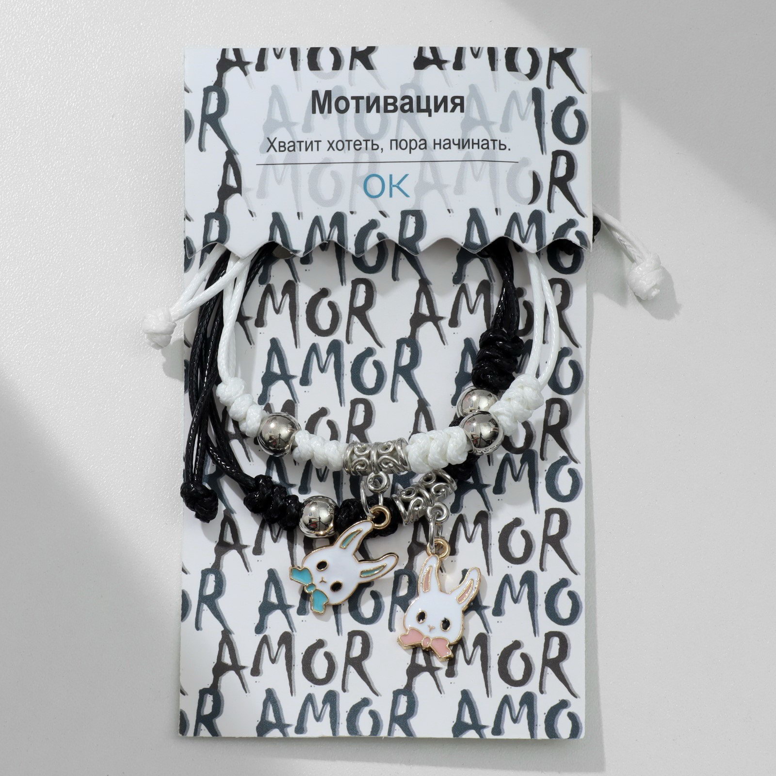 Браслеты парные "Неразлучники" зайчата с бантиками, цвет чёрно-белый, 7 см, 3x7x0.4 см., Tell your story, Китай