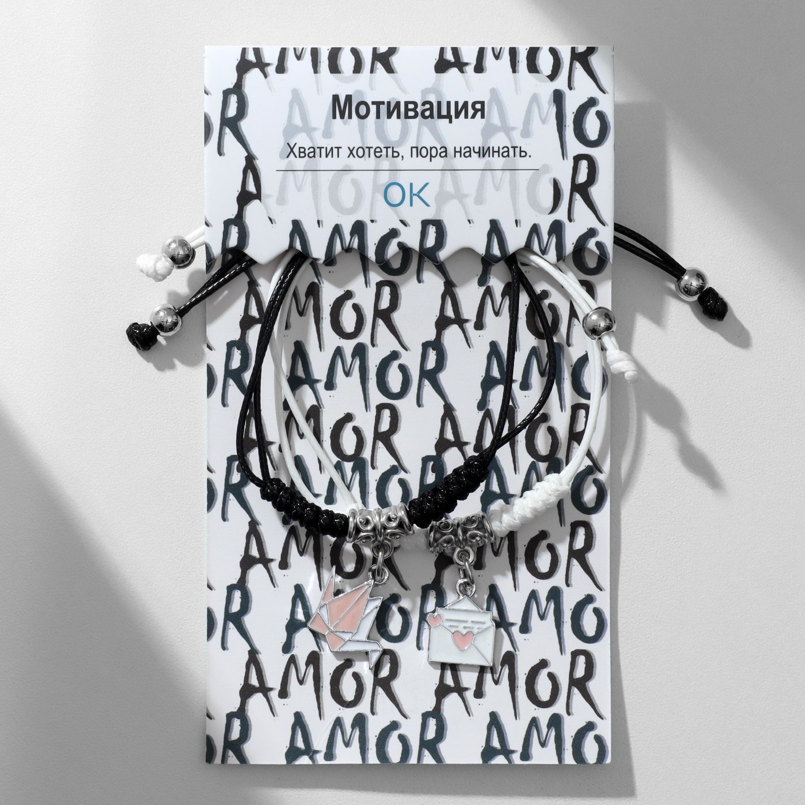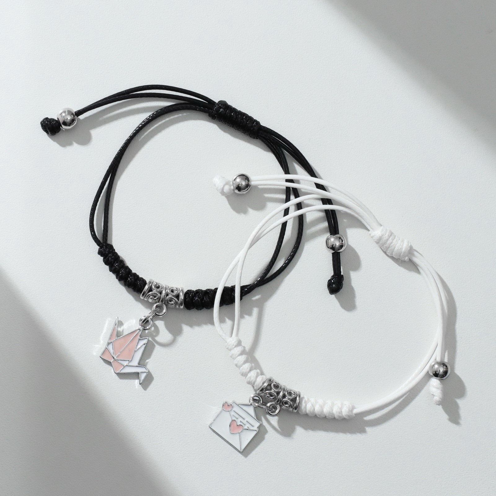 Браслеты парные "Неразлучники" оригами и письмо, чёрно-белые, d=7 см, 2.5x7x0.4 см., Tell your story, Китай