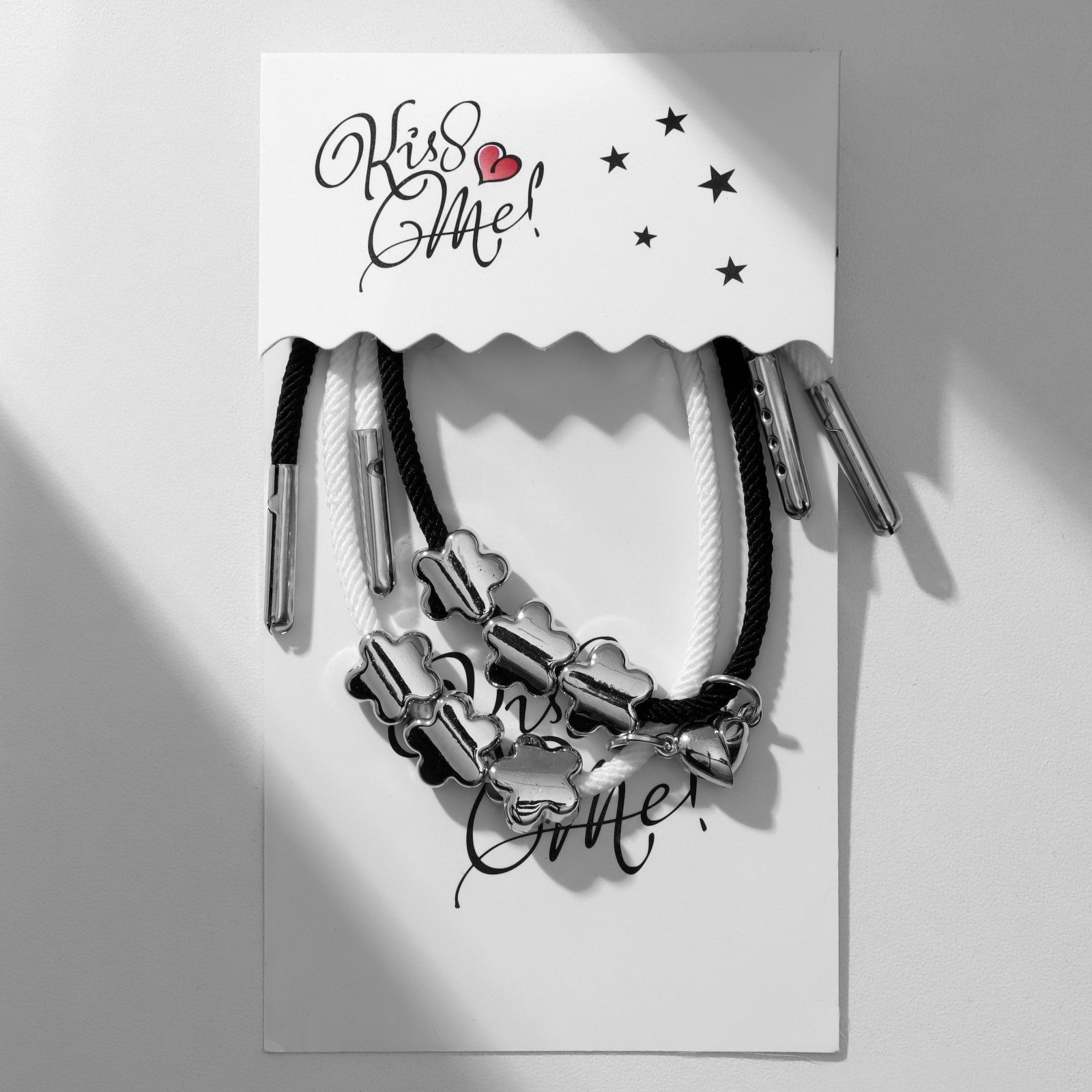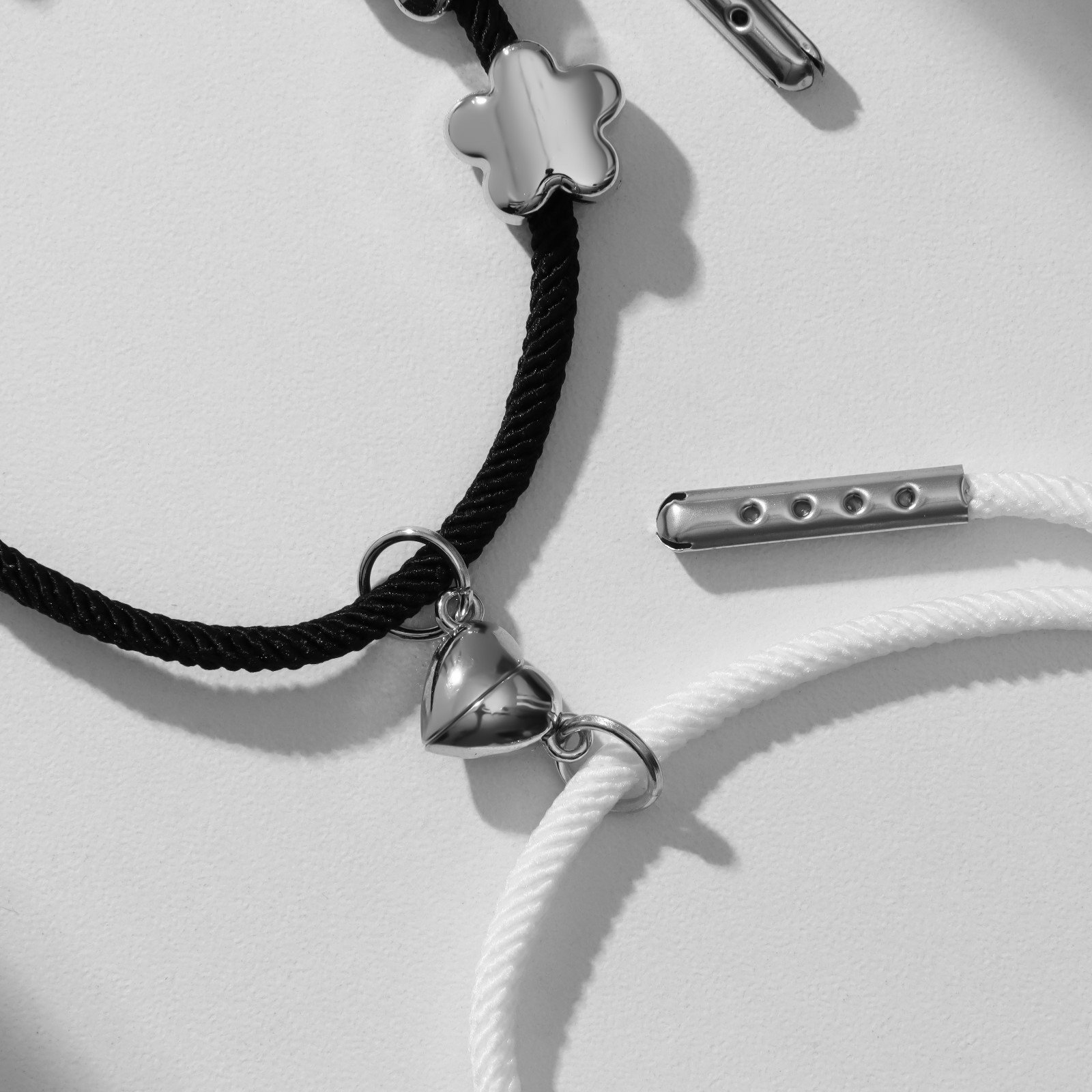 Браслеты парные "Неразлучники" на магните, цветочки с сердцем, цвет чёрно-белый, 8 см, 1.4x8x0.8 см., QF, Китай