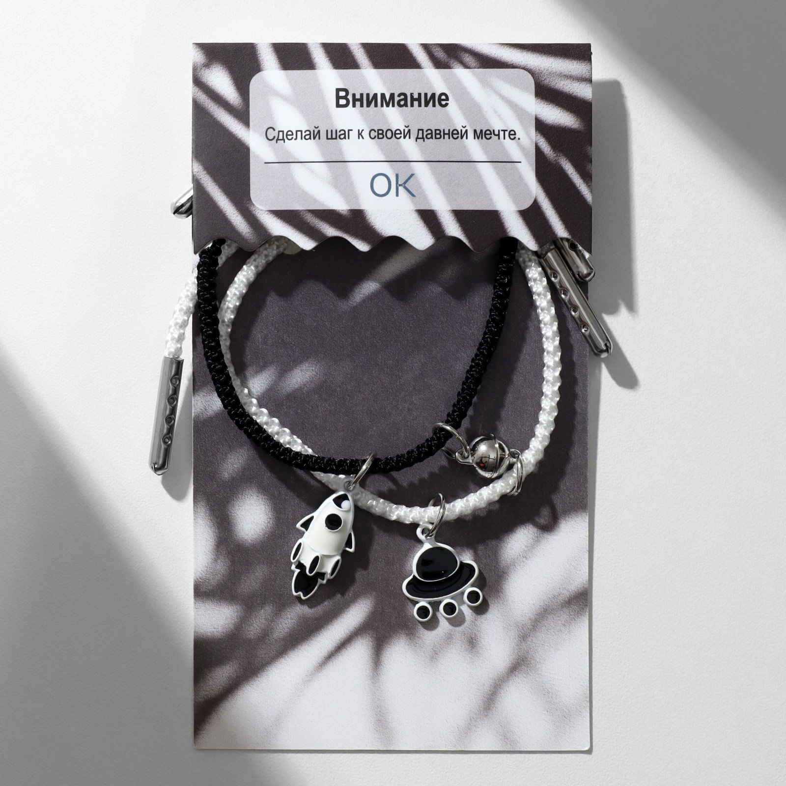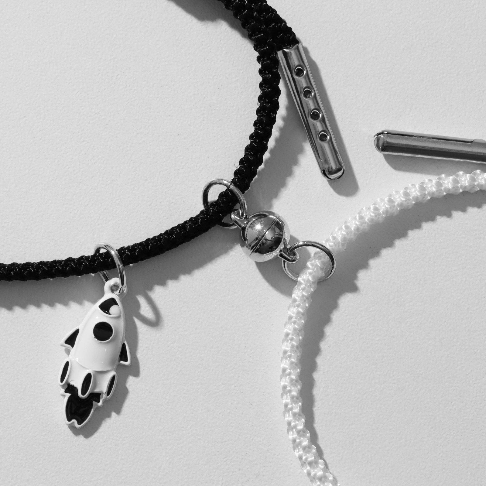 Браслеты парные "Неразлучники" на магните, ракета и летающая тарелка, чёрно-белые, d=8 см, 2.5x8x0.6 см., Tell your story, Китай