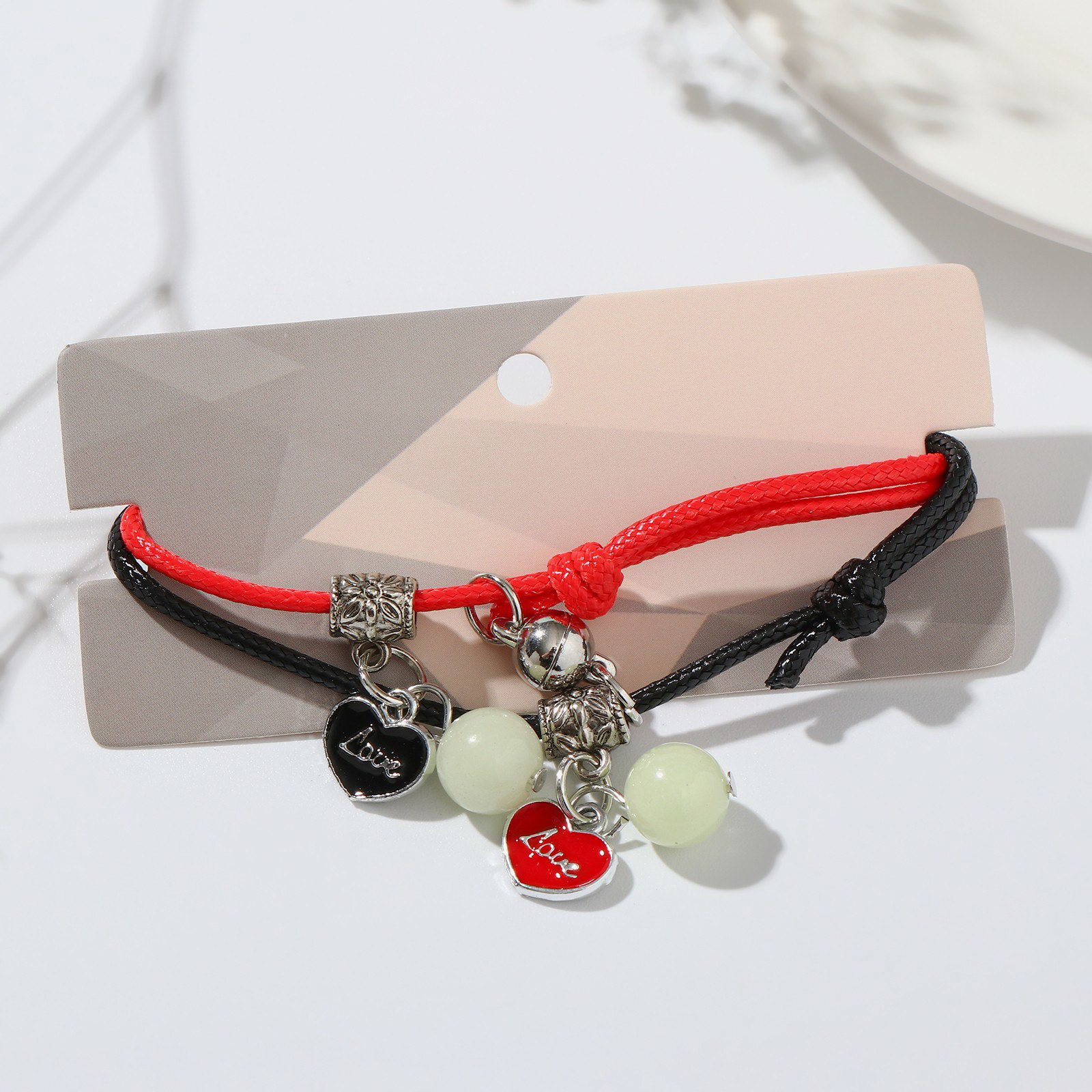 Браслеты "Неразлучники" на магните, шары с сердцами, цвет чёрно-красный, 6см, 2.5x6x1 см., Queen fair, Китай
