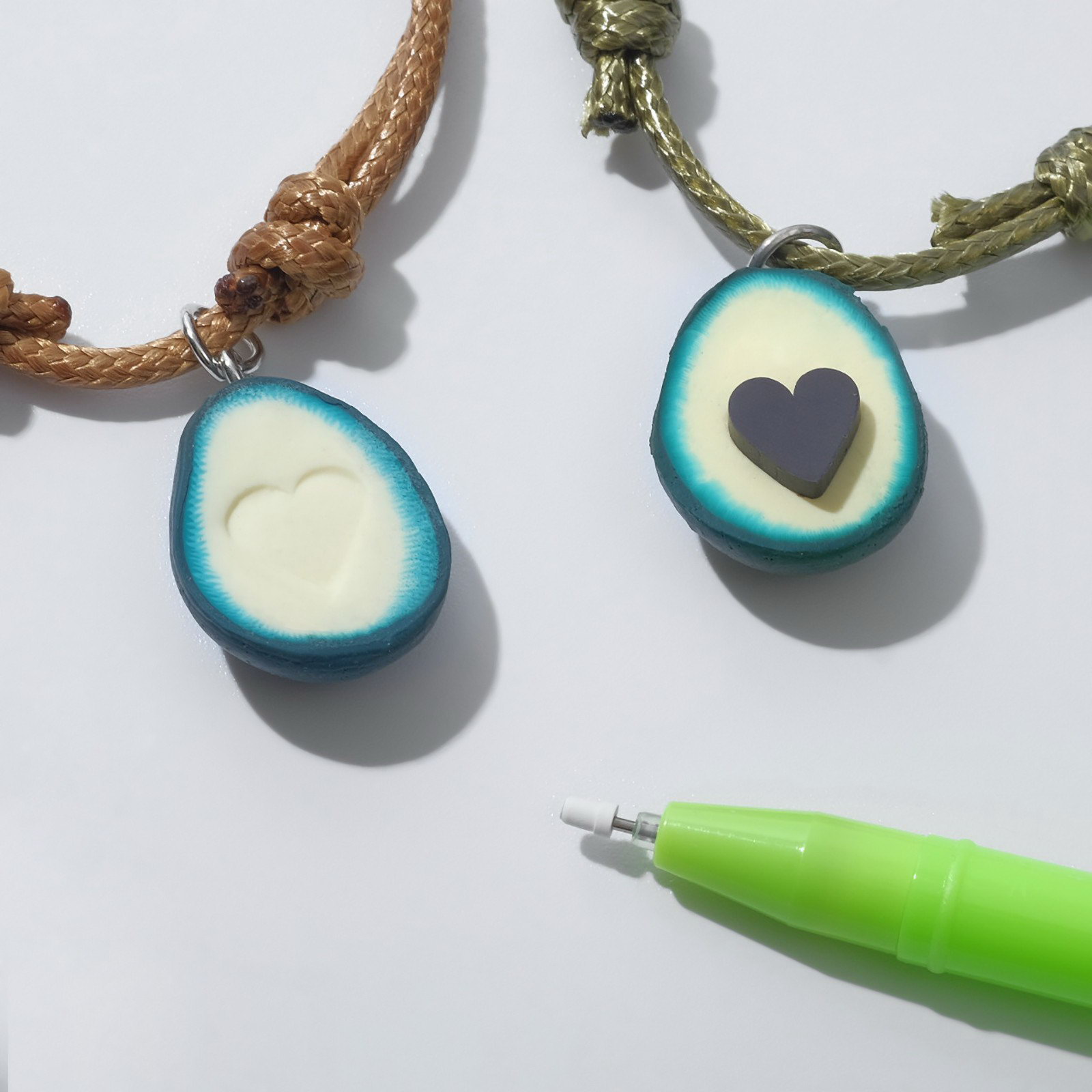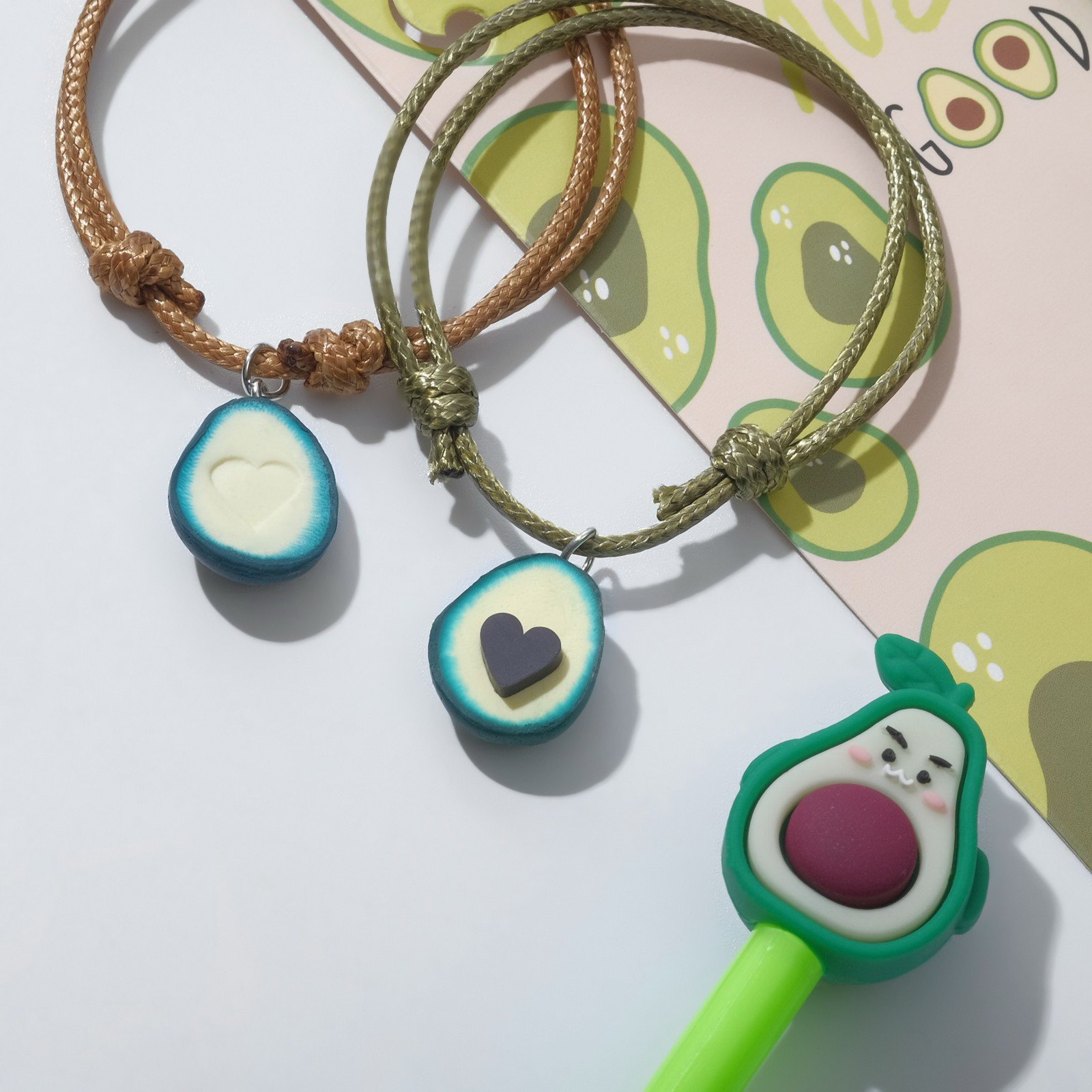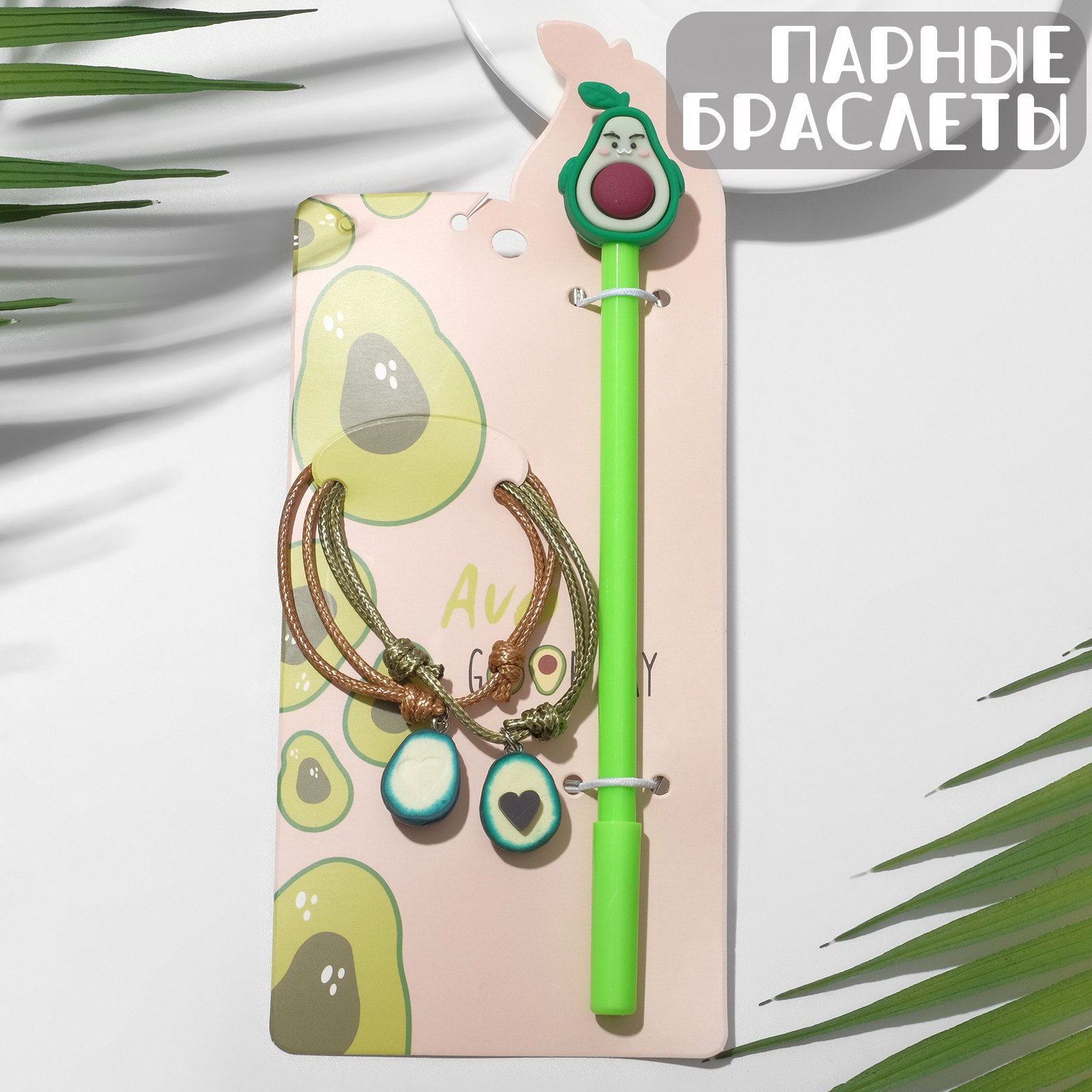 Набор 3 предмета: 2 браслета, ручка "Неразлучники" авокадо, цвет зелёно-оранжевый, 5 см, 2x5x1.5 см., QF, Китай