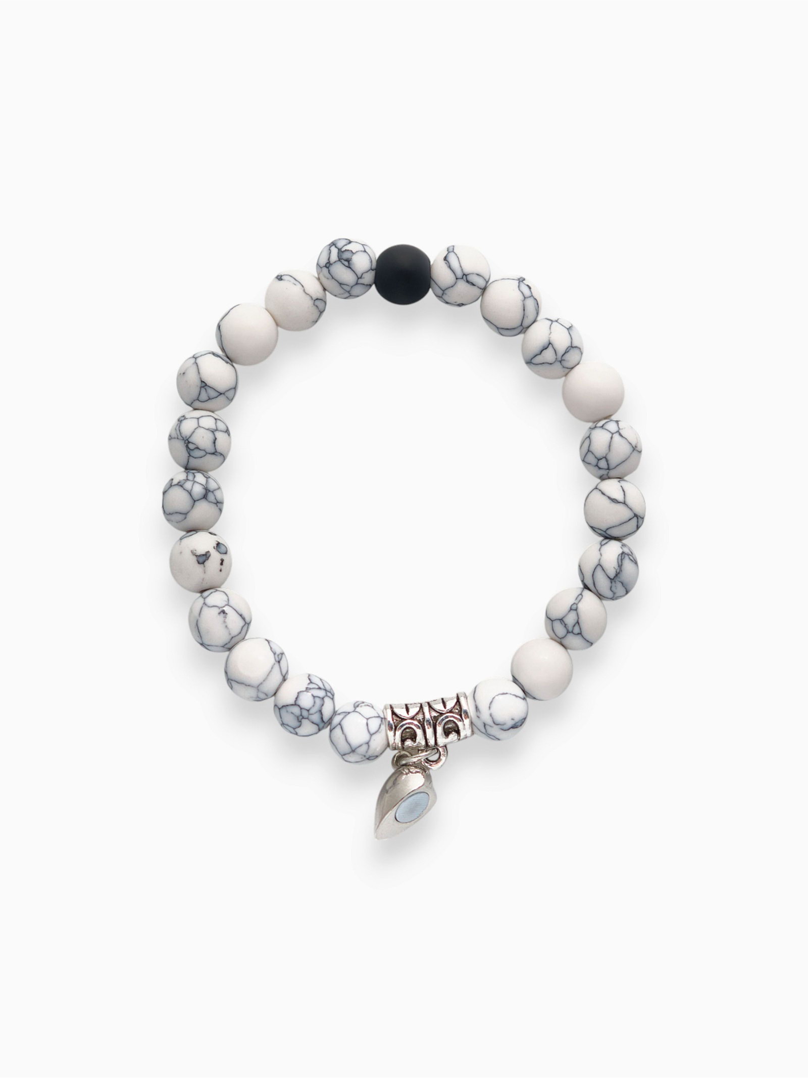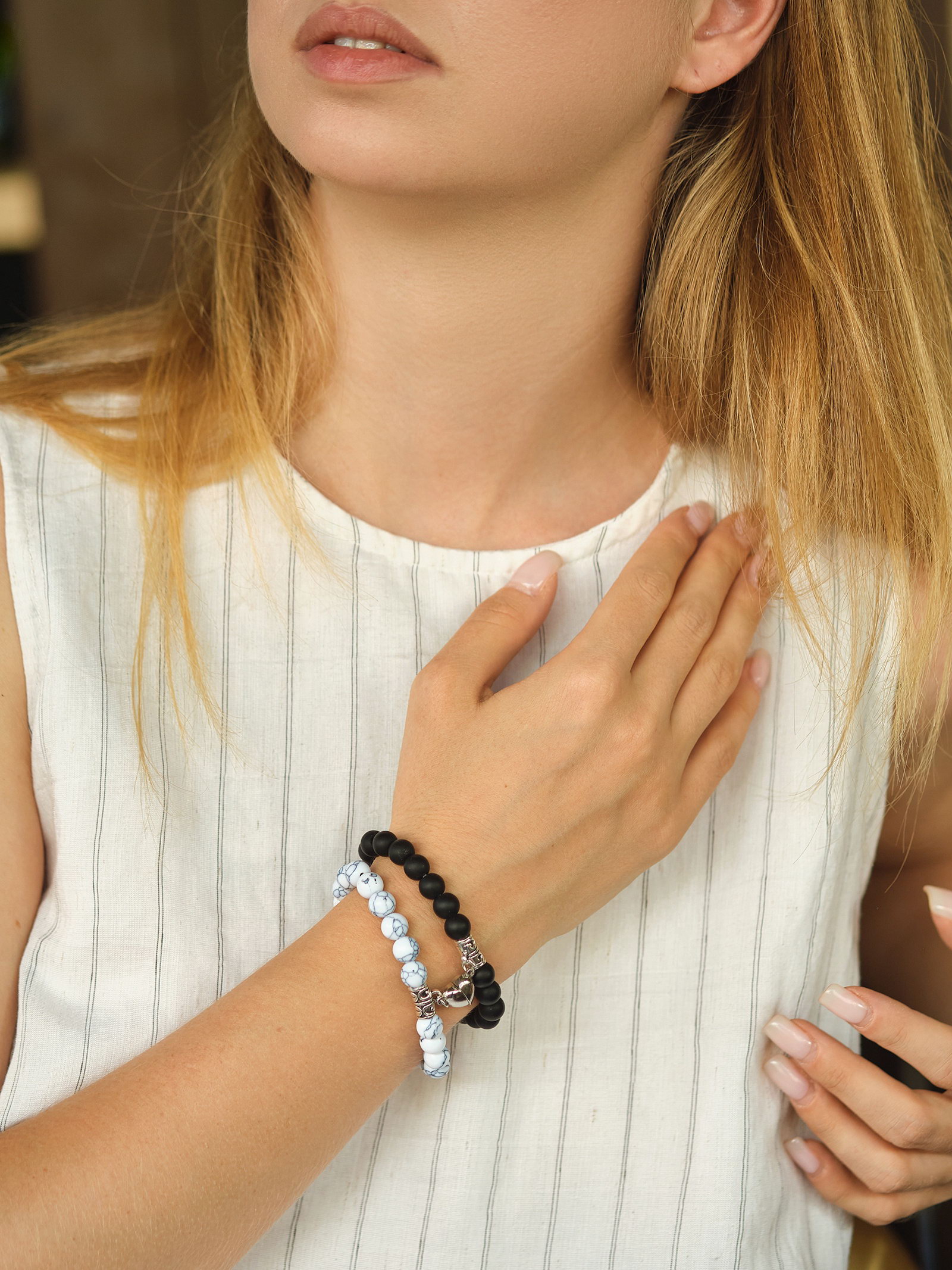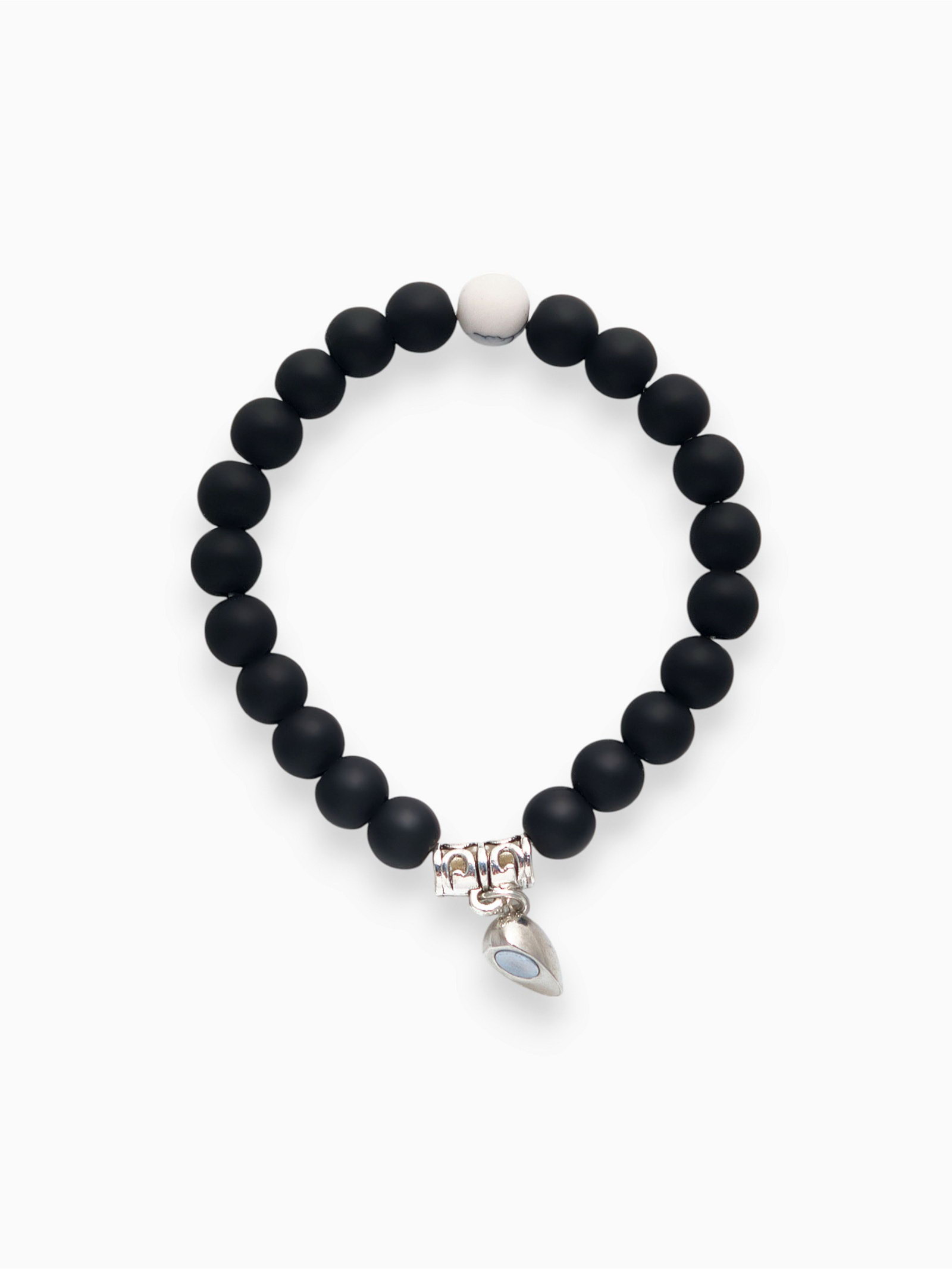 Браслеты парные "Неразлучники" на магните, сердце, чёрно-белые в серебре, d=6 см, 0.8x6x1 см., QF, Китай